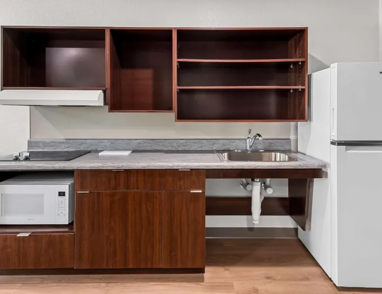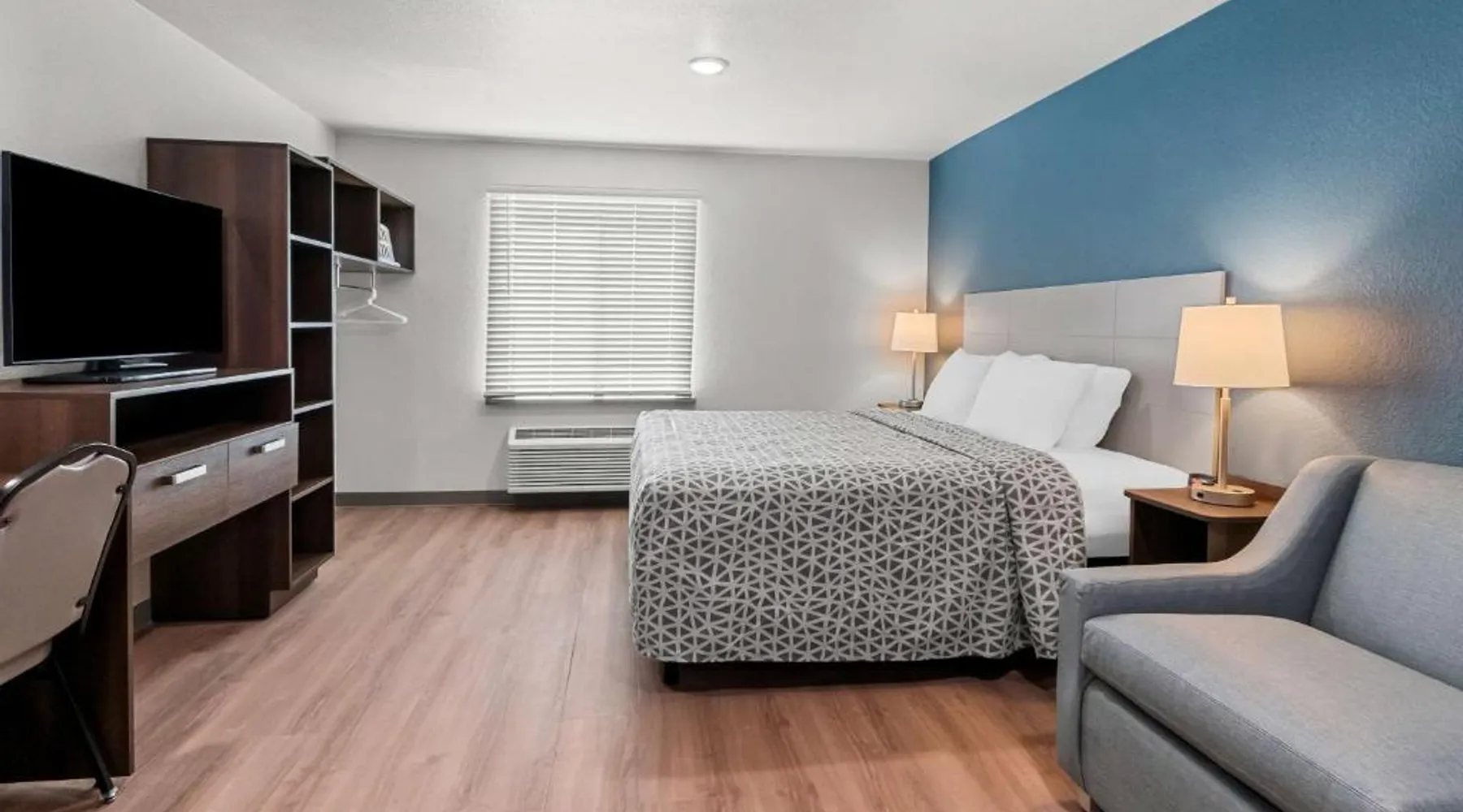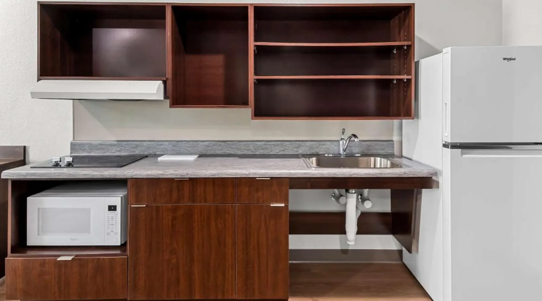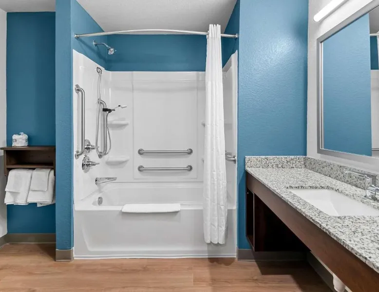 Comfortable Accommodations: WoodSpring Suites Waco South in Waco offers well-appointed rooms with air-conditioning, kitchen facilities, and modern bathrooms. Each room includes a walk-in shower, refrigerator, microwave, stovetop, and TV. Convenient Amenities: Guests can enjoy amenities such as free WiFi, a seating area, and a workspace. The hotel provides a welcoming environment with friendly staff and excellent service support. Prime Location: Located 9.3 mi from Waco Regional Airport, the hotel is 5 mi from the Waco Convention Center and 5.6 mi from McLane Stadium. Nearby attractions offer diverse activities for all visitors. Rooms on the upper floors are reachable by elevator.