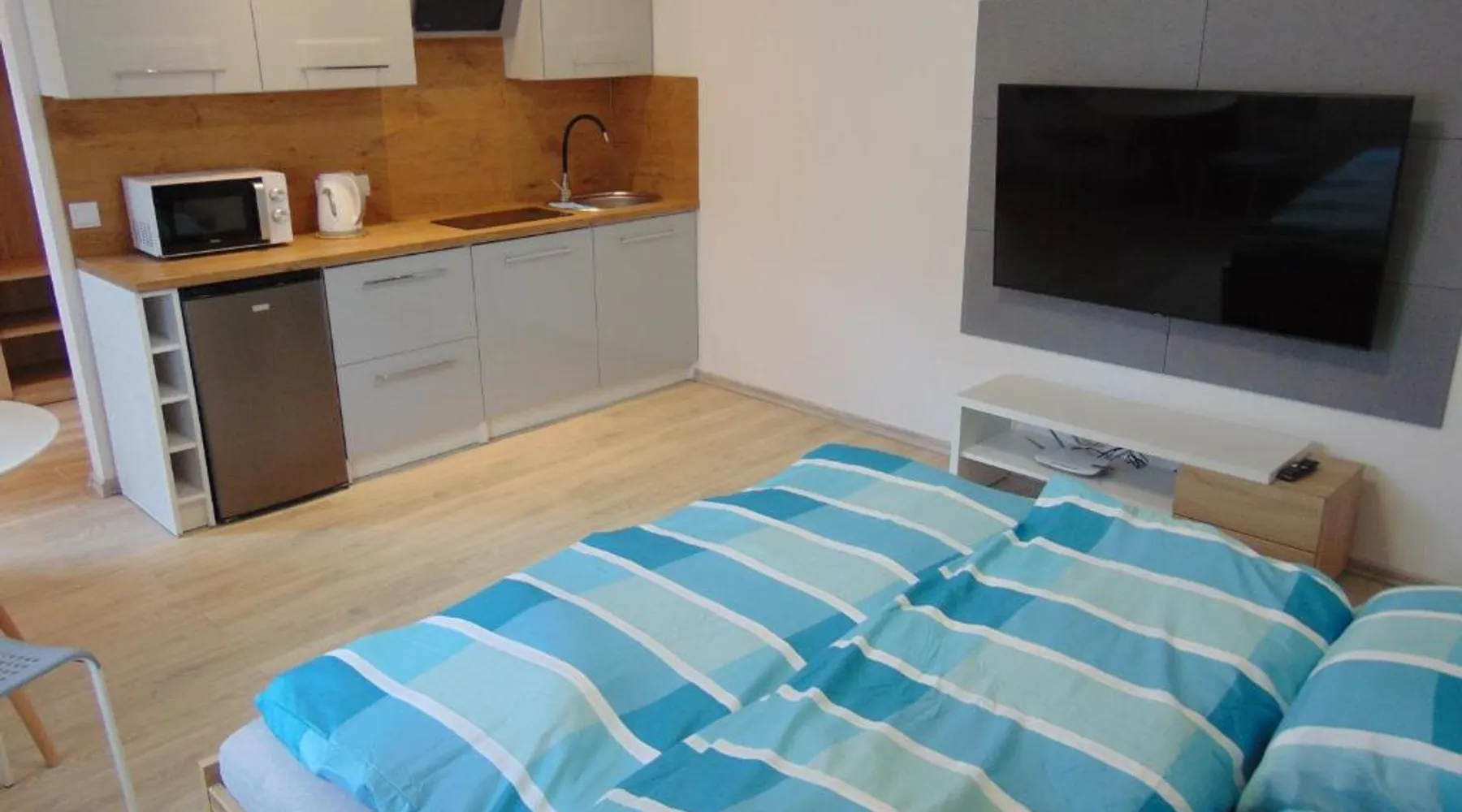 Comfortable Accommodations: Apartamenty Monik Świętochłowice in Świętochłowice offers recently renovated aparthotel rooms with air-conditioning, kitchenettes, private bathrooms, and balconies. Each room includes a dining table, refrigerator, free toiletries, microwave, shower, TV, electric kettle, kitchenware, and wardrobe. Exceptional Facilities: Guests enjoy a garden, terrace, and free WiFi. The aparthotel features a private check-in and check-out service, a 24-hour front desk, outdoor seating area, family rooms, and barbecue facilities. Free on-site private parking is available. Convenient Location: Located 21 mi from Katowice Airport, the aparthotel is near Ruch Chorzów Stadium (3.1 mi), Stadion Śląski (4.3 mi), Silesia City Center Shopping Mall (6.2 mi), and other attractions. Guests appreciate the room cleanliness, quietness of the area, and quietness of the room. This apartment comes with 1 living room, 1 separate bedroom and 1 bathroom with a shower and free toiletries. The well-fitted kitchenette has a refrigerator, kitchenware and a microwave. The air-conditioned apartment features a flat-screen TV, a wardrobe, an electric kettle and heating. The unit has 4 beds.