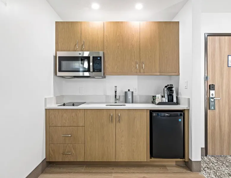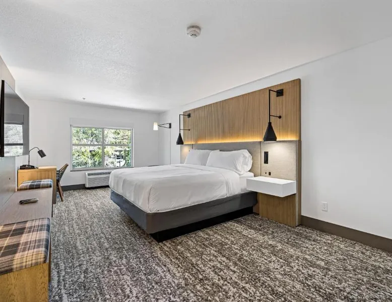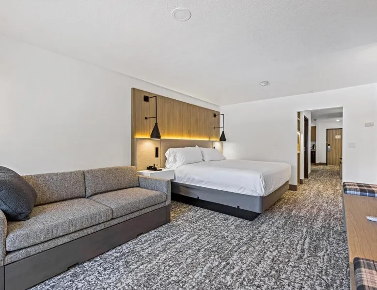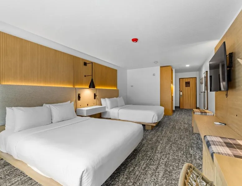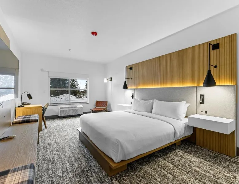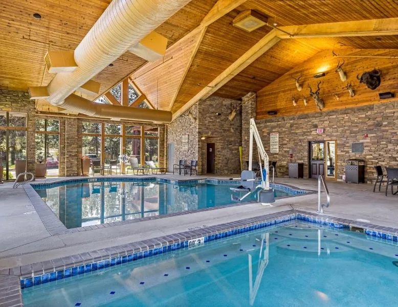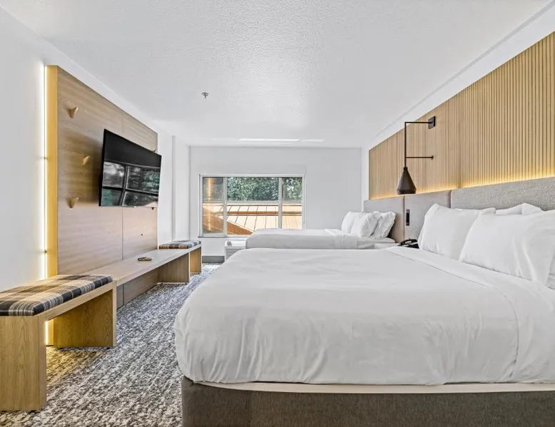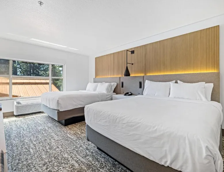 Comfortable Accommodations: The Evergreen Hotel in McCall offers family rooms with air-conditioning, private bathrooms, and mountain views. Each room includes a tea and coffee maker, refrigerator, free toiletries, and a TV. Exceptional Facilities: Guests enjoy a fitness center, indoor swimming pool, and free WiFi. Additional amenities include a hot tub, lounge, fitness room, and 24-hour front desk. Free on-site private parking is available. Activities and Surroundings: The hotel is highly rated for its attentive staff, room cleanliness, and comfortable beds. Activities include skiing, hiking, and cycling. An ice-skating rink is located nearby. This double room features a tea/coffee maker and microwave with flat screen tv.