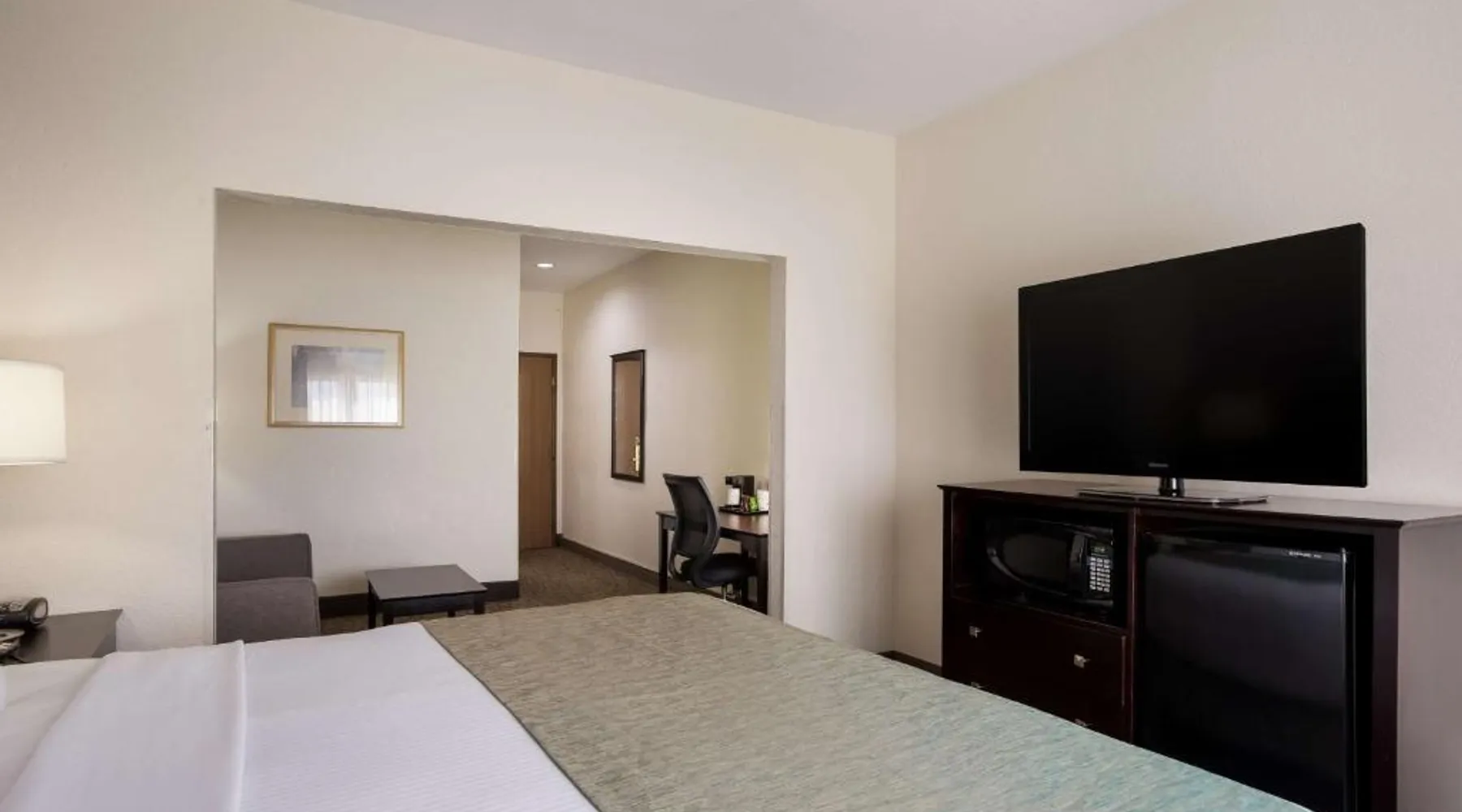 Comfortable Accommodations: Best Western Kendallville Inn in Kendallville offers family rooms with air-conditioning, private bathrooms, and free WiFi. Each room includes a work desk, TV, and soundproofing for a pleasant stay. Exceptional Facilities: Guests can enjoy a fitness center, seasonal outdoor swimming pool, and a lounge. Additional amenities include a coffee shop, outdoor seating area, and picnic spots. Free on-site private parking is available. Delicious Breakfast: A variety of breakfast options are served, including continental, American, full English/Irish, vegetarian, and gluten-free. Fresh pastries, fruits, warm dishes, and juice enhance the morning experience. Prime Location: Located 39 mi from Fort Wayne Airport, the hotel is near attractions such as Fort Wayne Children's Zoo (26 mi) and Allen County War Memorial Coliseum (27 mi). Guests appreciate the friendly staff and excellent service support. The quadruple room features a tea and coffee maker. The unit has 2 beds.