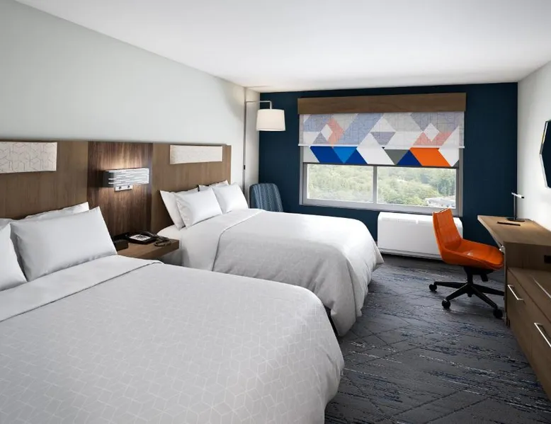 Comfortable Accommodations: Holiday Inn Express & Suites Columbus - New Albany by IHG in New Albany offers air-conditioned rooms with free WiFi, work desks, and flat-screen TVs. Each room includes a refrigerator, microwave, and wardrobe. Facilities and Services: Guests can enjoy a fitness center, indoor swimming pool, and a 24-hour front desk. Additional amenities include a business area, minimarket, and express check-in and check-out services. Dining Options: A continental, American, and buffet breakfast is served daily, featuring warm dishes, fresh pastries, pancakes, fruits, and juice. Location and Attractions: Located 12 mi from John Glenn Columbus International Airport, the hotel is near attractions such as the Motorcycle Hall of Fame Museum (15 mi) and Columbus Museum of Art (19 mi). The spacious double room features air conditioning, a wardrobe, a carpeted floor, heating, as well as a flat-screen TV with cable channels. The unit has 1 bed.