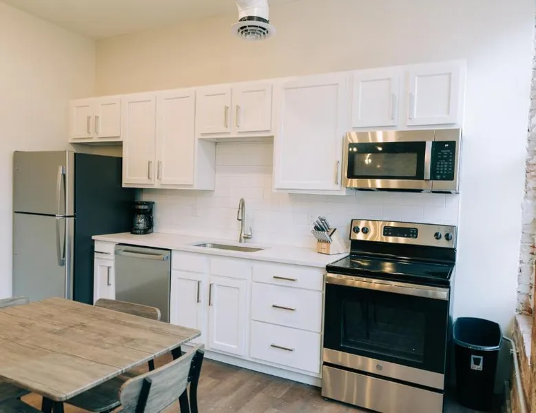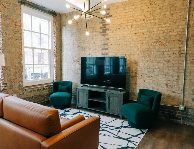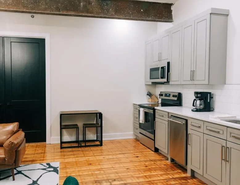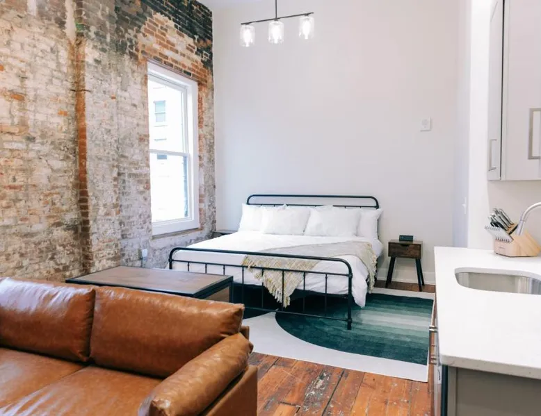 Comfortable Accommodations: The St. Clair in Frankfort offers a spacious apartment with a private entrance. Guests enjoy free WiFi, air-conditioning, and a fully equipped kitchen. Exceptional Facilities: The property features a bar and elevator, ensuring a pleasant stay. Private and express check-in and check-out services enhance convenience. Convenient Location: Located 21 mi from Blue Grass Airport, The St. Clair is near attractions such as Keeneland Race Course (22 mi) and Kentucky State University (6.8 mi). Free parking is available. Guest Satisfaction: Highly rated for its convenient location, room cleanliness, and bed comfort. This spacious apartment comes with 1 living room, 2 separate bedrooms and 1 bathroom with a shower and free toiletries. Meals can be prepared in the kitchen, which features a stovetop, a refrigerator, a dishwasher and kitchenware. The air-conditioned apartment features a flat-screen TV with streaming services, a private entrance, a tea and coffee maker, a seating area as well as city views. The unit has 2 beds.