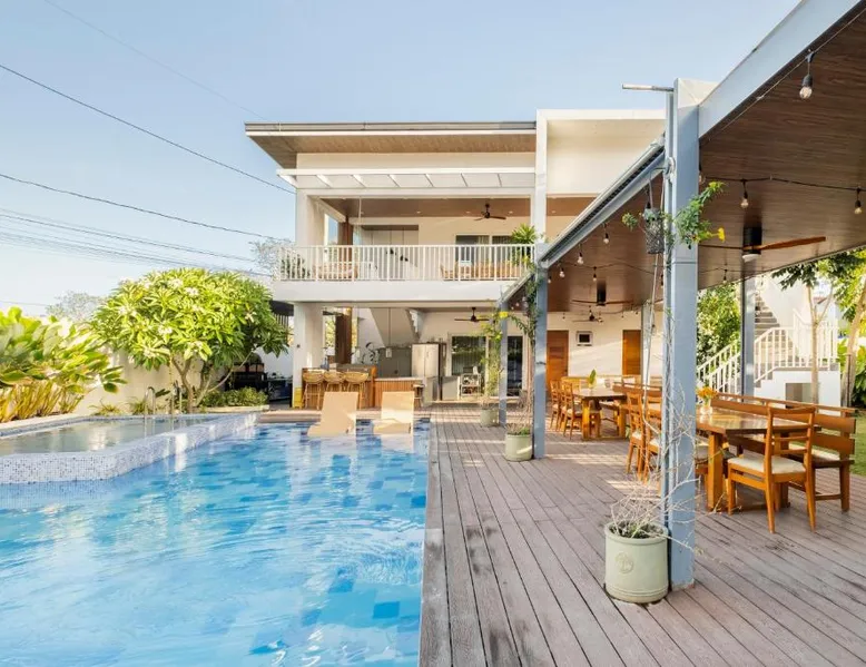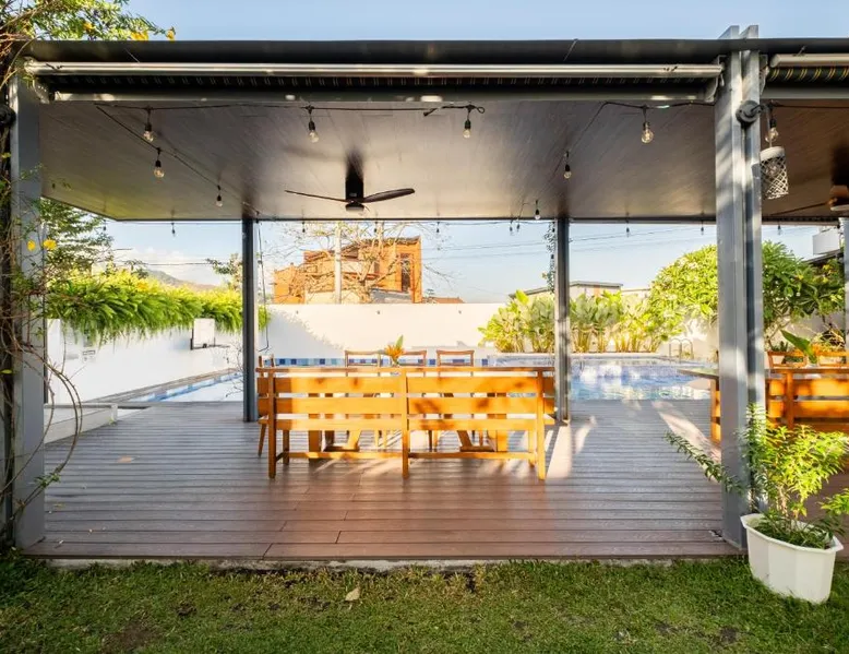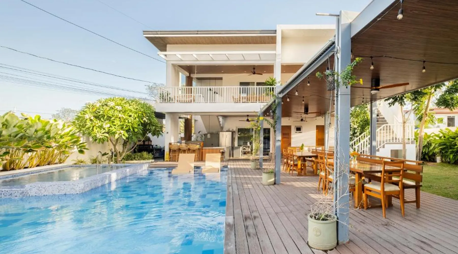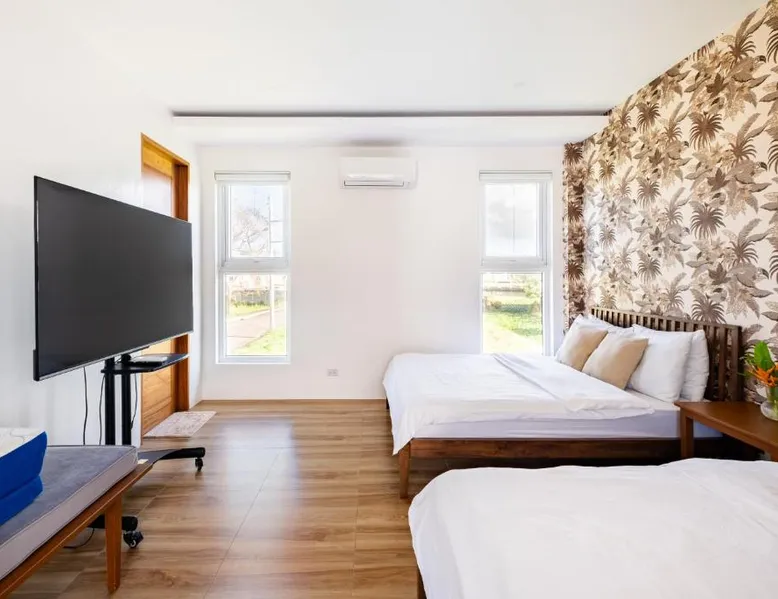 Spacious Accommodations: Tirta Spring Villa with Hotspring Pool in Los Banos offers a spacious, recently renovated villa with five bedrooms and five bathrooms. The property is pet-friendly and includes a private entrance. Exceptional Facilities: Guests enjoy an infinity swimming pool, lush garden, and terrace. Free WiFi is available throughout the villa. Additional amenities include a hot tub, family rooms, and free on-site private parking. Comfortable Living: The villa features air-conditioning, a fully equipped kitchen, and a dining area. Outdoor spaces include a balcony, patio, and barbecue. Mountain views enhance the relaxing atmosphere. Convenient Location: modern amenities, and excellent service. Highly rated by guests. This villa's special feature is the pool with a view. Featuring a private entrance, this spacious villa also consists of 5 bedrooms, a seating area and 5 bathrooms with a bath and a shower. Guests will find a stovetop, a refrigerator, kitchenware and an oven in the well-fitted kitchen. The villa also offers a barbecue. Boasting a terrace with garden views, this villa also provides air conditioning and a flat-screen TV. The unit offers 12 beds and 1 futon.