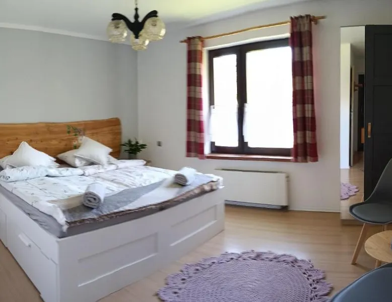 Elegant Accommodations: Smrek Sokolec Agroturystyka in Ludwikowice Kłodzkie offers a recently renovated country house with a beautiful garden and free WiFi. Guests can relax in the lounge, outdoor fireplace, and outdoor seating area. Comfortable Amenities: The property features family rooms, a picnic area, barbecue facilities, and ski storage. Additional amenities include a private bathroom, tea and coffee maker, garden views, outdoor furniture, and an outdoor dining area. Delicious Breakfast: A hearty breakfast is served daily, including local specialties, fresh pastries, pancakes, cheese, fruits, and juice. Activities and Attractions: Guests can enjoy skiing and cycling nearby. The Copernicus Wrocław Airport is 55 mi away, and attractions such as Świdnica Cathedral (19 mi) and Kudowa Zdrój Train Station (30 mi) are easily accessible. The family room provides heating, as well as a private bathroom featuring a shower. Among the room amenities are a tea and coffee maker, a dining area, a wardrobe as well as an outdoor dining area and garden views. The unit offers 2 beds.