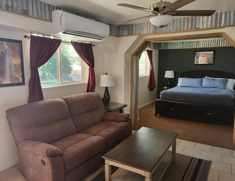 Comfortable Accommodations: Tail Wind Life LLC in Page offers a highly rated apartment with free WiFi and free on-site private parking. Guests enjoy air-conditioning, streaming services, and a private bathroom with free toiletries. Modern Amenities: The apartment features a fully equipped kitchen with a coffee machine, microwave, and kitchenware. Additional amenities include a washing machine, hairdryer, and a TV. Convenient Location: Located 1.2 mi from Page Municipal Airport and 9.3 mi from Antelope Canyon, the property provides easy access to boating in the surrounding area. In the kitchen, guests will find a refrigerator, kitchenware, a microwave and a tea and coffee maker. This air-conditioned studio is consisted of of a flat-screen TV with streaming services and a private bathroom. The unit has 1 bed.