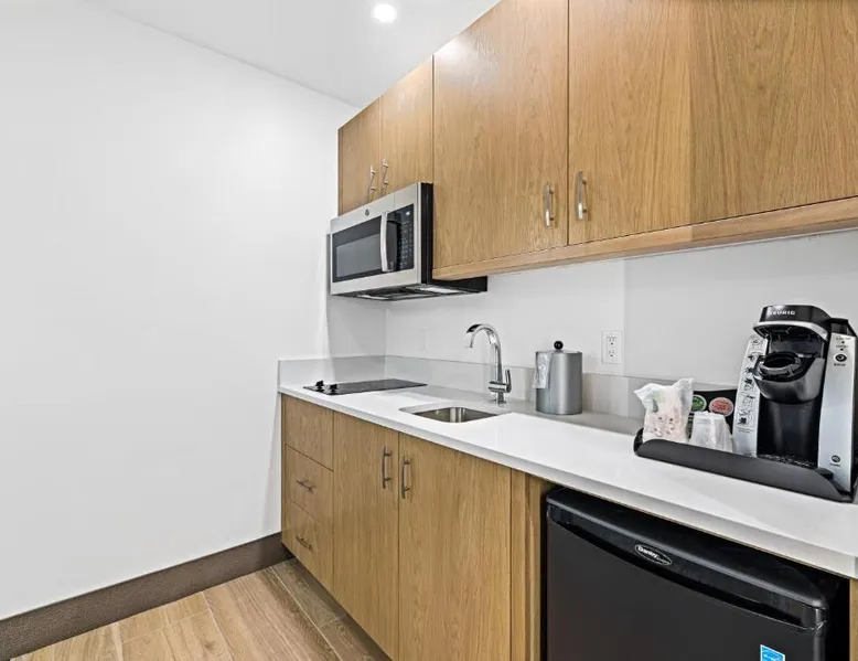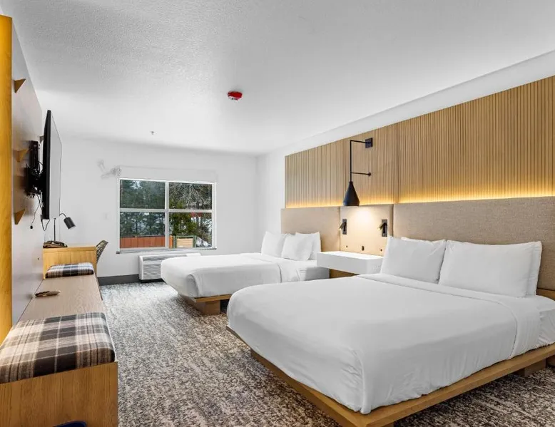 Comfortable Accommodations: The Evergreen Hotel in McCall offers family rooms with air-conditioning, private bathrooms, and mountain views. Each room includes a tea and coffee maker, refrigerator, free toiletries, and a TV. Exceptional Facilities: Guests enjoy a fitness center, indoor swimming pool, and free WiFi. Additional amenities include a hot tub, lounge, fitness room, and 24-hour front desk. Free on-site private parking is available. Activities and Surroundings: The hotel is highly rated for its attentive staff, room cleanliness, and comfortable beds. Activities include skiing, hiking, and cycling. An ice-skating rink is located nearby. This suite has a microwave, sofa and air conditioning, with flat screen tv and kitchenette.