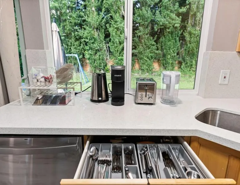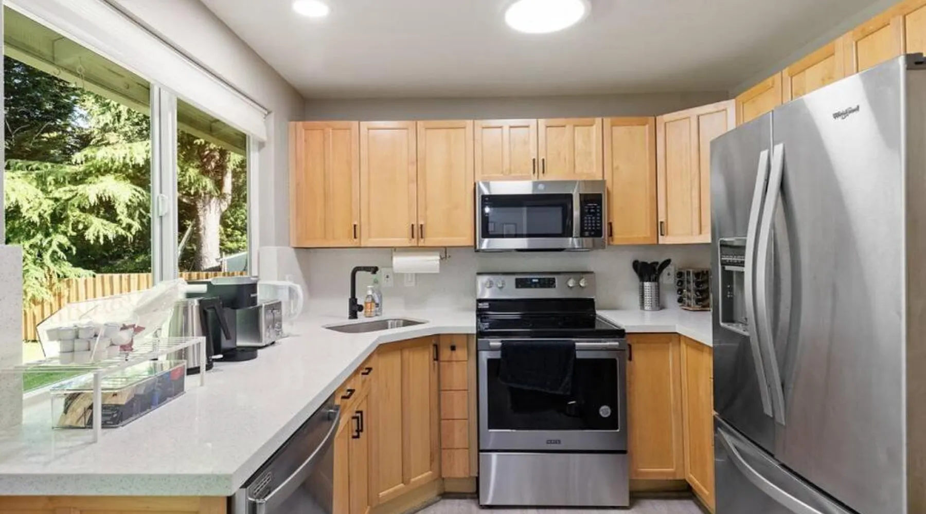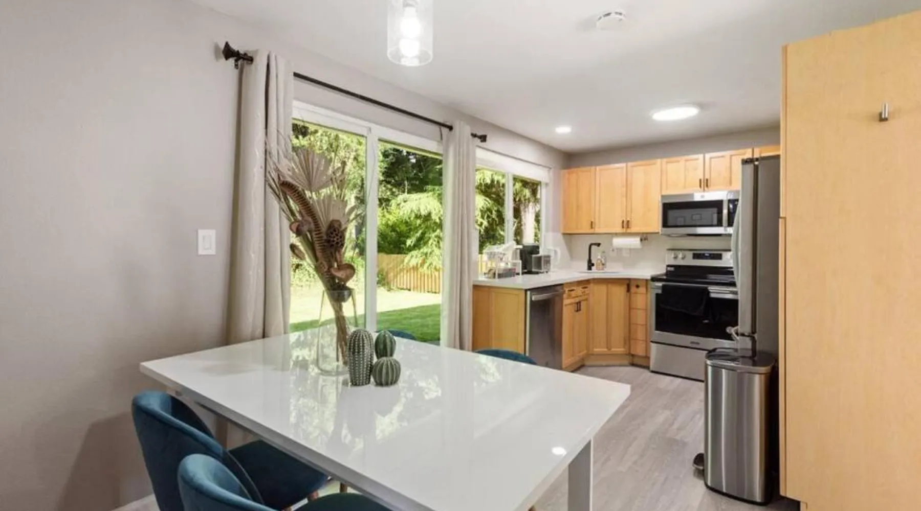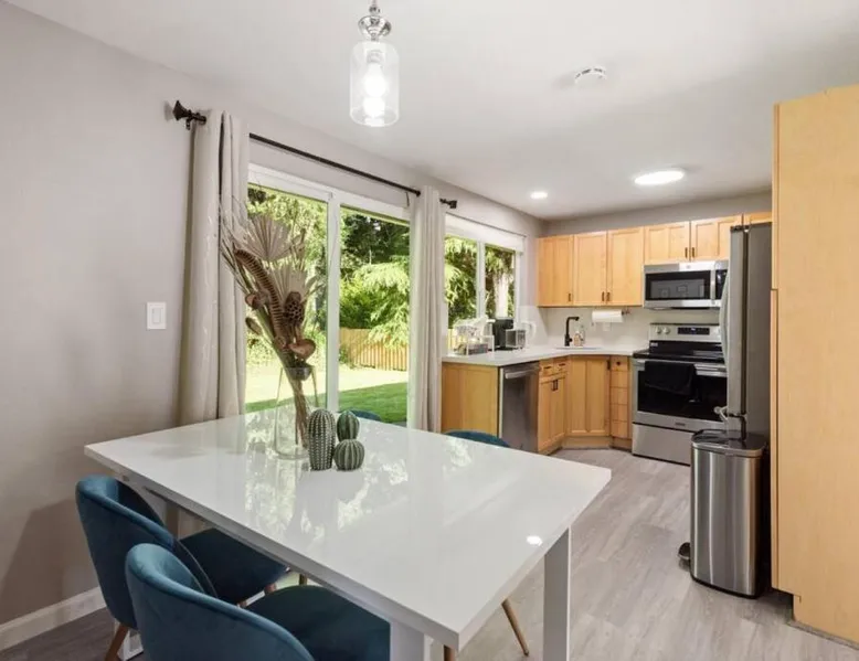 Spacious Accommodations: Cheerful Kirkland Home w&AC Big Yard,Walk to Beach in Kirkland offers a spacious holiday home with four bedrooms and two bathrooms. Family rooms provide ample space for relaxation and comfort. Outdoor Spaces: Guests can enjoy a garden and terrace, perfect for outdoor activities. The property features free WiFi, ensuring connectivity during the stay. Modern Amenities: The holiday home includes air-conditioning, a washing machine, and a fully equipped kitchen with a refrigerator, oven, and dishwasher. Additional amenities include a work desk, TV, and free toiletries. Nearby Attractions: Juanita Beach Park is an 18-minute walk away, while the Space Needle is 16 mi from the property. Snohomish County Airport is 15 mi distant. The spacious holiday home features 4 bedrooms and 2 bathrooms with a bath and free toiletries. The fully equipped kitchen has a stovetop, a refrigerator, a dishwasher and kitchenware. The holiday home provides air conditioning, a washing machine, a tea and coffee maker, tumble dryer, as well as a TV. The unit offers 4 beds.