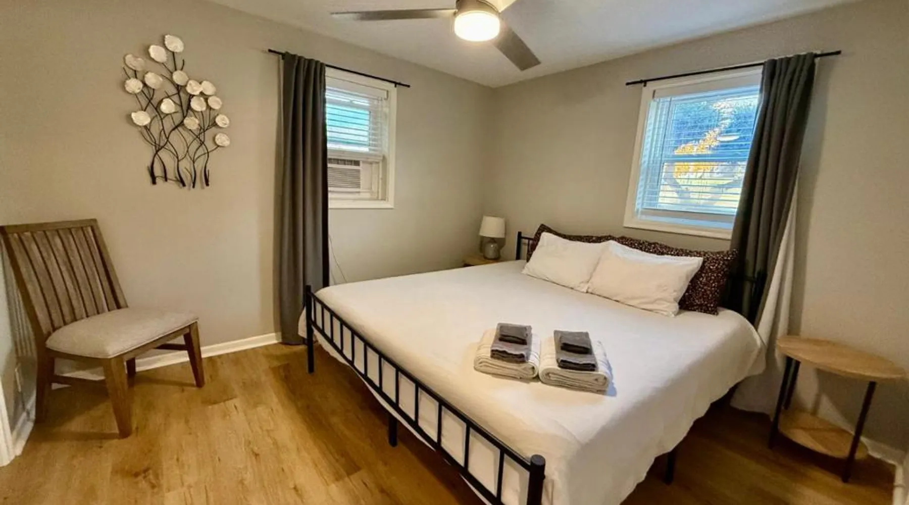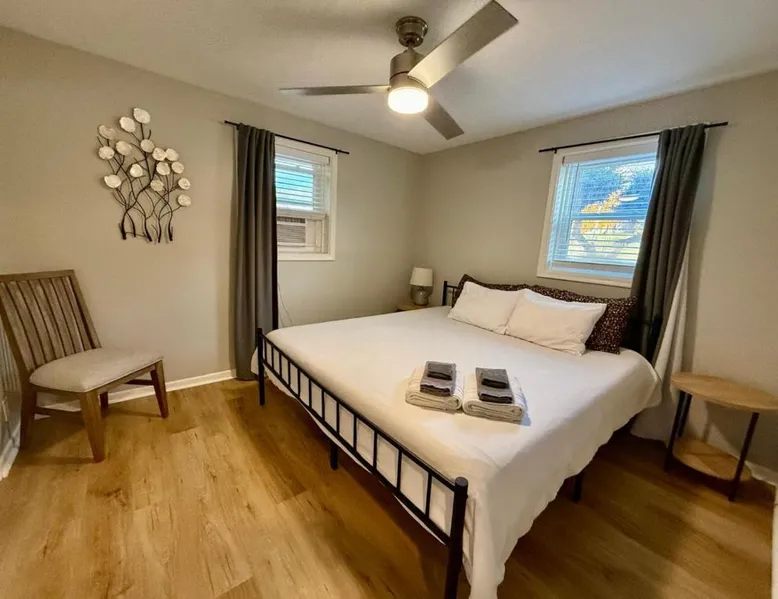 Spacious Living: Cathedral Modern King bed with Washer & Dryer offers a spacious apartment in Omaha. The property features one bedroom and one bathroom, providing ample space for relaxation and comfort. Modern Amenities: Guests enjoy free WiFi, air-conditioning, and a fully equipped kitchen with a washing machine and dryer. Additional amenities include a TV, dishwasher, microwave, and free toiletries. Convenient Location: Located 4.3 mi from Eppley Airfield, the apartment is close to attractions such as Td Ameritrade Park Omaha (2.6 mi) and the University of Nebraska Omaha (2.5 mi). An ice-skating rink is also nearby. Featuring a private entrance, this spacious apartment also is consisted of of 1 separate bedroom and 1 bathroom with a bath and a hairdryer. In the well-equipped kitchen, guests will find a stovetop, a refrigerator, a dishwasher and kitchenware. The air-conditioned apartment offers a TV, a washing machine, a tea and coffee maker and a wardrobe. The unit offers 1 bed.