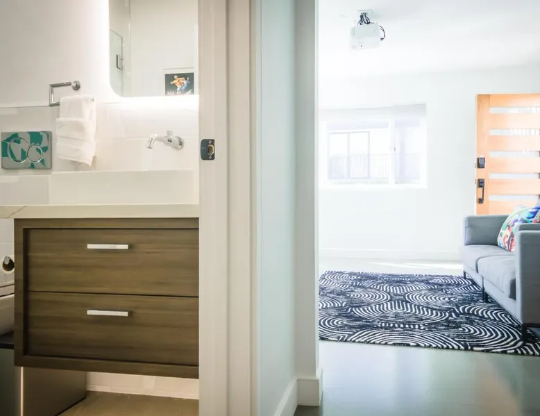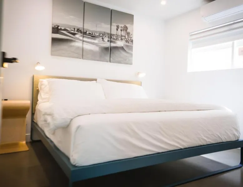 Beachfront Location: The Redline Venice in Los Angeles offers direct beachfront access and a sun terrace. Guests enjoy sea views and a relaxing atmosphere. Comfortable Accommodations: Recently renovated aparthotel features family rooms with kitchenettes, private bathrooms, and balconies. Each unit includes air-conditioning, a terrace, and free WiFi. Convenient Amenities: The property provides free toiletries, a dining area, and a work desk. Additional facilities include an outdoor seating area, picnic area, and bicycle parking. Nearby Attractions: Venice Beach is a 2-minute walk away, while Venice Beach Boardwalk is just a few steps. Los Angeles International Airport is 5.6 mi from the aparthotel. Featuring a private entrance, this air-conditioned apartment is consisted of of 1 living room, 2 separate bedrooms and 1 bathroom with a shower and a hairdryer. In the well-equipped kitchen, guests will find a stovetop, a refrigerator, a dishwasher and kitchenware. Boasting a terrace, this apartment also offers a tea and coffee maker, a seating area and a flat-screen TV with streaming services. The unit offers 2 beds.