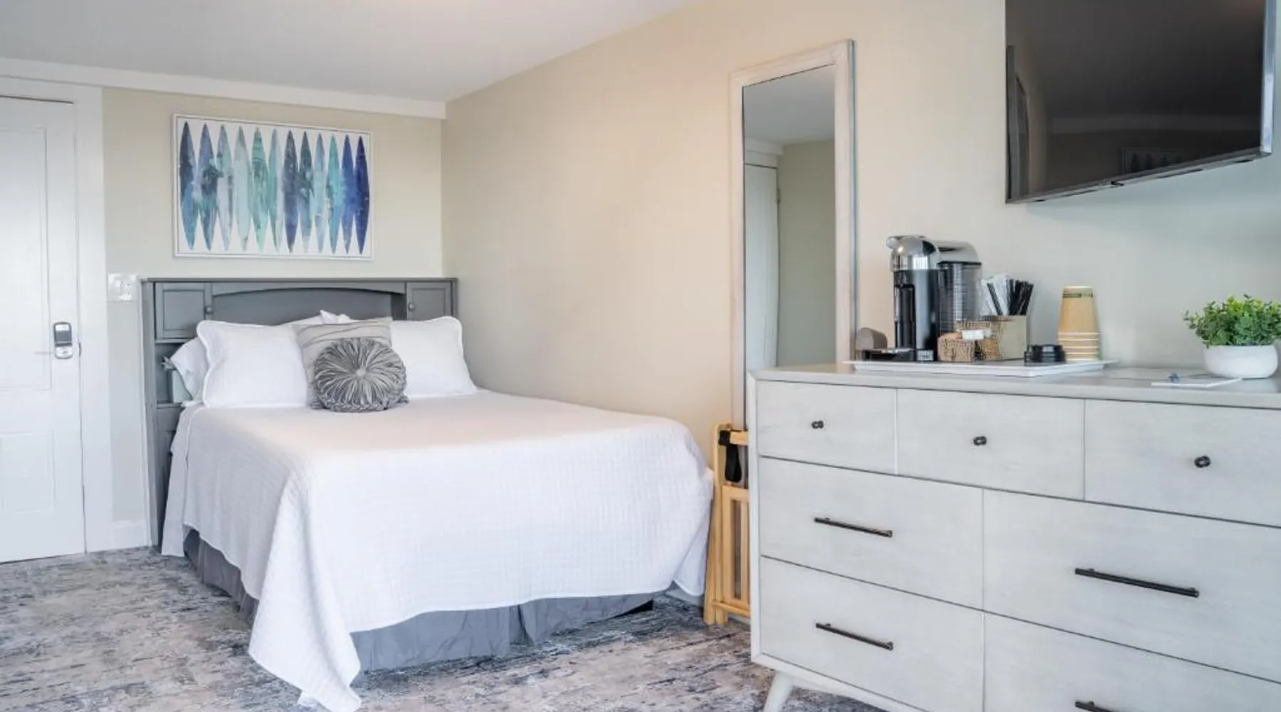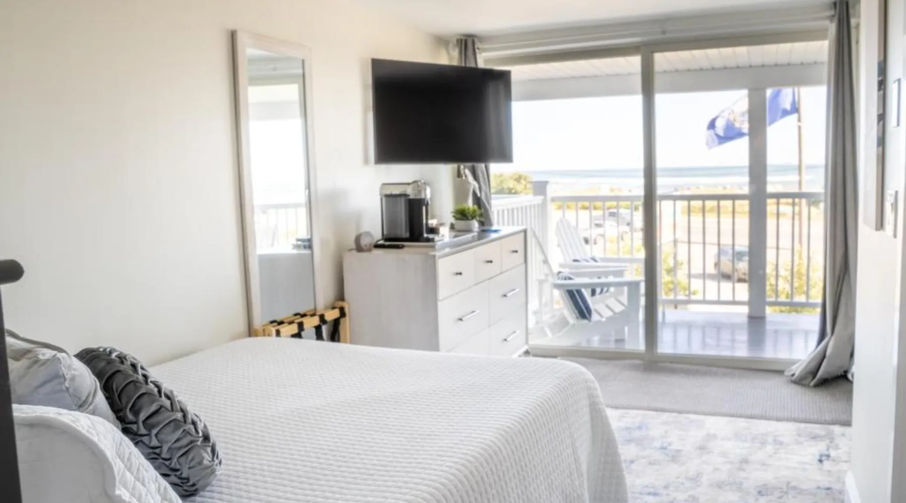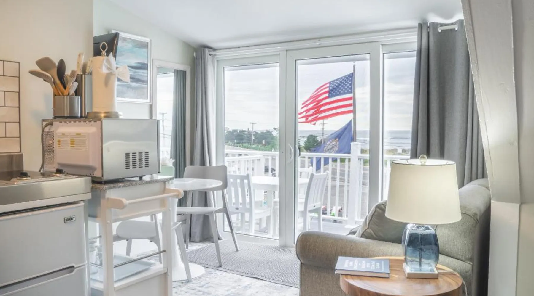 Comfortable Accommodations: 935 Ocean, a Beachside Inn in Hampton offers family rooms with private bathrooms, air-conditioning, and sea views. Each room includes a tea and coffee maker, hairdryer, and free toiletries. Leisure Facilities: Guests can relax in the seasonal outdoor swimming pool, garden, and terrace. The property features an outdoor fireplace, outdoor seating area, and free on-site private parking. Convenient Location: Located 13 mi from Portsmouth International Airport, the hotel is a 2-minute walk from North Beach. Nearby attractions include Casino Ballroom (2.7 mi) and Ogunquit Playhouse (29 mi). Guests appreciate the room cleanliness, scenic views, and convenient location. In the fully equipped kitchenette, guests will find a stovetop, a refrigerator, kitchenware and a microwave. This air-conditioned studio is consisted of of a flat-screen TV with streaming services, a private bathroom as well as a balcony with sea views. The unit has 1 bed.