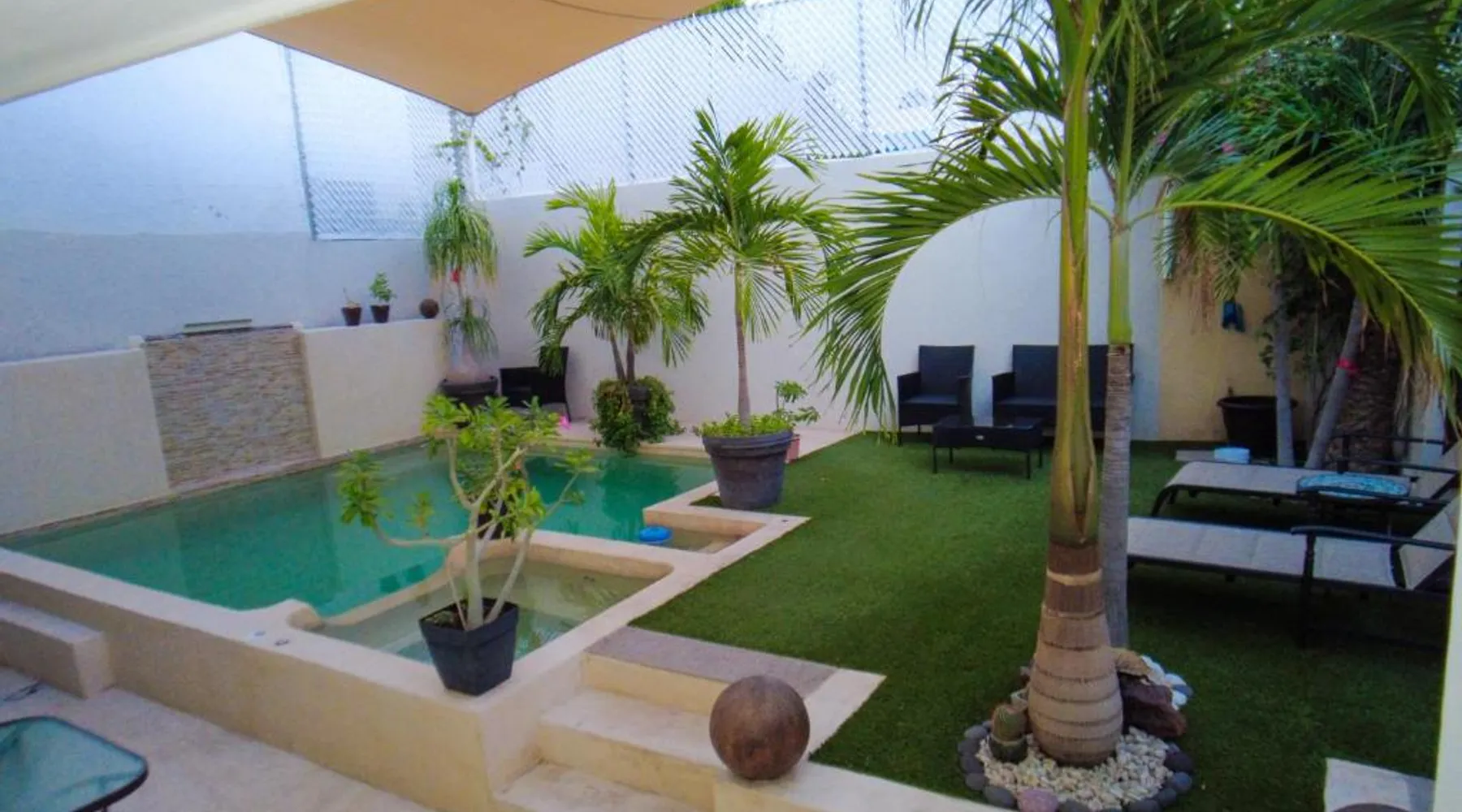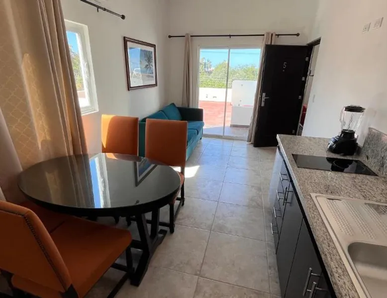 Modern Comforts: Suites Casa Blanca in La Paz offers a recently renovated apartment with air-conditioning, a kitchenette, and a private bathroom. Guests enjoy free WiFi, a terrace, balcony, and a private entrance. Outdoor Amenities: The property features a sun terrace, garden, and a year-round outdoor swimming pool. Additional facilities include a hot tub, family rooms, and bike hire. Convenient Location: Located 7.5 mi from Manuel Márquez de León International Airport, the apartment is a 15-minute walk from La Paz Malecon Beach. Nearby attractions include the La Paz Cathedral and the La Paz Zoo. Guest Satisfaction: Highly rated for its swimming pool, convenient location, and room cleanliness. Boasting a private entrance, this air-conditioned apartment comes with 1 bedroom, 1 bathroom and a living room. The fully equipped kitchen has a refrigerator, kitchenware and a microwave. Featuring a balcony with garden views, this apartment also features a coffee machine and a flat-screen TV with streaming services. The unit has 1 bed.
