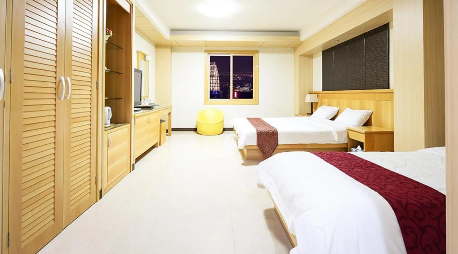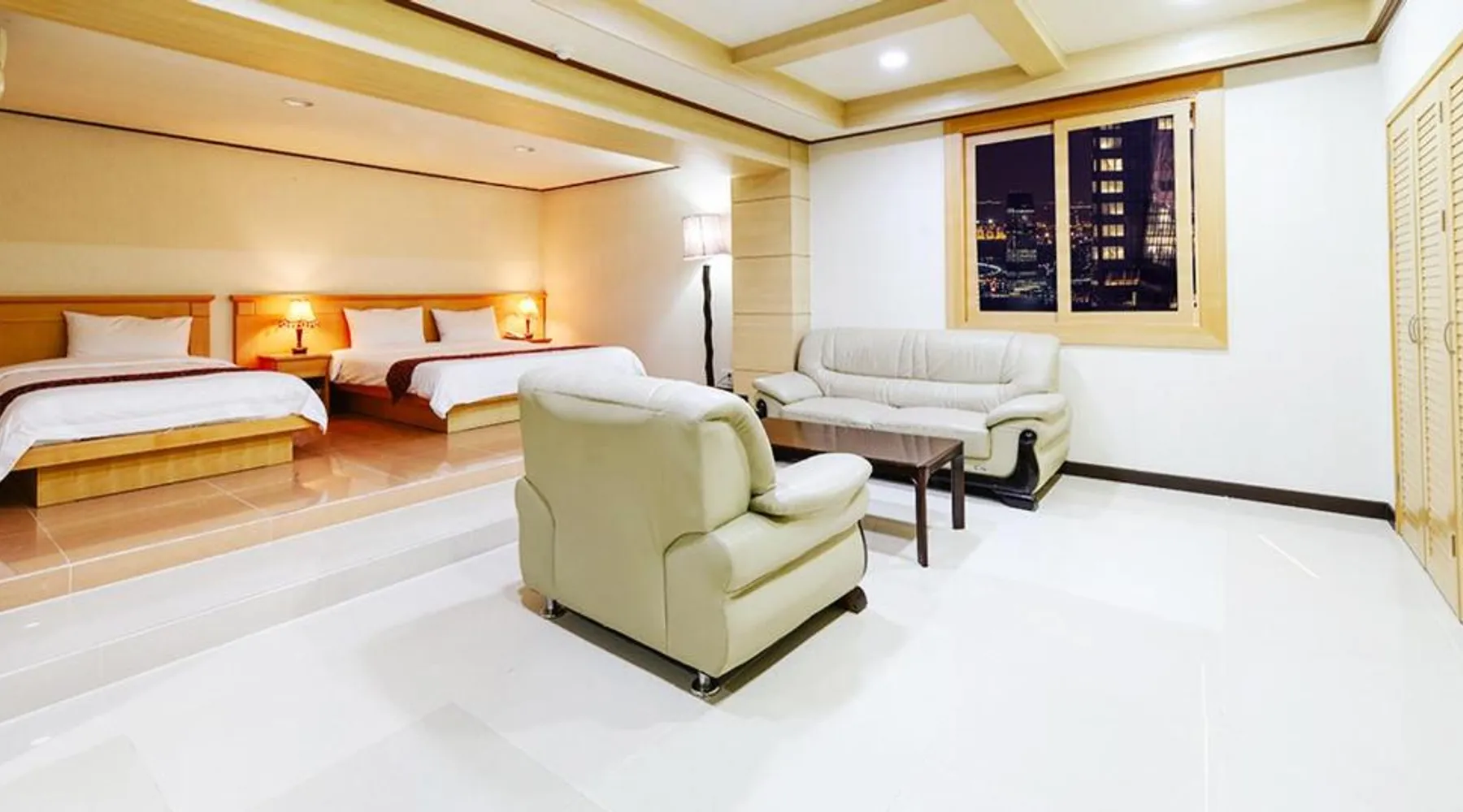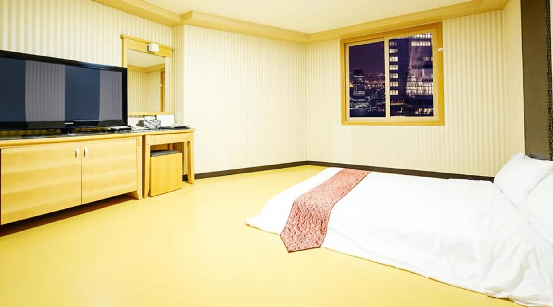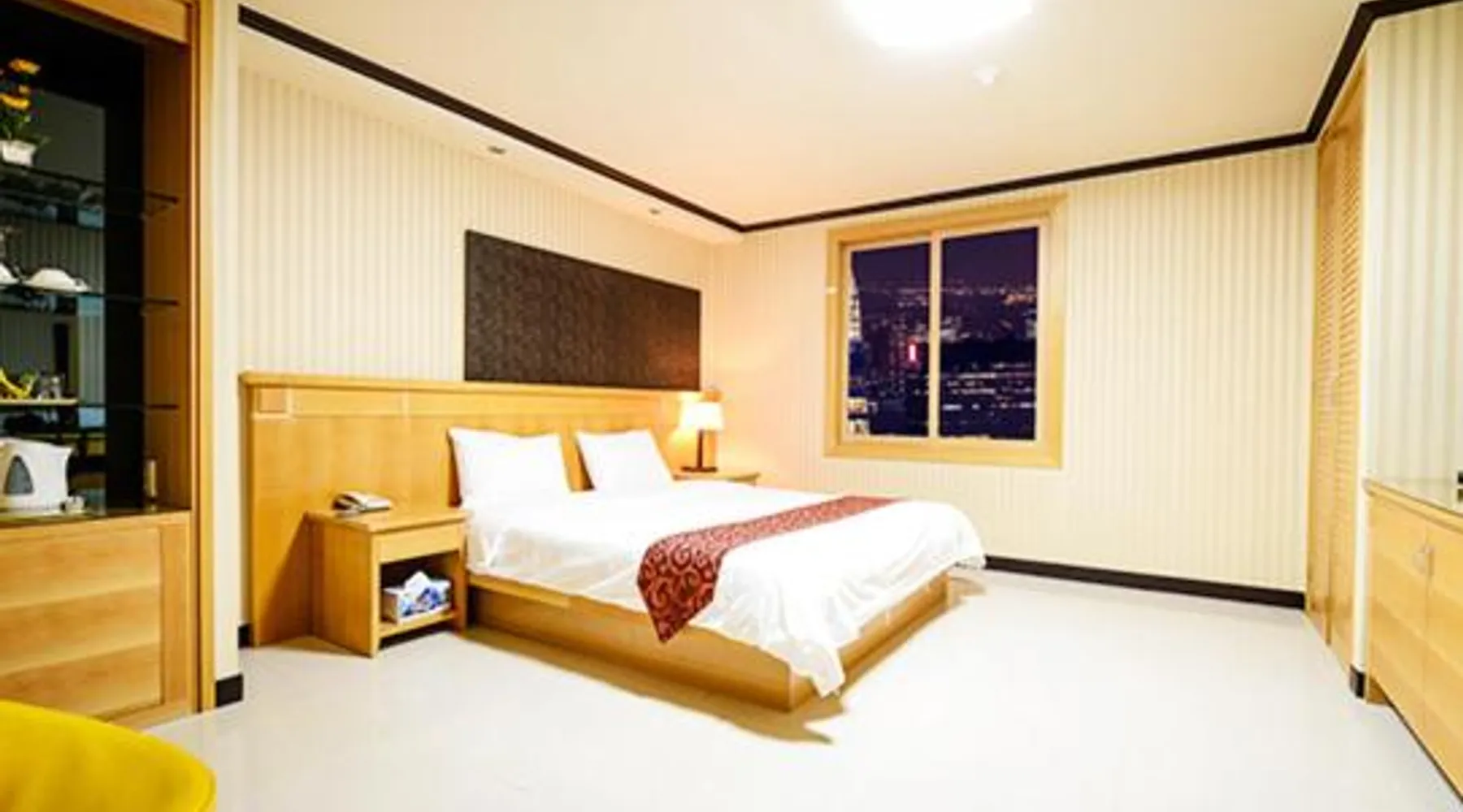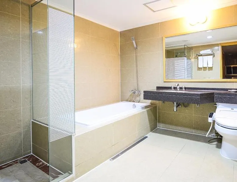 Comfortable Accommodations: Sacheon Tourist Hotel in Sacheon offers family rooms with air-conditioning, private bathrooms, and modern amenities. Each room includes a sofa bed, TV, and free WiFi. Dining Experience: Guests can enjoy a variety of cuisines at the modern restaurant, including Chinese, British, American, Japanese, and Korean. Breakfast options include local specialties, warm dishes, fresh pastries, and more. Convenient Facilities: The hotel provides free bicycles, a 24-hour front desk, paid shuttle service, elevator, daily housekeeping, and free on-site parking. Additional amenities include a hot tub, coffee shop, and luggage storage. Prime Location: Located 0.6 mi from Sacheon Airport, the hotel is near attractions such as Musical Fountain (9.3 mi) and Jinju National Museum (9.3 mi). Highly rated by guests for its excellent service. This double room's special feature is the hot tub. Providing free toiletries and bathrobes, this double room includes a private bathroom with a walk-in shower, a bath and a bidet. The air-conditioned double room provides a flat-screen TV with cable channels, a tea and coffee maker, a dining area, a wardrobe as well as city views. The unit offers 1 bed.