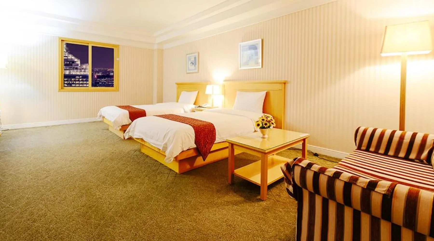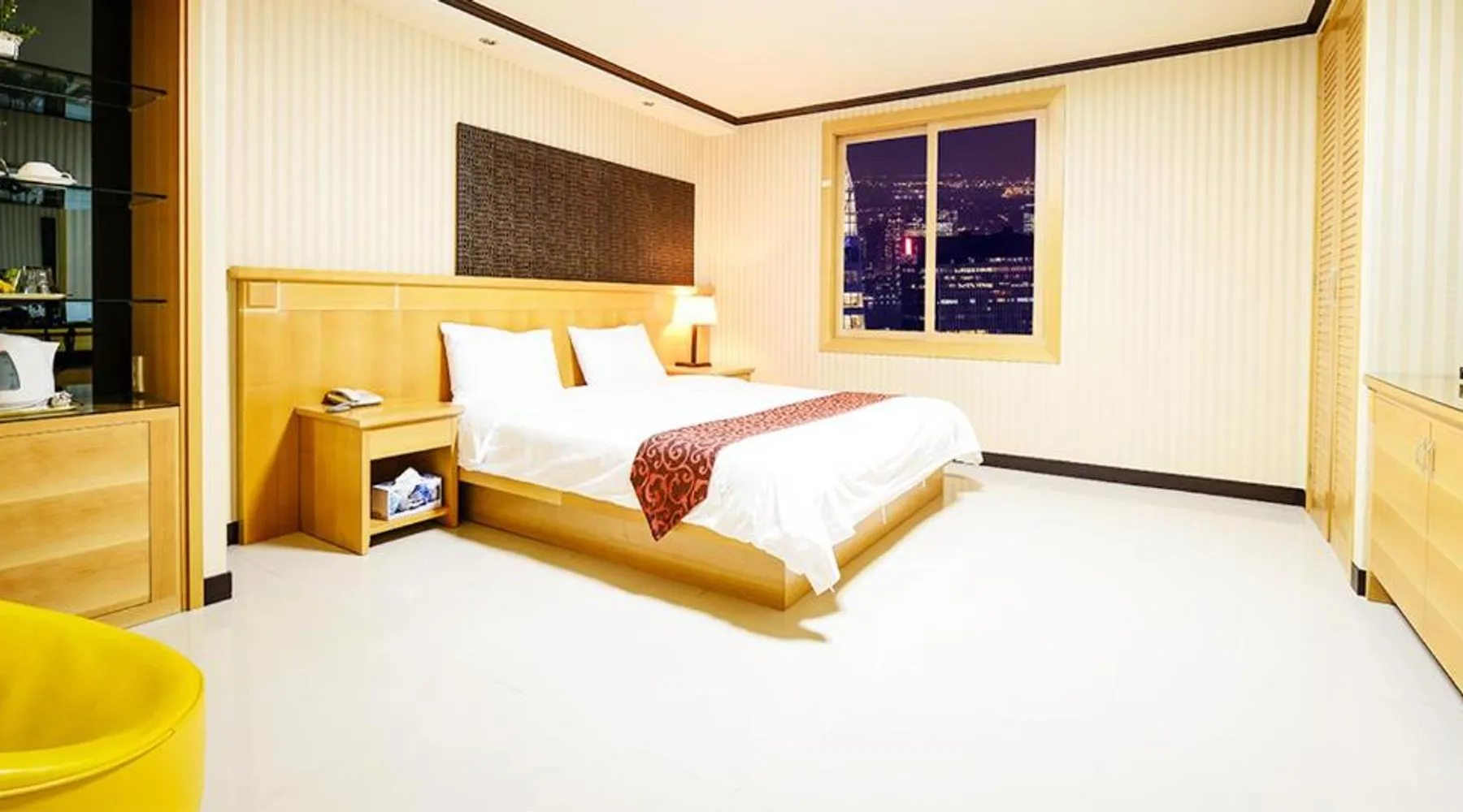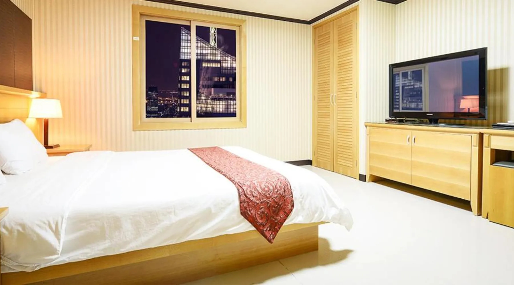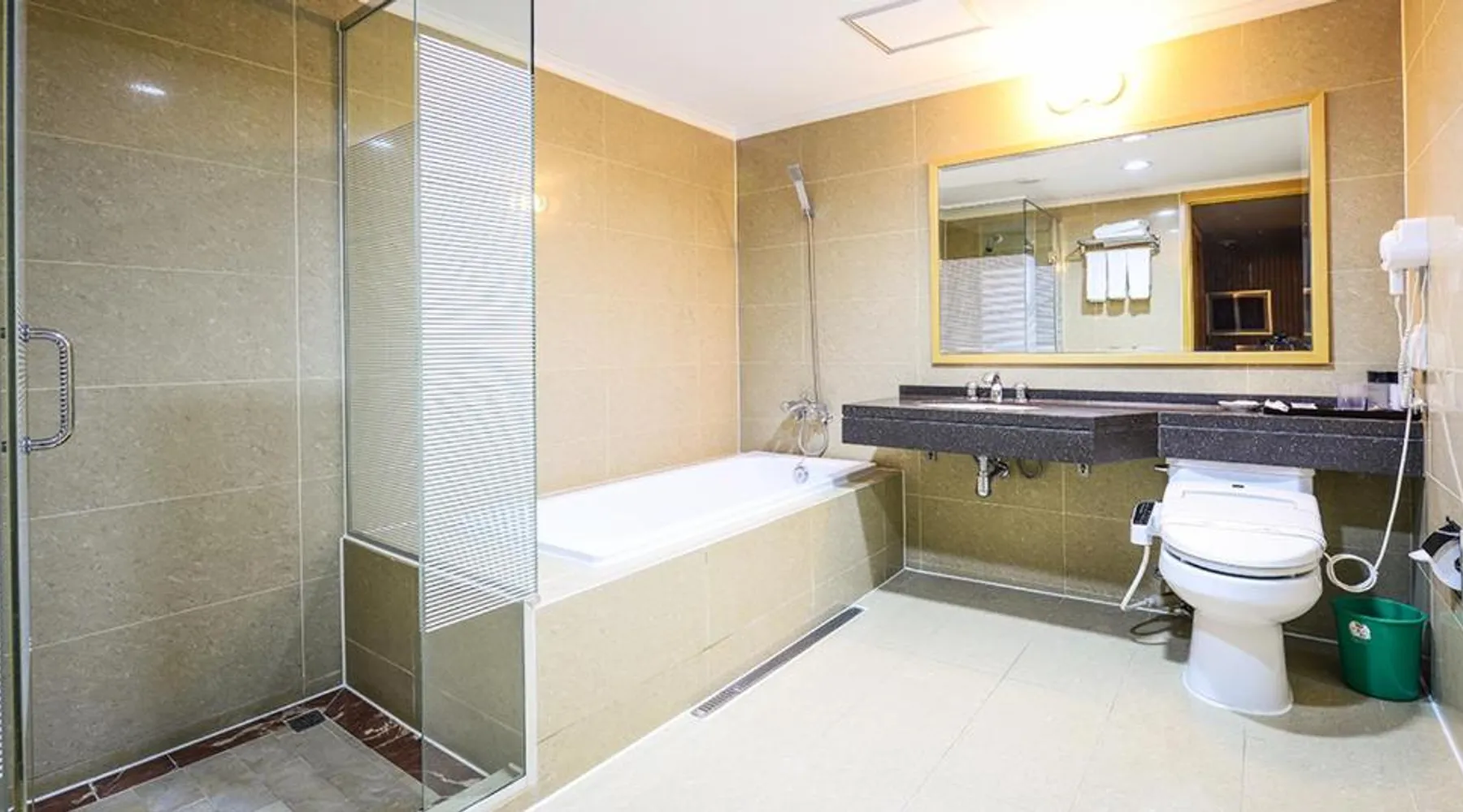 Comfortable Accommodations: Sacheon Tourist Hotel in Sacheon offers family rooms with air-conditioning, private bathrooms, and modern amenities. Each room includes a sofa bed, TV, and free WiFi. Dining Experience: Guests can enjoy a variety of cuisines at the modern restaurant, including Chinese, British, American, Japanese, and Korean. Breakfast options include local specialties, warm dishes, fresh pastries, and more. Convenient Facilities: The hotel provides free bicycles, a 24-hour front desk, paid shuttle service, elevator, daily housekeeping, and free on-site parking. Additional amenities include a hot tub, coffee shop, and luggage storage. Prime Location: Located 0.6 mi from Sacheon Airport, the hotel is near attractions such as Musical Fountain (9.3 mi) and Jinju National Museum (9.3 mi). Highly rated by guests for its excellent service. This double room's special feature is the hot tub. Providing free toiletries and bathrobes, this double room includes a private bathroom with a walk-in shower, a bath and a bidet. The air-conditioned double room provides a flat-screen TV with cable channels, a tea and coffee maker, a dining area, a wardrobe as well as city views. The unit offers 1 bed.