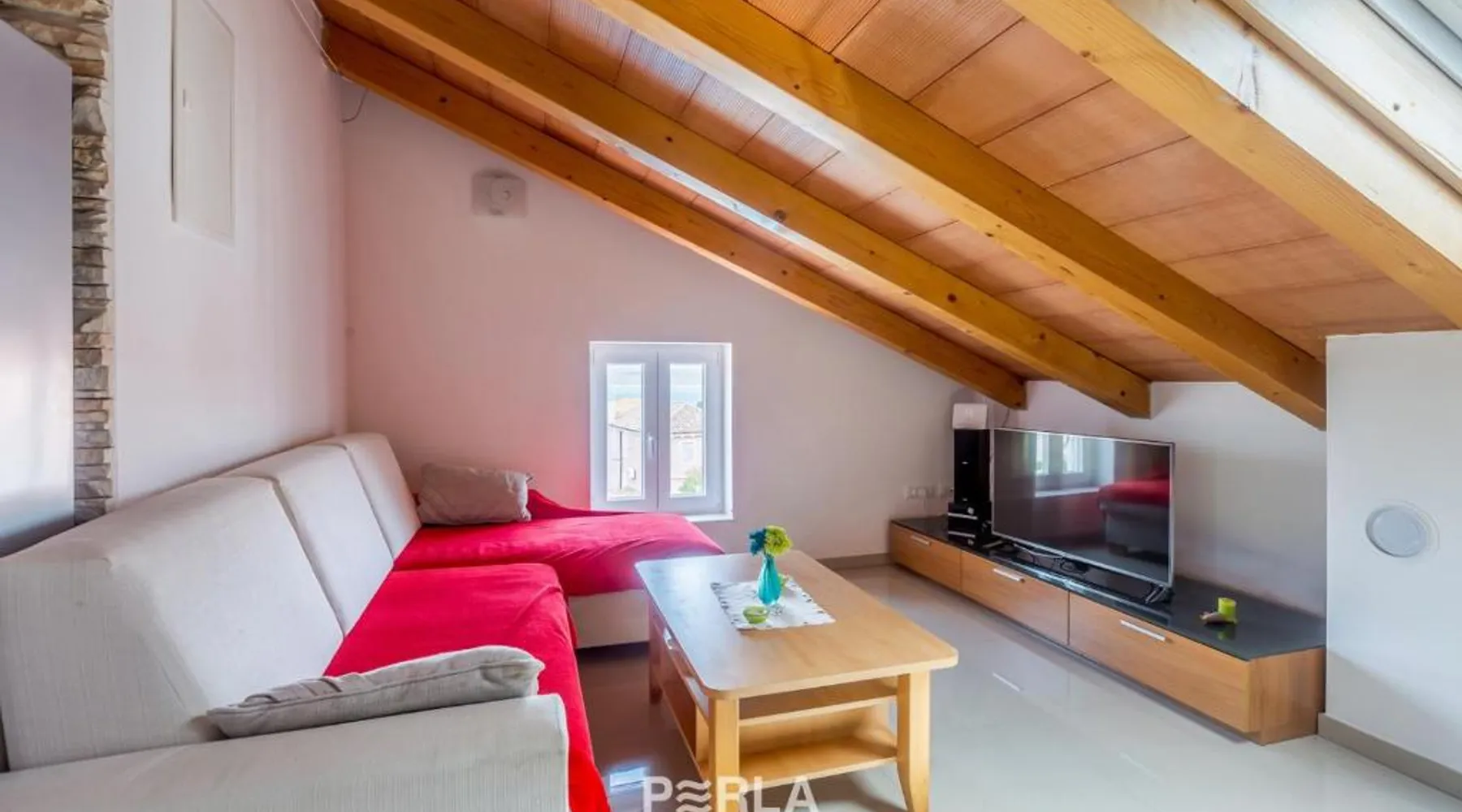 Elegant Accommodations: House MIRABELLE with Pool in Nerezine offers a serene garden and an outdoor swimming pool. Guests enjoy free WiFi throughout the property, ensuring connectivity during their stay. Comfortable Amenities: The guest house features air-conditioning, a balcony, and a washing machine. Each room includes a private bathroom, kitchen, and dining area. Additional amenities include a barbecue, tea and coffee maker, and a TV. Convenient Location: Located a 4-minute walk from Lucica Beach, the property is also close to attractions such as the Museum of Apoxyomenos (11 mi) and Losinj Castle (11 mi). Free on-site private parking is available for guests. Highly Rated by Guests: House MIRABELLE with Pool is highly rated by guests for its excellent facilities and welcoming atmosphere. The private pool is a top feature of this apartment. This spacious apartment comes with 1 living room, 2 separate bedrooms and 1 bathroom with a shower and a hairdryer. Guests will find a refrigerator, a dishwasher, kitchenware and an oven in the well-fitted kitchen. The apartment also includes a barbecue. This air-conditioned apartment includes a dining area, a TV with satellite channels a washing machine and a balcony. The unit has 3 beds.