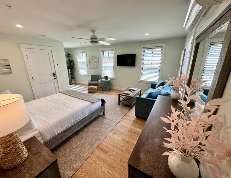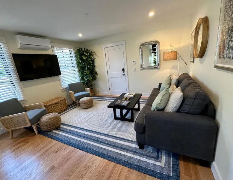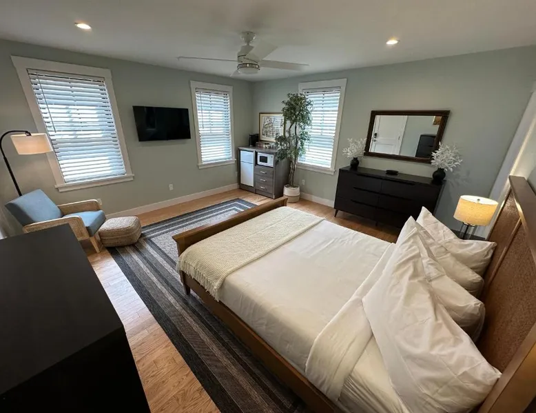 Prime Location: Prime Location! Renovated House! 6 Bed4 Bath in Newport offers a convenient location with King Park Beach less than 0.6 mi away. The International Tennis Hall of Fame is a 6-minute walk, while Rosecliff Mansion lies 0.7 mi from the property. Comfortable Accommodations: The hotel features six bedrooms and four bathrooms, ensuring ample space for all guests. Each room is equipped with air-conditioning, a tea and coffee maker, refrigerator, shared bathroom, TV, and free WiFi. Modern Amenities: Guests can enjoy a terrace, kitchenette, spa bath, patio, and a fully equipped kitchen with a dishwasher, microwave, and oven. Additional amenities include bathrobes, sofa bed, and a wardrobe. Convenient Services: The property is pet-friendly and offers free parking. T.F. Green Airport is 27 mi away, providing easy access for travelers. Highly rated for its convenient location, room cleanliness, and comfort. This suite's special feature is the spa bath. The suite provides air conditioning and a tea and coffee maker, as well as a shared bathroom featuring a hairdryer. The suite's kitchenette, which features a refrigerator and a microwave, is available for cooking and storing food. This suite has a wardrobe, heating and a TV. The unit offers 1 bed.