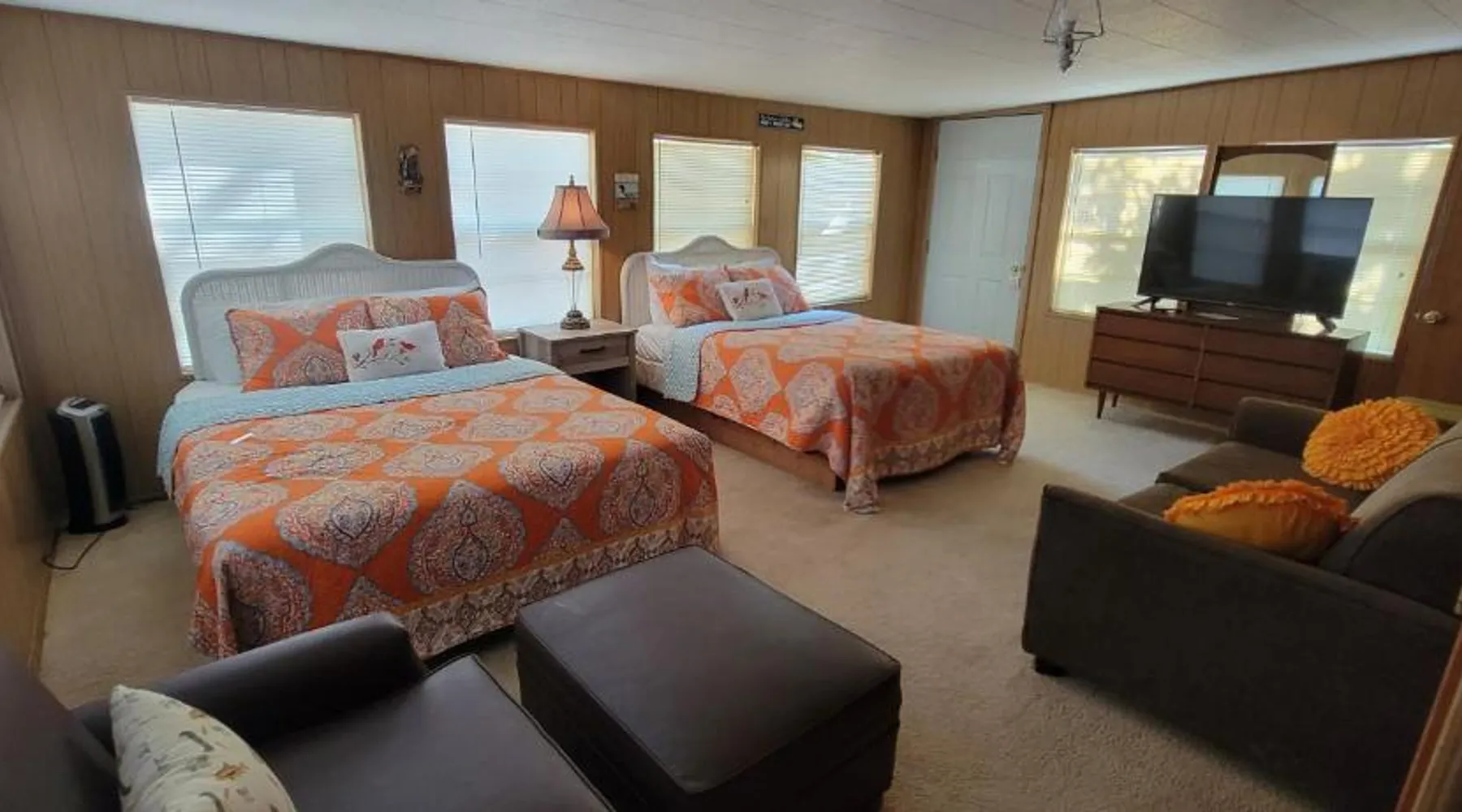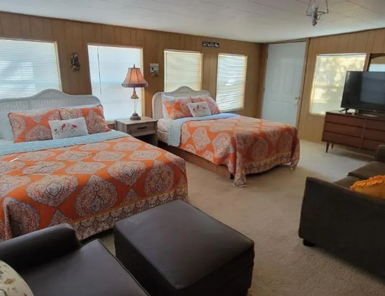 Elegant Accommodations: Southern Comfort Inn & Resort in Greers Ferry offers a 5-star experience with a garden, seasonal outdoor swimming pool, and free WiFi. Guests enjoy air-conditioning, private bathrooms, and balconies with pool views. Comfortable Amenities: The hotel features an outdoor fireplace, outdoor play area, and outdoor seating. Additional amenities include a barbecue, tea and coffee maker, and a work desk. Free on-site private parking is available. Exceptional Service: Guests appreciate the attentive property staff and excellent service support. Housekeeping, full-day security, and free toiletries enhance the stay. Convenient Location: Located 77 mi from Clinton National Airport, the resort provides easy access to local attractions. This spacious suite comes with 1 living room, 1 separate bedroom and 1 bathroom with a bath and free toiletries. Guests will find a stovetop, a refrigerator, kitchenware and an oven in the kitchen. The suite also includes a barbecue. This air-conditioned suite consists of a dining area, a flat-screen TV with satellite channels a tea and coffee maker and a patio. The unit has 5 beds.
