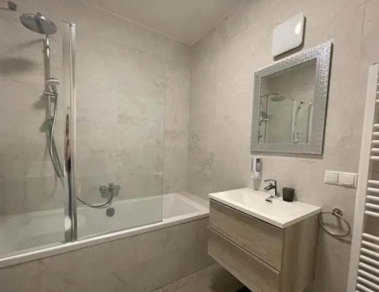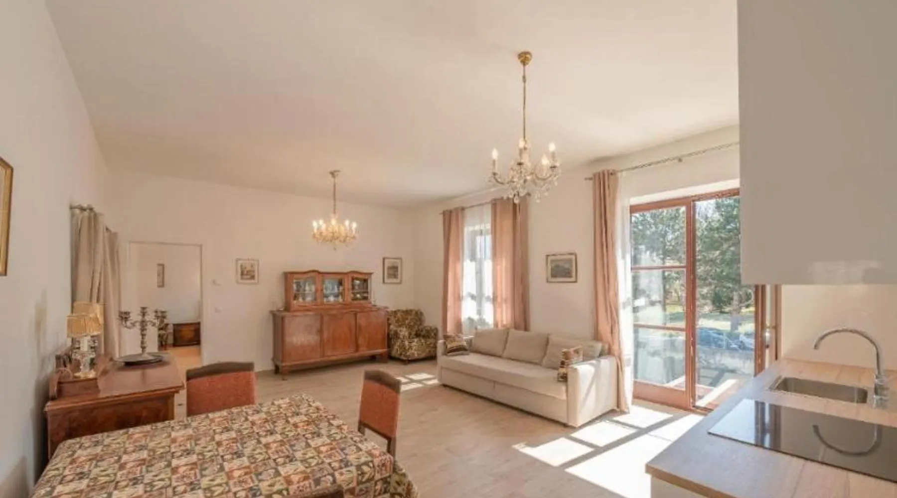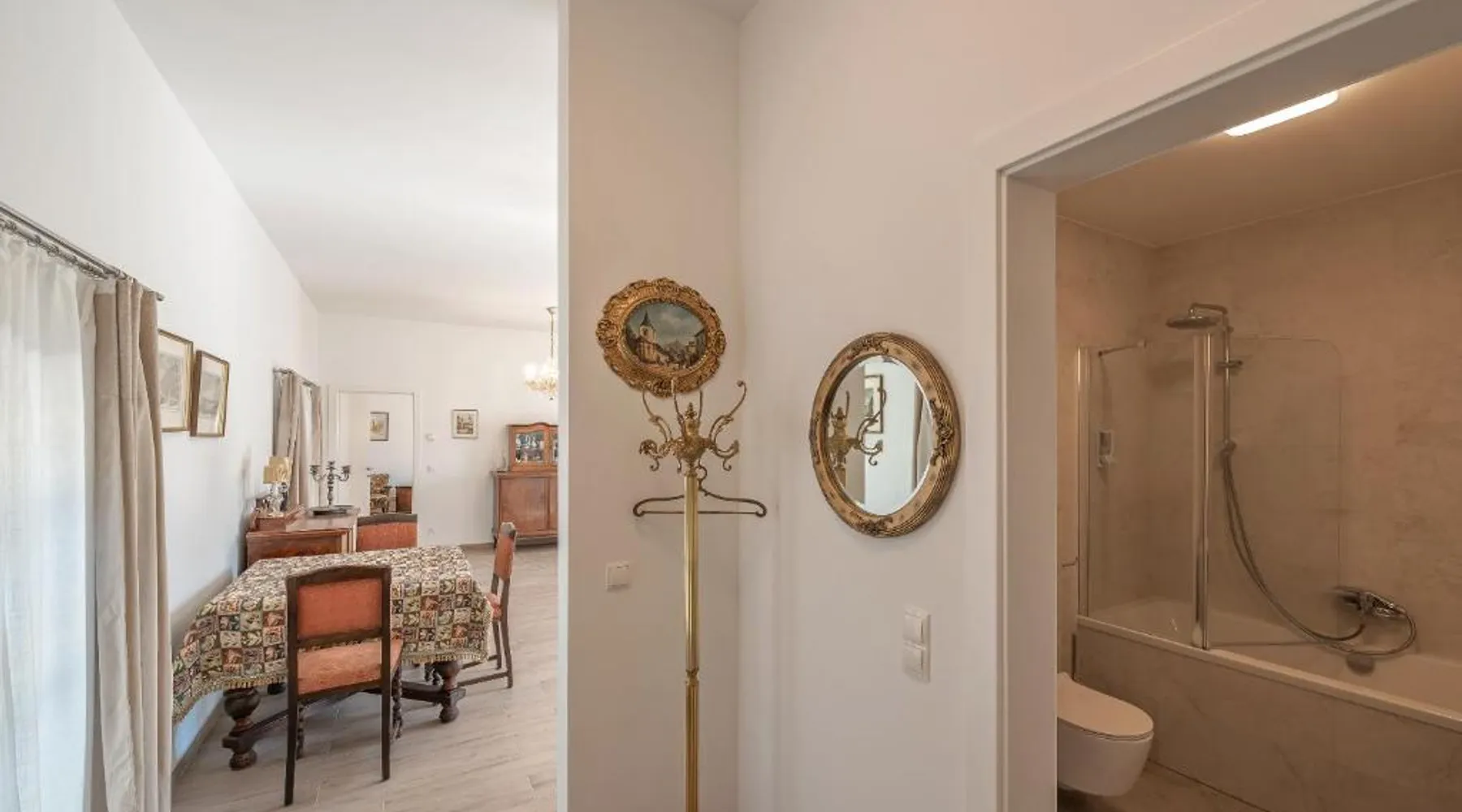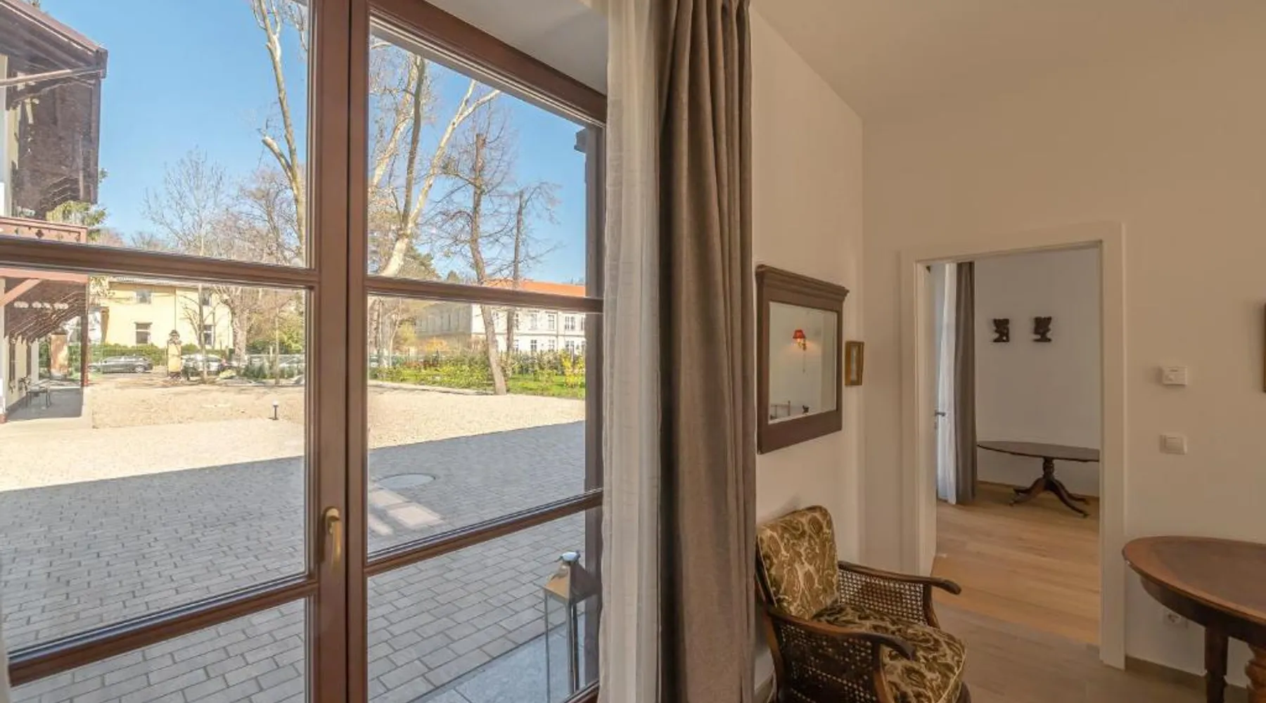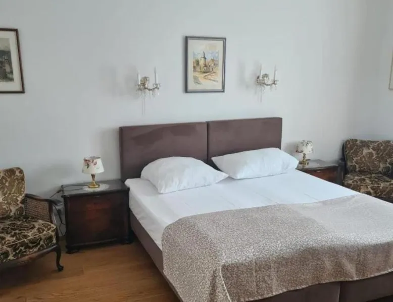 Historical Apartments in Baden: Villa Musik offers a unique apartment experience in Baden, Austria. The property features a sun terrace and a beautiful garden, providing a relaxing environment for all guests. Comfortable Living Spaces: Each apartment includes air-conditioning, a kitchenette, and a private bathroom. Additional amenities include a washing machine, dishwasher, and a work desk, ensuring a comfortable and convenient stay. Convenient Facilities: Guests benefit from private check-in and check-out services, an outdoor seating area, and family rooms. Free on-site private parking is available, and the property is located less than 0.6 mi from Casino Baden and Spa Garden. Nearby Attractions: Villa Musik is located 25 mi from Vienna International Airport and close to Roman baths and Spa Garden. Other nearby points of interest include Schönbrunner Gardens and Schönbrunn Palace, each approximately 20 mi away. An ice-skating rink is also in the vicinity. This apartment includes 1 living room, 1 separate bedroom and 1 bathroom with a shower and free toiletries. Guests can make meals in the kitchen that is fitted with a stovetop, a refrigerator, a dishwasher and kitchenware. The air-conditioned apartment offers a flat-screen TV, a washing machine, a tea and coffee maker, a dining area as well as river views. The unit has 2 beds.