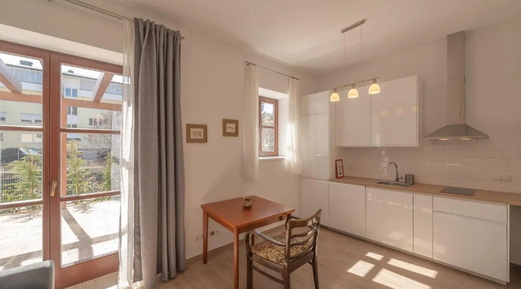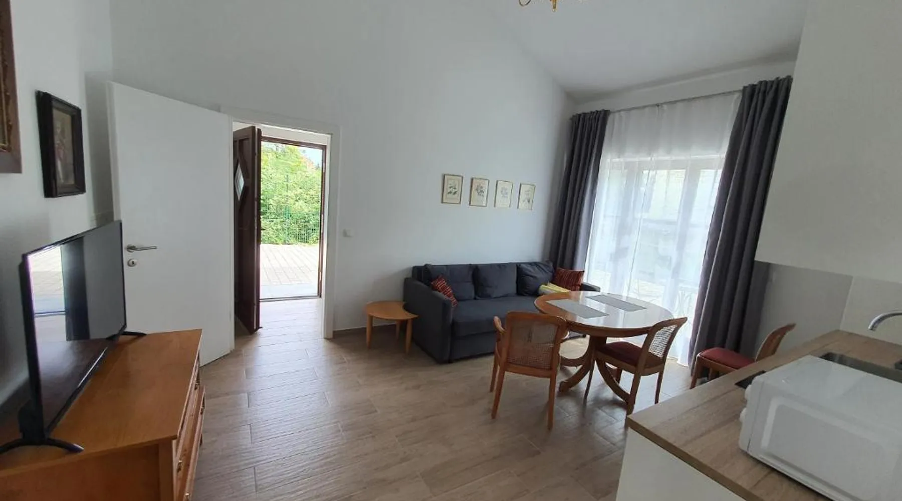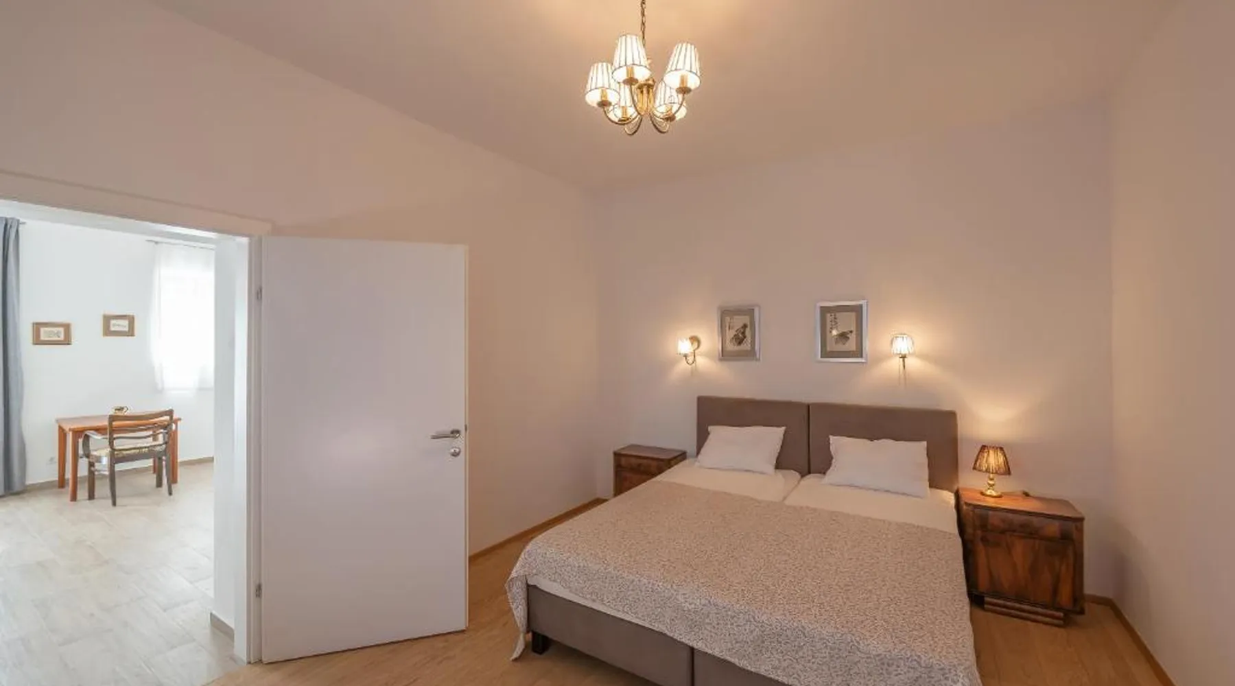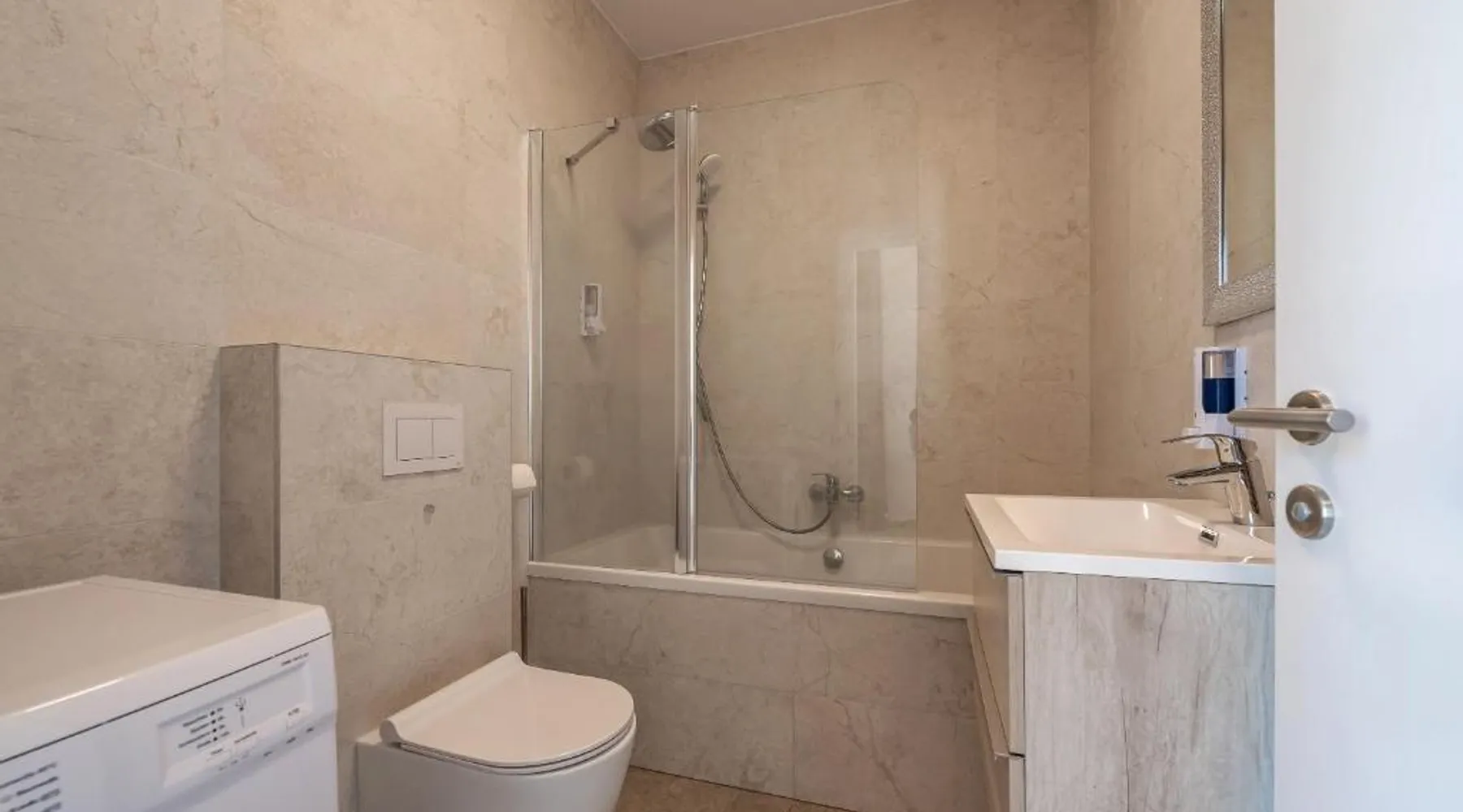 Historical Apartments in Baden: Villa Musik offers a unique apartment experience in Baden, Austria. The property features a sun terrace and a beautiful garden, providing a relaxing environment for all guests. Comfortable Living Spaces: Each apartment includes air-conditioning, a kitchenette, and a private bathroom. Additional amenities include a washing machine, dishwasher, and a work desk, ensuring a comfortable and convenient stay. Convenient Facilities: Guests benefit from private check-in and check-out services, an outdoor seating area, and family rooms. Free on-site private parking is available, and the property is located less than 0.6 mi from Casino Baden and Spa Garden. Nearby Attractions: Villa Musik is located 25 mi from Vienna International Airport and close to Roman baths and Spa Garden. Other nearby points of interest include Schönbrunner Gardens and Schönbrunn Palace, each approximately 20 mi away. An ice-skating rink is also in the vicinity. This apartment includes 1 living room, 1 separate bedroom and 1 bathroom with a shower and free toiletries. Guests can make meals in the kitchen that is fitted with a stovetop, a refrigerator, a dishwasher and kitchenware. The air-conditioned apartment offers a flat-screen TV, a washing machine, a tea and coffee maker, a dining area as well as river views. The unit has 2 beds.