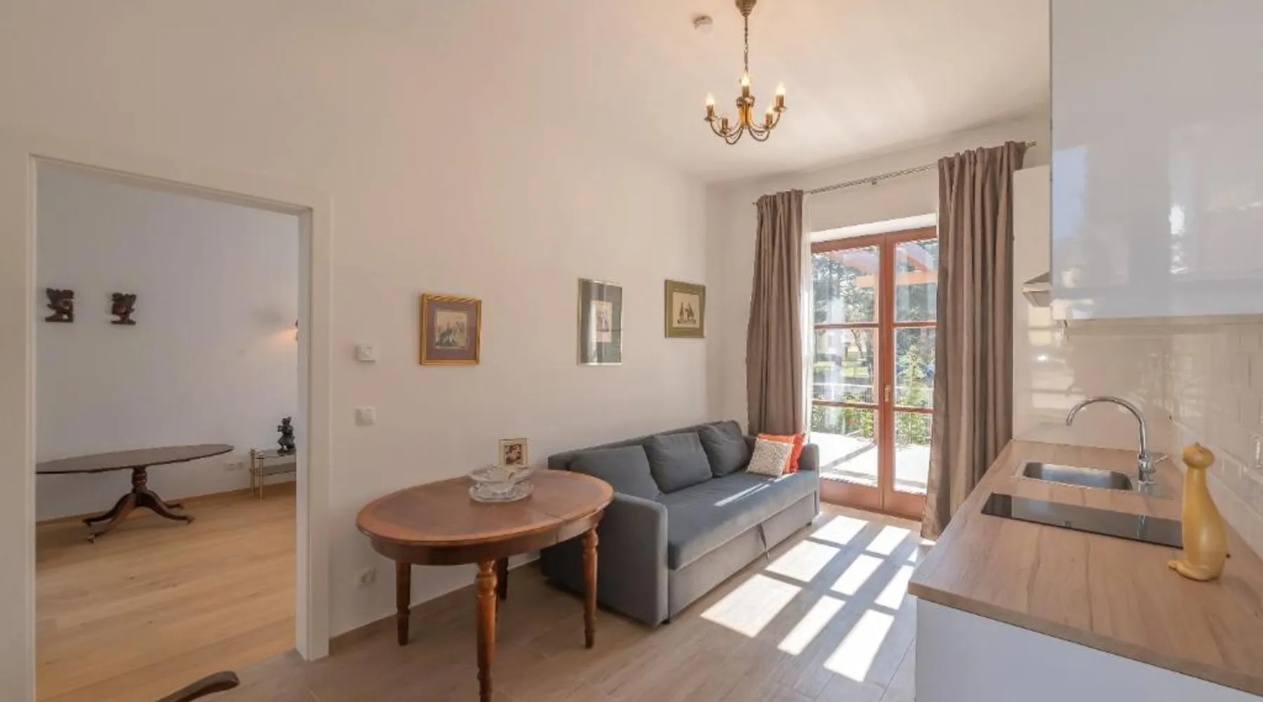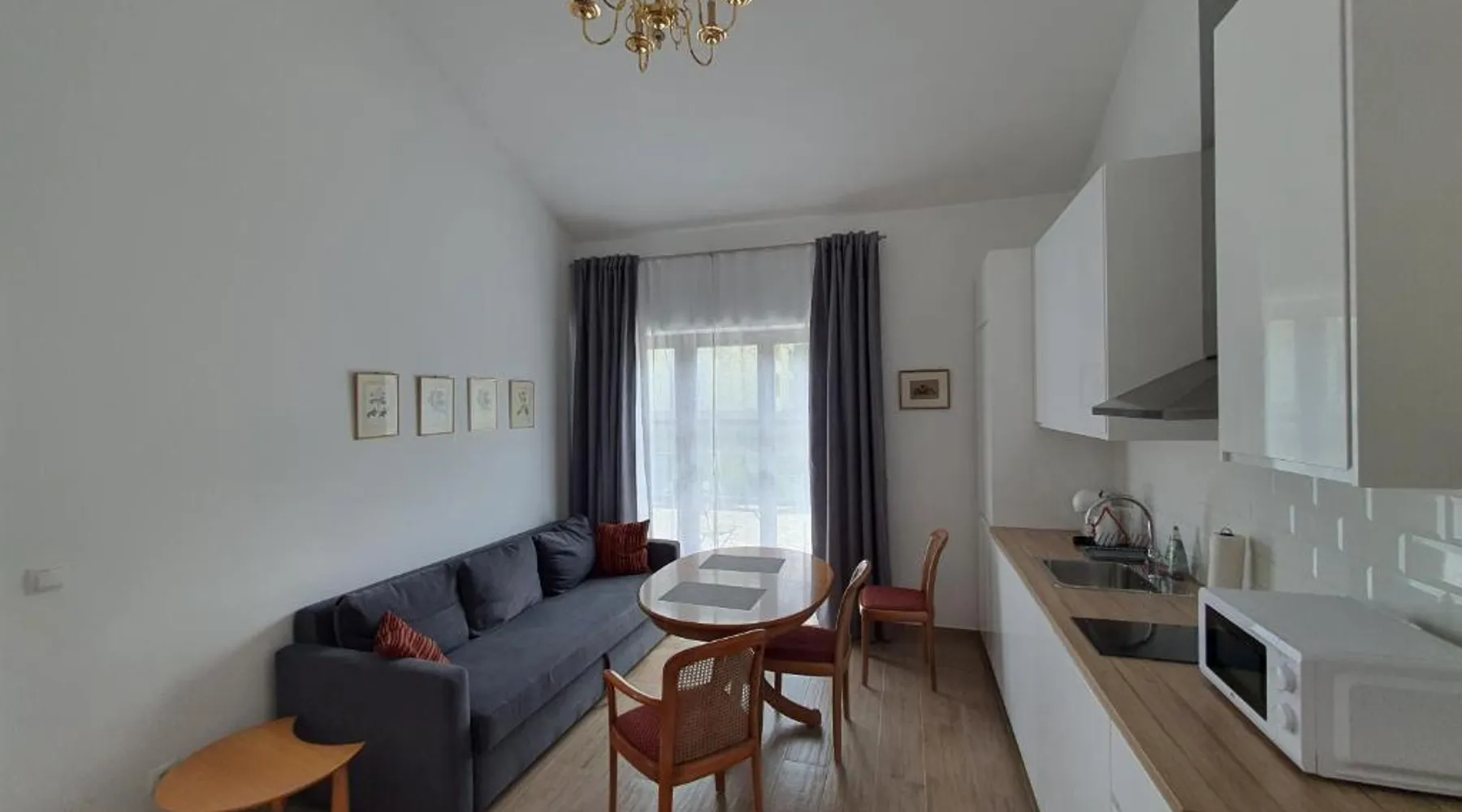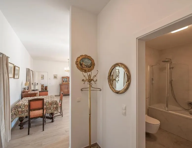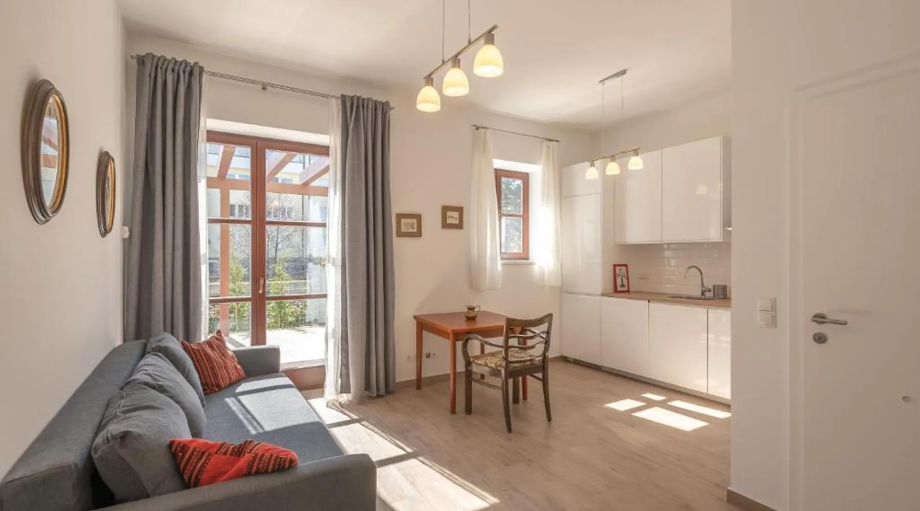 Historical Apartments in Baden: Villa Musik offers a unique apartment experience in Baden, Austria. The property features a sun terrace and a beautiful garden, providing a relaxing environment for all guests. Comfortable Living Spaces: Each apartment includes air-conditioning, a kitchenette, and a private bathroom. Additional amenities include a washing machine, dishwasher, and a work desk, ensuring a comfortable and convenient stay. Convenient Facilities: Guests benefit from private check-in and check-out services, an outdoor seating area, and family rooms. Free on-site private parking is available, and the property is located less than 0.6 mi from Casino Baden and Spa Garden. Nearby Attractions: Villa Musik is located 25 mi from Vienna International Airport and close to Roman baths and Spa Garden. Other nearby points of interest include Schönbrunner Gardens and Schönbrunn Palace, each approximately 20 mi away. An ice-skating rink is also in the vicinity. This apartment includes 1 living room, 1 separate bedroom and 1 bathroom with a shower and free toiletries. Guests can make meals in the kitchen that is fitted with a stovetop, a refrigerator, a dishwasher and kitchenware. The air-conditioned apartment offers a flat-screen TV, a washing machine, a tea and coffee maker, a dining area as well as river views. The unit has 2 beds.