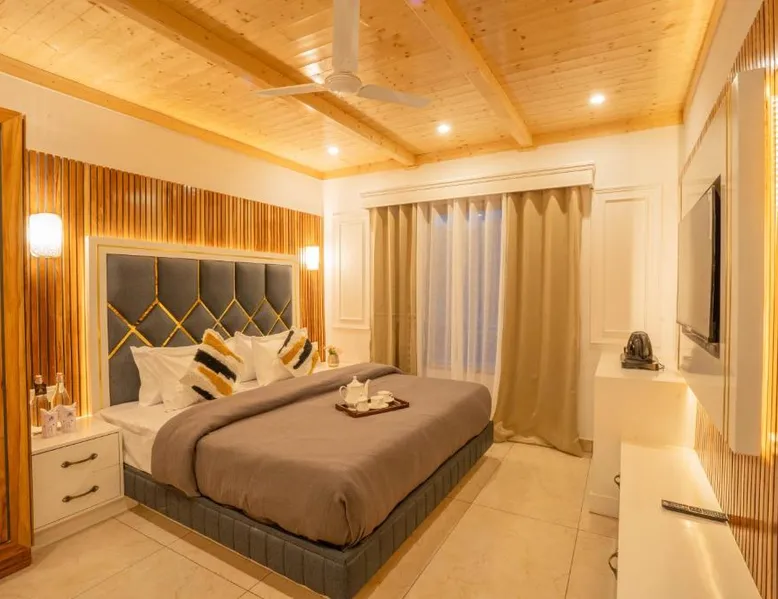 Elegant Accommodations: PerfectStayz Paradise near Bhatta Falls in Mussoorie offers a 5-star hotel experience with a terrace and free WiFi. Guests enjoy mountain and city views, balconies, and private bathrooms equipped with free toiletries. Comfortable Amenities: The property features family rooms, a 24-hour front desk, and room service. Additional amenities include a kitchenette, dining area, and soundproofing. Free off-site parking is available, and a paid airport shuttle service connects to Dehradun Airport, 28 mi away. Dining Options: A vegetarian and vegan breakfast is served daily. Outdoor dining areas provide scenic views, and the on-site restaurant offers a variety of cuisines. Local Attractions: Located 3.1 mi from Gun Hill Point and 11 mi from Kempty Falls, the hotel is near attractions such as Landour Clock Tower and Camel's Back Road. Dehradun Airport is 28 mi away, and the Indian Military Academy is 19 mi from the property. This holiday home comes with 1 living room, 1 separate bedroom and 1 bathroom with a shower and free toiletries. Guests can make meals in the kitchen that features a stovetop, a dishwasher, a microwave and a tea and coffee maker. Boasting a terrace with mountain views, this holiday home also features soundproof walls and a flat-screen TV. The unit has 2 beds.