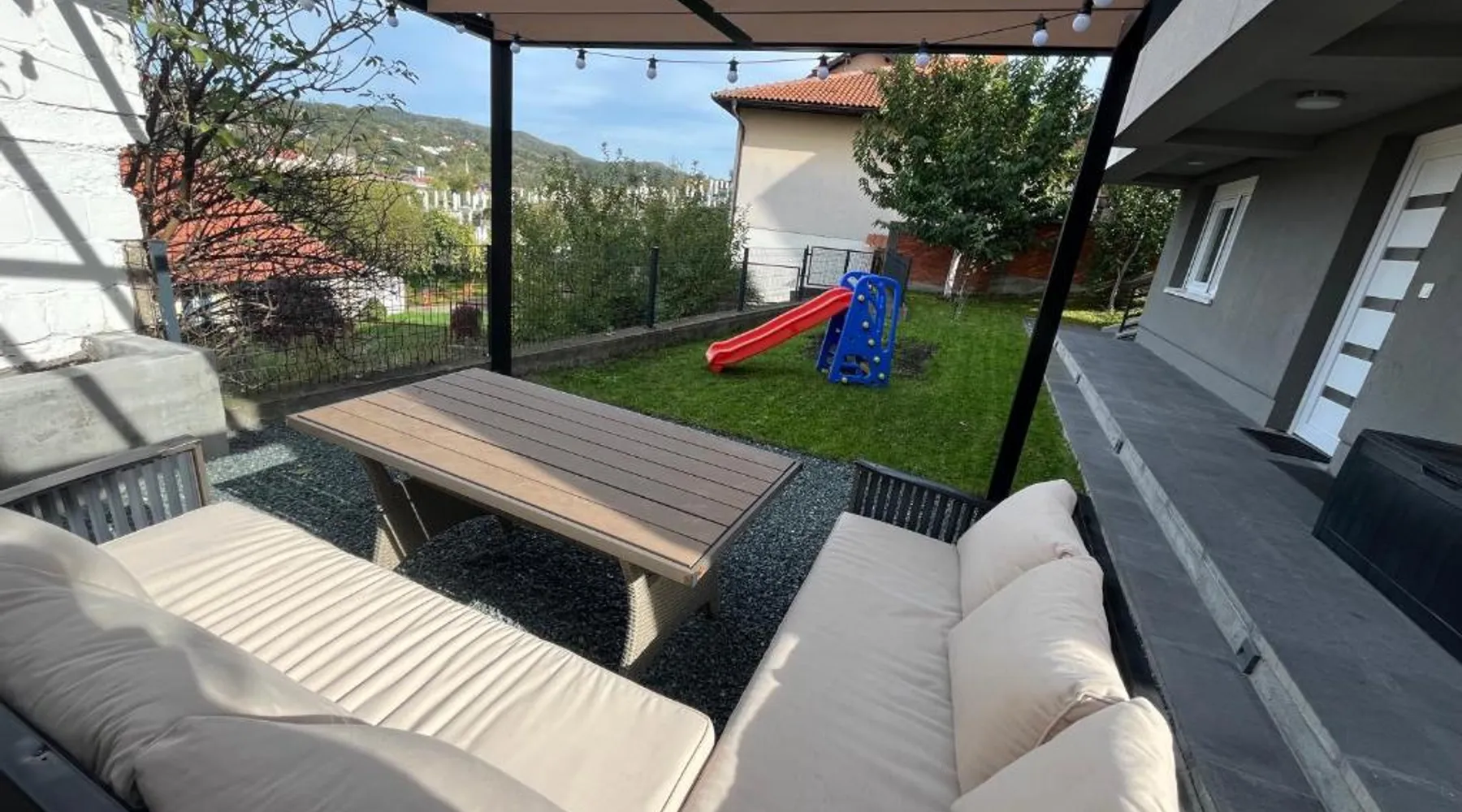 Spacious Accommodations: Apartment Mejdan in Tuzla offers a spacious layout with two bedrooms and two bathrooms. The living room provides ample space for relaxation. Outdoor Amenities: Guests can enjoy a garden and terrace with free WiFi. The property features an outdoor seating area, family rooms, and barbecue facilities. Modern Facilities: The apartment includes air-conditioning, a fully equipped kitchen, washing machine, and free on-site private parking. Additional amenities include a dining area, TV, and wardrobe. Prime Location: Located 7.5 mi from Tuzla International Airport, the apartment is a 13-minute walk from Pannonica Salt Lakes. Highly rated for room cleanliness, host, and kitchen. Boasting a private entrance, this air-conditioned apartment comes with 1 living room, 2 separate bedrooms and 2 bathrooms with a bath and a shower. In the well-fitted kitchen, guests will find a stovetop, a refrigerator, a dishwasher and kitchenware. The spacious apartment features a washing machine, a coffee machine, a seating area, a flat-screen TV with cable channels, as well as garden views. The unit has 4 beds.