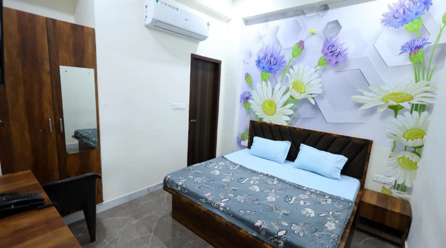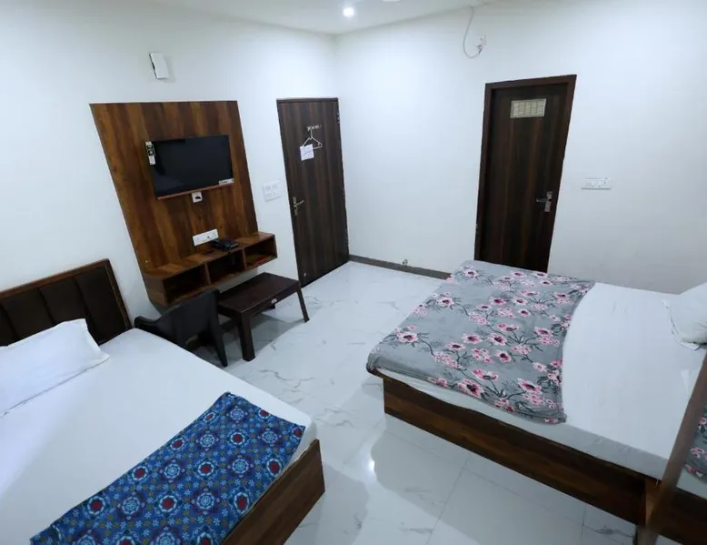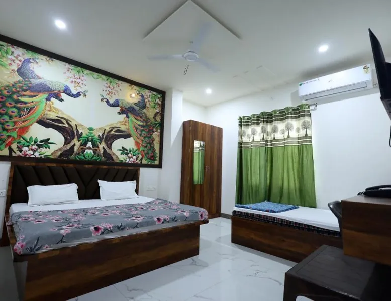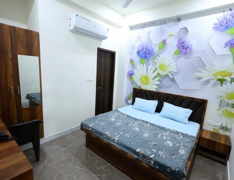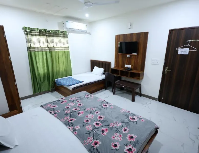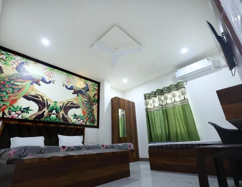 Comfortable Accommodations: Shri Girraj Residency in Mathura offers family rooms with private bathrooms, air-conditioning, and balconies. Each room includes a bathrobe, free toiletries, and a shower. Essential Facilities: Guests enjoy free WiFi, a terrace, and a elevator. Additional amenities include a coffee shop, bicycle parking, and free on-site private parking. Dining Options: A continental and vegetarian breakfast is available in-room. Room service and breakfast in the room enhance the stay experience. Convenient Location: Located 36 mi from Agra Airport, the guest house is near attractions such as Mathura Railway Station (2.5 mi) and Wildlife SOS (25 mi). Free toiletries and a shower ensure comfort. Guest Satisfaction: Highly rated for its convenient location, attentive staff, and room cleanliness. Featuring free toiletries and bathrobes, this single room includes a private bathroom with a bath and a shower. Boasting a terrace, this single room also features a tea and coffee maker, a wardrobe and a flat-screen TV. The unit has 1 bed.