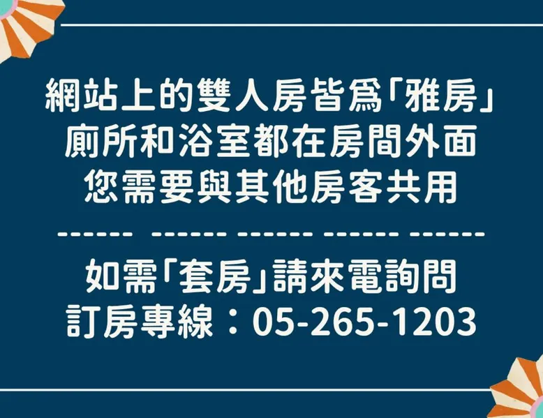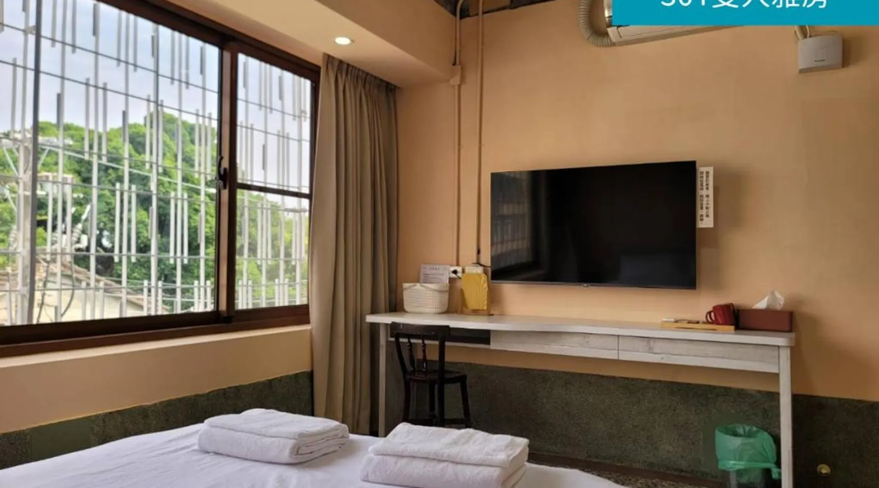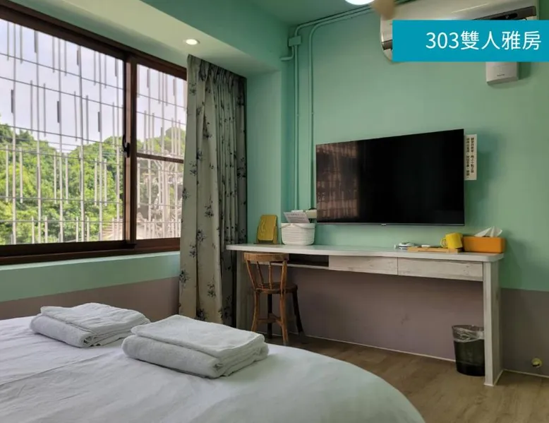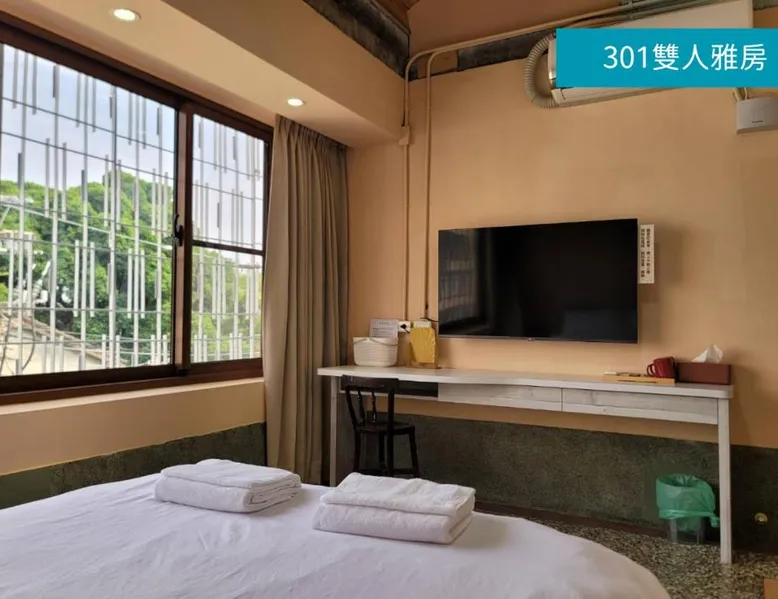 Comfortable Accommodations: Romance Guest House in Dalin offers recently renovated family rooms with private bathrooms. Each room features air-conditioning, a shower, slippers, and a TV. Guests enjoy city views and a relaxing environment. Essential Facilities: The homestay provides free WiFi and complimentary bicycles. Additional amenities include a lounge, shared kitchen, outdoor seating area, bicycle parking, tour desk, and luggage storage. Local Attractions: Located 12 mi from Chiayi Airport, the property is near Nami Movement Leisure Campus (3.7 mi), National Radio Museum (4.3 mi), and Honey Museum (9.3 mi). Hiking trails are available in the surrounding area. Guest Satisfaction: Highly rated for room comfort, convenient location, and excellent public transport options. The double room offers air conditioning, a wardrobe, as well as a shared bathroom boasting a shower and a hairdryer. This double room features heating, a flat-screen TV and city views. The unit has 1 bed.