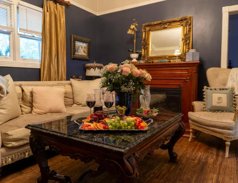 Elegant Accommodations: Inn at Rose Hall in Eureka Springs offers family rooms with private bathrooms, air-conditioning, and balconies. Each room includes a dining area, refrigerator, and free toiletries. Relaxing Facilities: Guests can enjoy a sun terrace, garden, and outdoor fireplace. The property provides free WiFi, a lounge, and a hot tub. Additional amenities include a shared kitchen, outdoor seating, and picnic area. Delicious Breakfast: A highly rated breakfast is served in-room, featuring fresh ingredients and a variety of options. Private check-in and check-out services ensure a comfortable stay. Local Attractions: Located less than 0.6 mi from Eureka Springs Historic District and 1.9 mi from The Great Passion Play, the inn is also close to Onyx Cave Park (6.8 mi). Boone County Airport is 40 mi away. The unit has 1 bed.