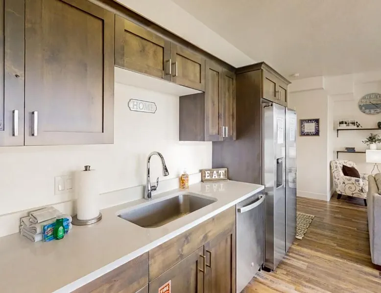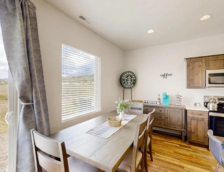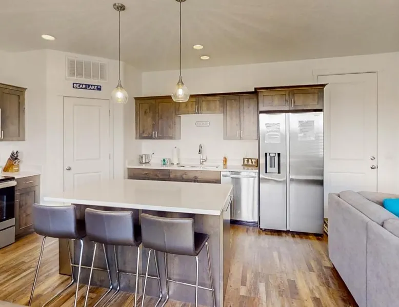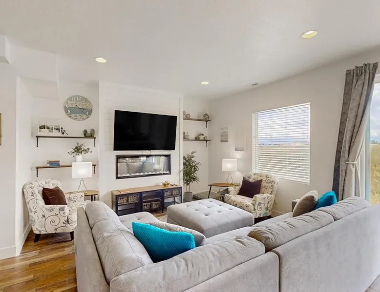 Spacious Accommodations: Garden City Glee in Garden City offers a spacious holiday home with three bedrooms and two bathrooms. The living room features a sofa bed and a dining area, ensuring comfort for all guests. Modern Amenities: The property includes air-conditioning, streaming services, a washing machine, and a fully equipped kitchen with a dishwasher and microwave. Additional amenities include a fireplace, barbecue, and a work desk. Relaxing Facilities: Guests can enjoy spa facilities and a restaurant on-site. The property offers mountain and city views, providing a relaxing environment. Activities and Location: Skiing and cycling are available nearby. Ogden-Hinckley Airport is 87 mi away, offering convenient travel options. This holiday home's special feature is the fireplace. Boasting a private entrance, this air-conditioned holiday home includes 1 living room, 3 separate bedrooms and 2 bathrooms with a walk-in shower and a bath. Guests will find a stovetop, a refrigerator, a dishwasher and kitchenware in the well-fitted kitchen. The holiday home also features a barbecue. The spacious holiday home offers a TV with streaming services, a washing machine, a tea and coffee maker, a seating area as well as mountain views. The unit has 8 beds and 1 futon.
