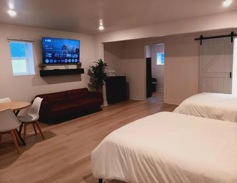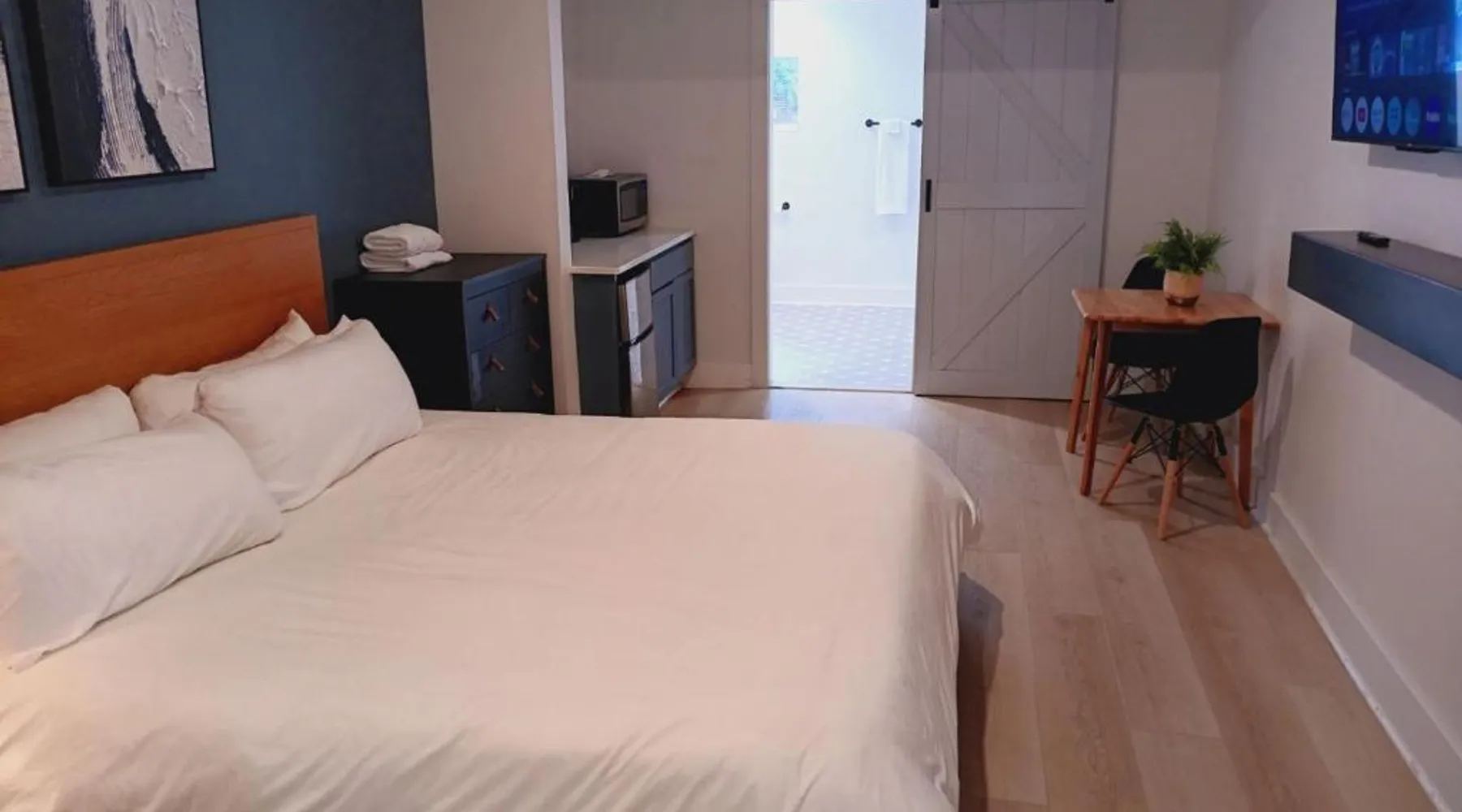 Comfortable Accommodations: Five10 Orange Street Hotel in Hot Springs offers comfortable rooms with air-conditioning, private bathrooms, and free WiFi. Guests enjoy amenities such as a kitchenette, refrigerator, microwave, and TV. Convenient Facilities: The hotel provides private check-in and check-out services, full-day security, and free on-site parking. Additional features include a hairdryer, walk-in shower, and sofa. Prime Location: Located 2.5 mi from Hot Springs Memorial Field and Magic Springs Crystal Falls, the hotel is 16 mi from Ponce De Leon Golf Course. Hiking and cycling activities are available nearby. Guest Satisfaction: Highly rated for bed comfort, room cleanliness, and convenient location. Featuring a private entrance, this air-conditioned suite consists of a kitchenette, 1 bedroom and 1 bathroom with a walk-in shower and a hairdryer. The suite's kitchenette, which features a refrigerator and a microwave, is available for cooking and storing food. This suite provides heating and a flat-screen TV. The unit offers 1 bed.