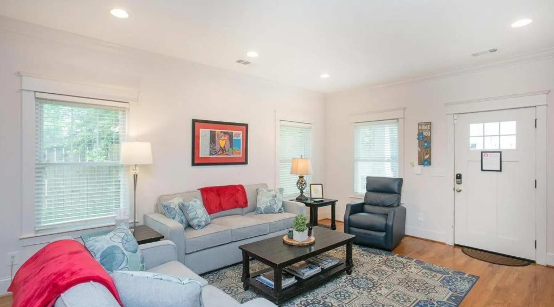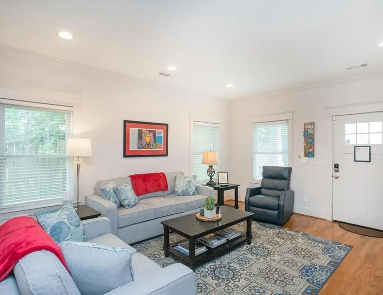 Spacious Accommodations: July Discount! Cottage Close to Downtown, Yard in Nashville offers a spacious holiday home with two bedrooms and two bathrooms. The living room provides ample space for relaxation. Modern Amenities: Guests enjoy free WiFi, air-conditioning, streaming services, and a washing machine. The fully equipped kitchen includes a refrigerator, microwave, dishwasher, and oven. Additional amenities include a patio, dining table, and outdoor furniture. Convenient Location: Located 9.9 mi from Nashville International Airport, the property is close to attractions such as Nissan Stadium (4.3 mi), Johnny Cash Museum (5 mi), and Ryman Auditorium (5 mi). Free on-site parking is available. Featuring free toiletries, this family room includes a private bathroom with a bath and a hairdryer. The well-equipped kitchen has a stovetop, a refrigerator, a dishwasher and kitchenware. The spacious air-conditioned family room features a TV with streaming services, a washing machine, a private entrance and a tea and coffee maker. The unit has 2 beds.