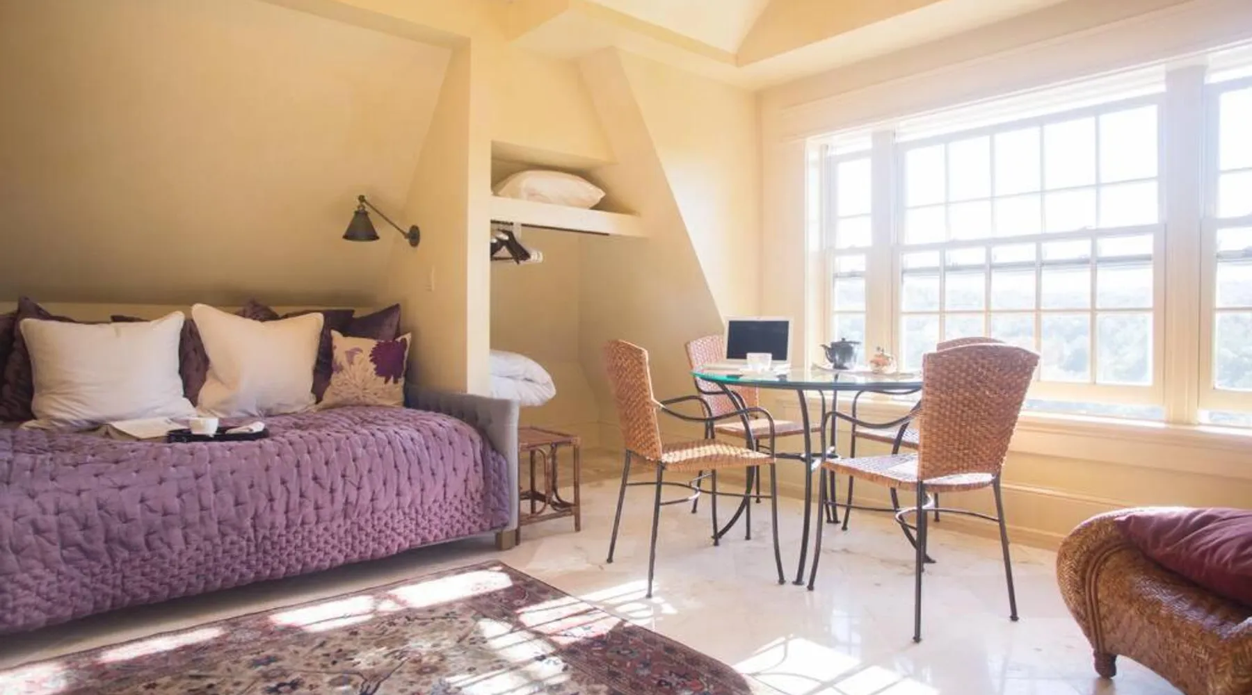 Elegant Accommodations: Adams Hill House Retreat in Newfane offers a bed and breakfast experience with a private beach area, swimming pool with a view, sun terrace, and lush garden. Guests enjoy free WiFi throughout the property. Comfortable Amenities: The retreat features private check-in and check-out services, an outdoor fireplace, concierge, ski equipment hire, outdoor seating, picnic area, family rooms, full-day security, bicycle parking, bike hire, luggage storage, and ski storage. Leisure Activities: Guests can participate in yoga classes, skiing, hiking, and cycling. The property is 54 mi from Rutland State Airport and near attractions such as Stratton Mountain (25 mi), Mount Snow Resort (8.7 mi), and Molly Stark State Park (14 mi). This suite's standout features are the spa bath and fireplace. This spacious suite includes 1 living room, 2 separate bedrooms and 2 bathrooms with a walk-in shower and free toiletries. The air-conditioned suite offers a flat-screen TV with streaming services, a washing machine, soundproof walls, a tea and coffee maker as well as garden views. The unit has 2 beds.