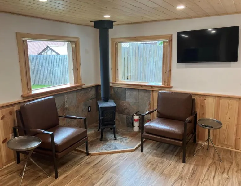 Comfortable Living: Two Lakes Guest house in Seward offers a cozy holiday home with one bedroom and a living room. Guests enjoy free WiFi, a fully equipped kitchen, and a private entrance. Modern Amenities: The property features a fireplace, streaming services, a work desk, and a dining area. Additional amenities include a coffee machine, microwave, and free toiletries. Convenient Location: Located 104 mi from Kenai Municipal Airport, the guest house provides easy access to boating activities. The quiet street offers a peaceful setting. Highly Rated: Guests appreciate the comfortable accommodations and excellent service, ensuring a pleasant stay. Guests will have a special experience as this holiday home provides a fireplace. This holiday home is consisted of of 1 living room, 1 separate bedroom and 1 bathroom with a walk-in shower and free toiletries. In the kitchen, guests will find a stovetop, a refrigerator, kitchenware and an oven. The holiday home offers a flat-screen TV with streaming services, a private entrance, a coffee machine, a seating area as well as a quiet street view. The unit offers 2 beds.