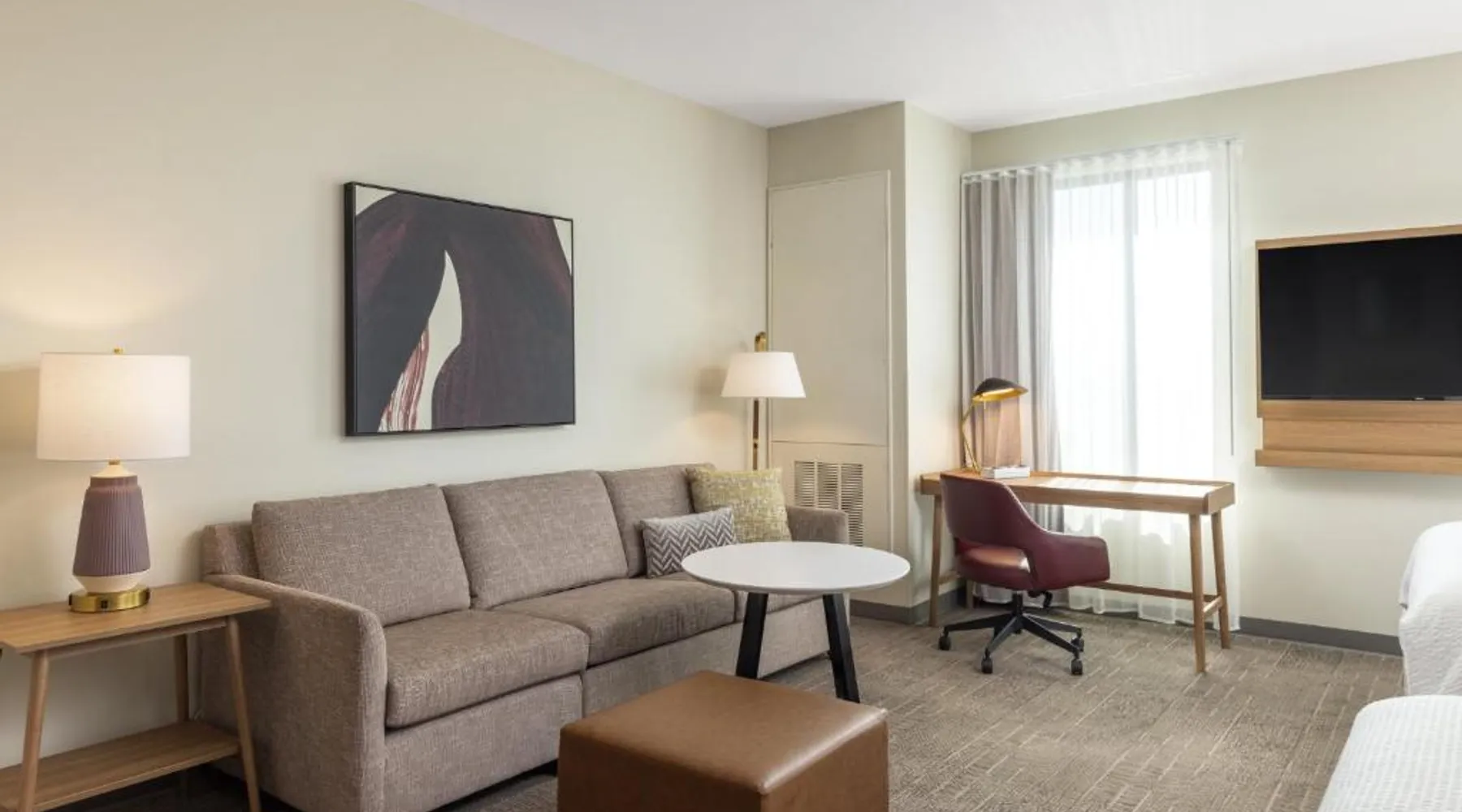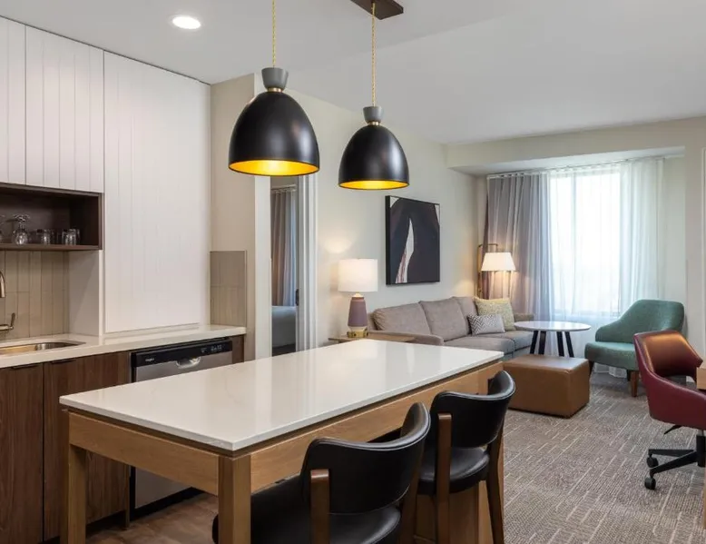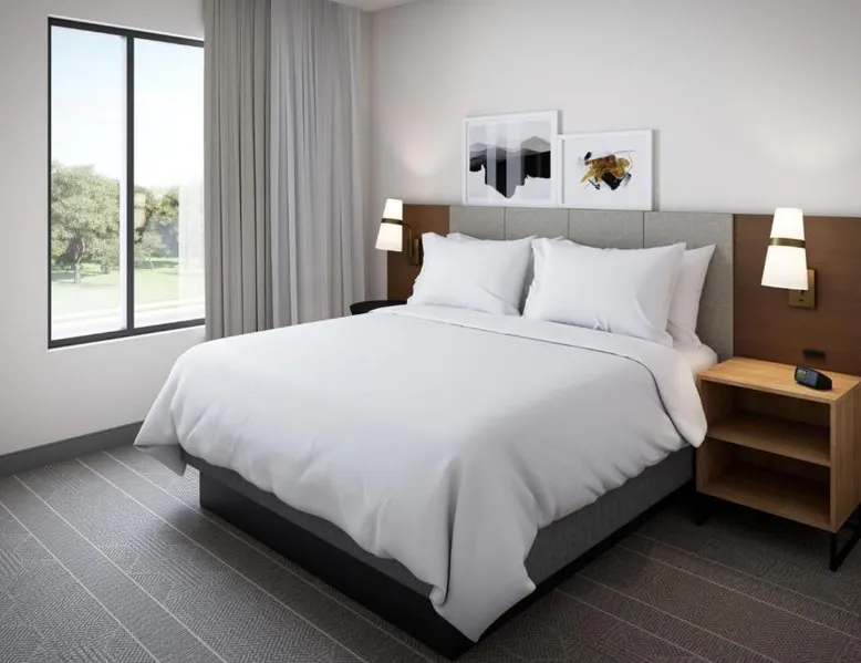 Comfortable Accommodations: Staybridge Suites Eastvale - Norco by IHG in Eastvale offers family rooms with modern amenities. Each room includes free WiFi, air-conditioning, and a workspace. Exceptional Facilities: Guests can enjoy a fitness center, sun terrace, year-round outdoor swimming pool, and a hot tub. Additional facilities include a lounge, outdoor fireplace, and a pool bar. Dining Experience: The family-friendly restaurant serves American, Mexican, pizza, and seafood cuisines. Breakfast is provided by the property, and meals accommodate halal, kosher, vegetarian, vegan, gluten-free, and dairy-free diets. Convenient Location: Located 9.9 mi from LA/Ontario International Airport, the hotel is near attractions such as Anaheim Convention Center (30 mi) and Angel Stadium of Anaheim (29 mi). Free on-site private parking is available. The unit has 2 beds.