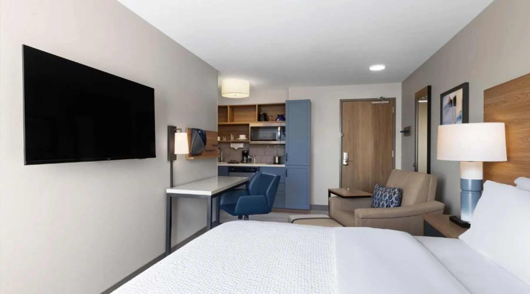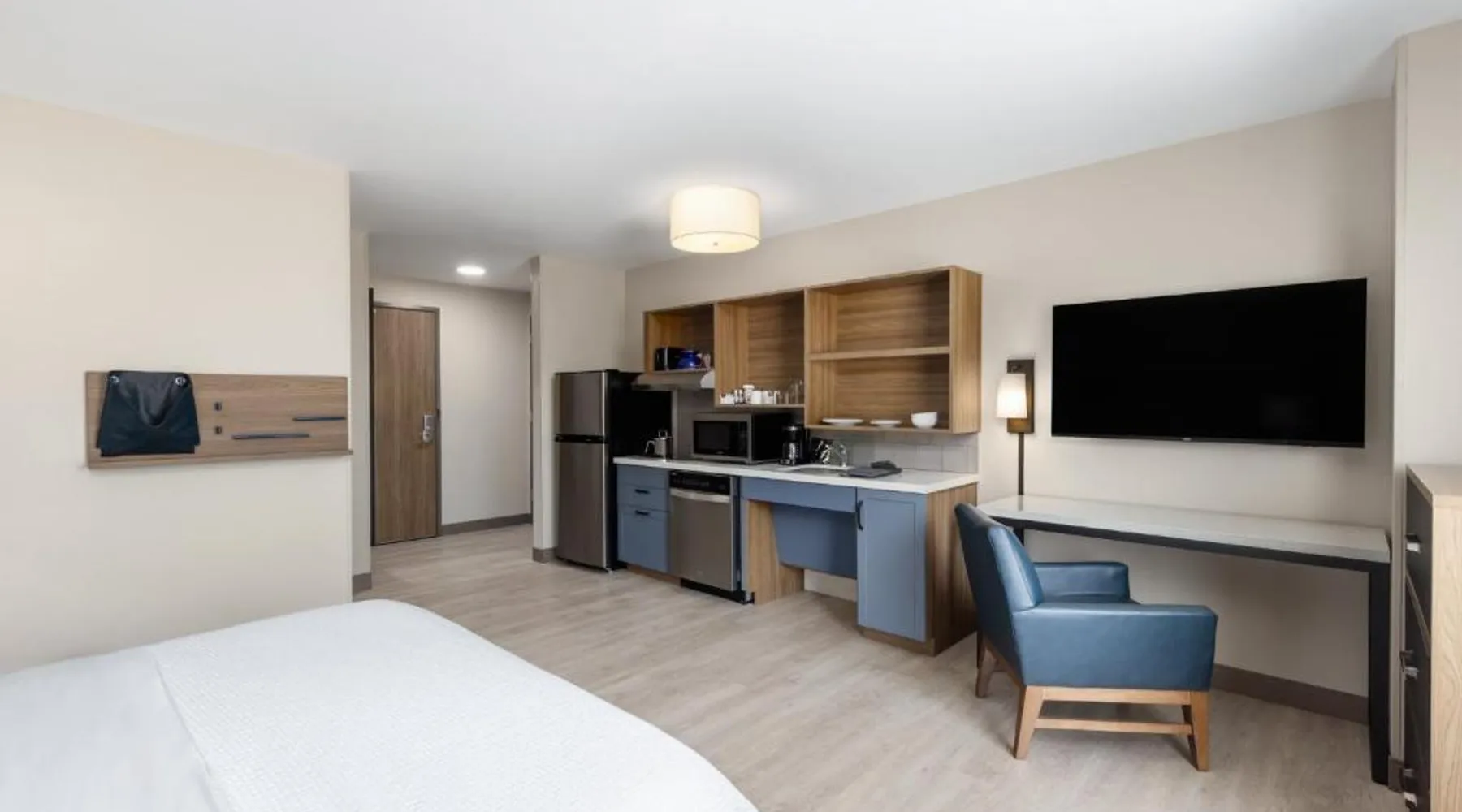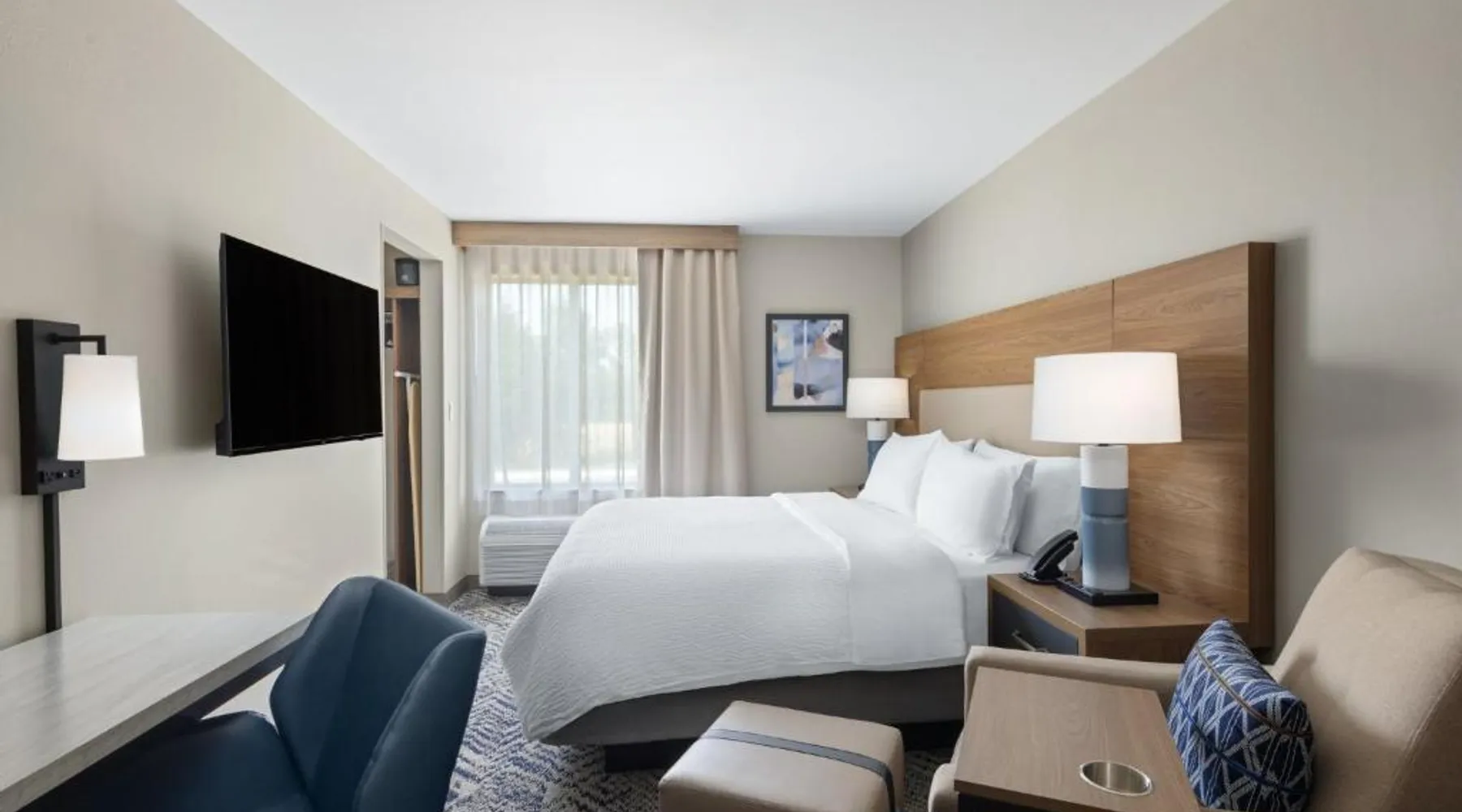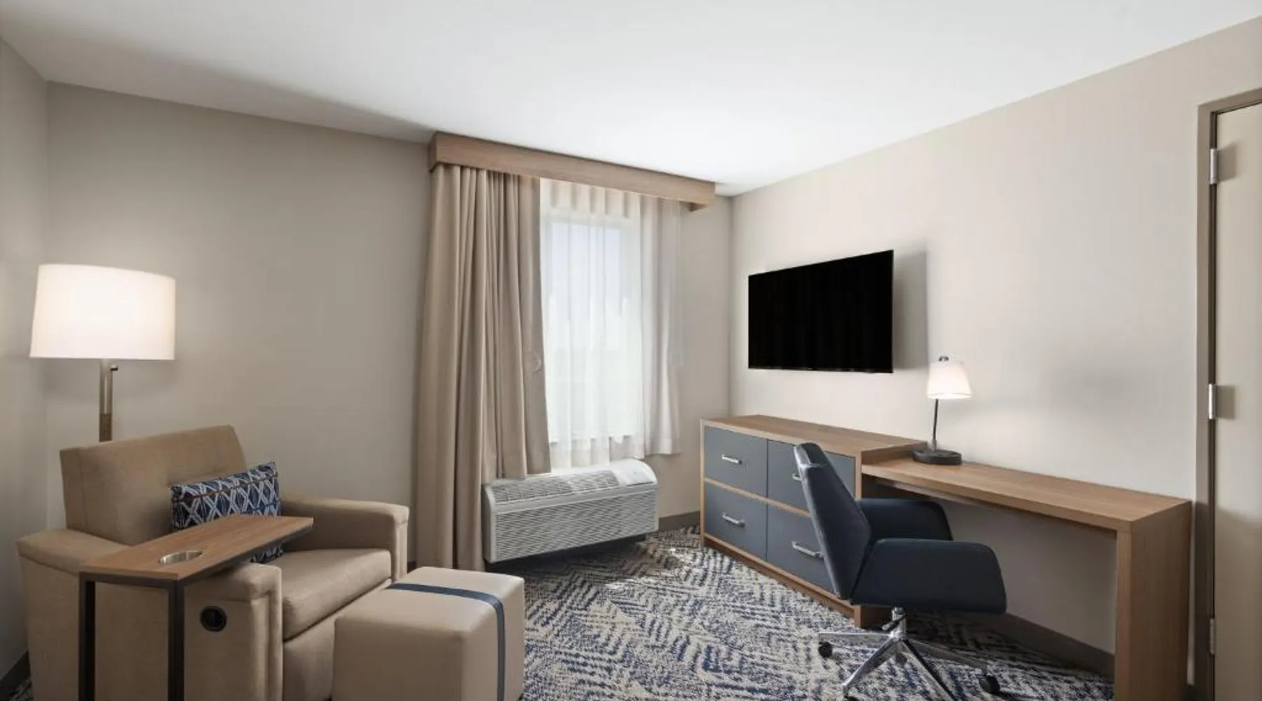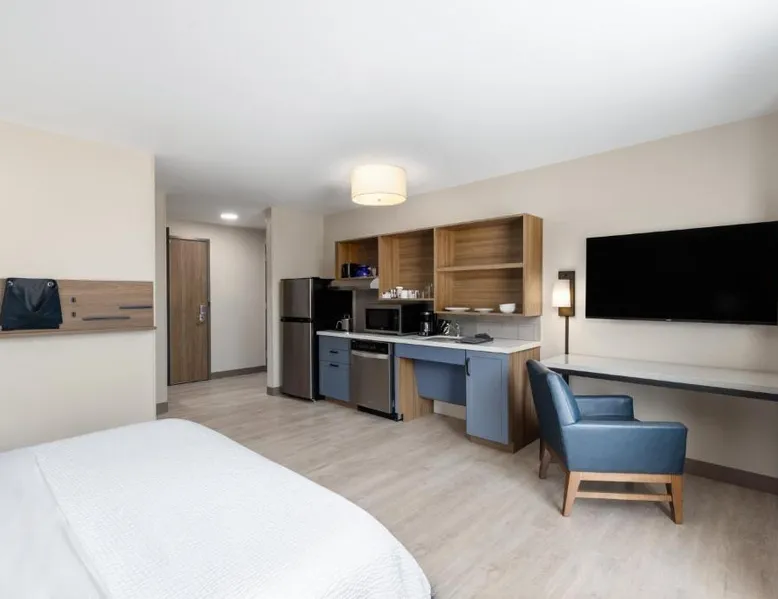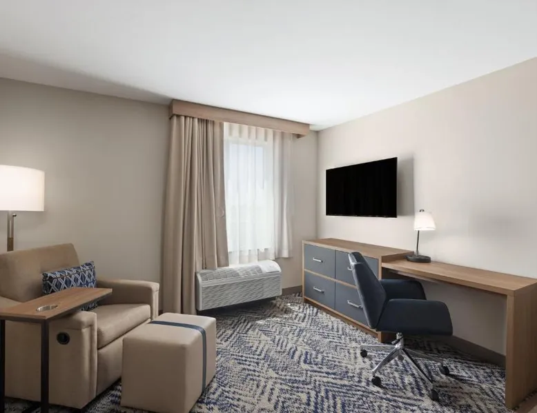 Comfortable Accommodations: Candlewood Suites McPherson by IHG in McPherson offers clean, quiet rooms with air-conditioning, private bathrooms, and fully equipped kitchens. Each room includes a work desk, sofa bed, and free WiFi. Modern Facilities: Guests can enjoy a fitness center, lounge, and outdoor seating area. Additional amenities include a minimarket, electric vehicle charging station, business area, laundry service, and free on-site parking. Convenient Location: Located 29 mi from Salina Regional Airport, the hotel provides easy access to local attractions. Highly rated for room cleanliness, quietness of the area, and quietness of the room. The suite features air conditioning, a tea and coffee maker, as well as a private bathroom boasting a bath or a shower and a hairdryer. The well-fitted kitchen has a refrigerator, kitchenware and a microwave. The suite is furnished with a desk and a seating area. The unit has 1 bed.