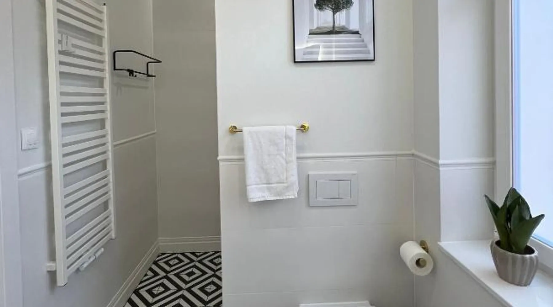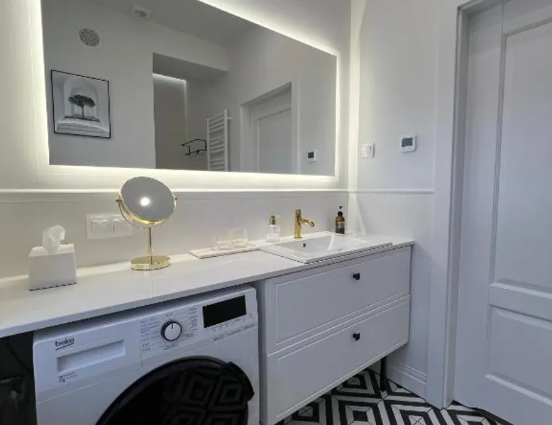 Comfortable Living: Carola7 in Szczawno-Zdrój offers a one-bedroom apartment with a living room. The property features a kitchenette, washing machine, and free WiFi. Modern Amenities: Guests enjoy a dining area, sofa bed, and work desk. Additional amenities include a tea and coffee maker, dishwasher, and free toiletries. Convenient Location: Located 46 mi from Copernicus Wrocław Airport, the apartment is near attractions such as Książ Castle (5.6 mi) and Świdnica Cathedral (15 mi). Free on-site parking is available. Guest Satisfaction: Highly rated for room cleanliness and convenient location, Carola7 ensures a pleasant stay for all visitors. This apartment is consisted of of 1 living room, 1 separate bedroom and 1 bathroom with a walk-in shower and free toiletries. Meals can be prepared in the kitchenette, which comes with a stovetop, a refrigerator, a dishwasher and kitchenware. The apartment offers a flat-screen TV, a washing machine, a tea and coffee maker, a dining area as well as mountain views. The unit offers 2 beds.