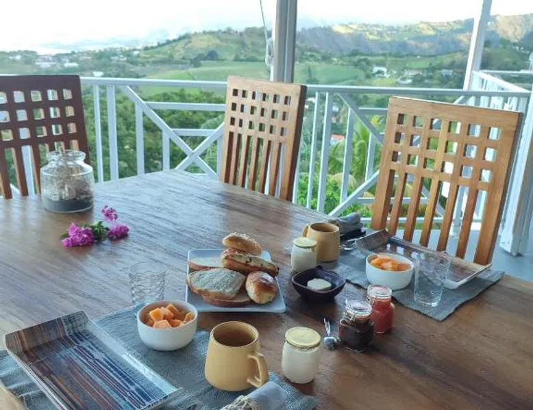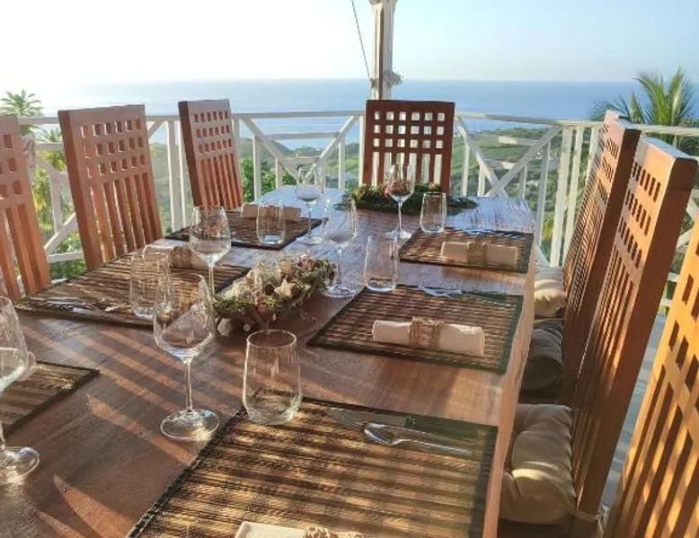 Elegant Accommodations: VillAnolis Martinique in Le-Carbet offers a recently renovated guest house with a garden, terrace, restaurant, and a year-round outdoor swimming pool. Free WiFi is available throughout the property. Comfortable Amenities: Each room features air-conditioning, a private bathroom with a walk-in shower, tea and coffee maker, hairdryer, free toiletries, and parquet floors. Additional amenities include sea and mountain views, an outdoor dining area, refrigerator, and electric kettle. Dining Experience: Guests enjoy a continental breakfast with juice, fresh pastries, pancakes, and fruits. The on-site restaurant serves dinner, providing a variety of meal options. Activities and Location: Located 24 mi from Martinique Aime Cesaire International Airport and 1.9 mi from Plage du Coin, the property offers fishing, canoeing, hiking, diving, and snorkeling. Highly rated for its scenic location, breakfast, and attentive host. Boasting a private entrance, this air-conditioned bungalow includes 1 bedroom and 1 bathroom with a walk-in shower and a hairdryer. The bungalow has a tea and coffee maker, an outdoor dining area and sea views. The unit has 1 bed.
