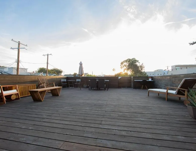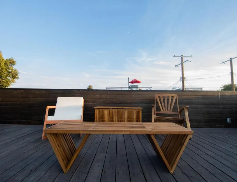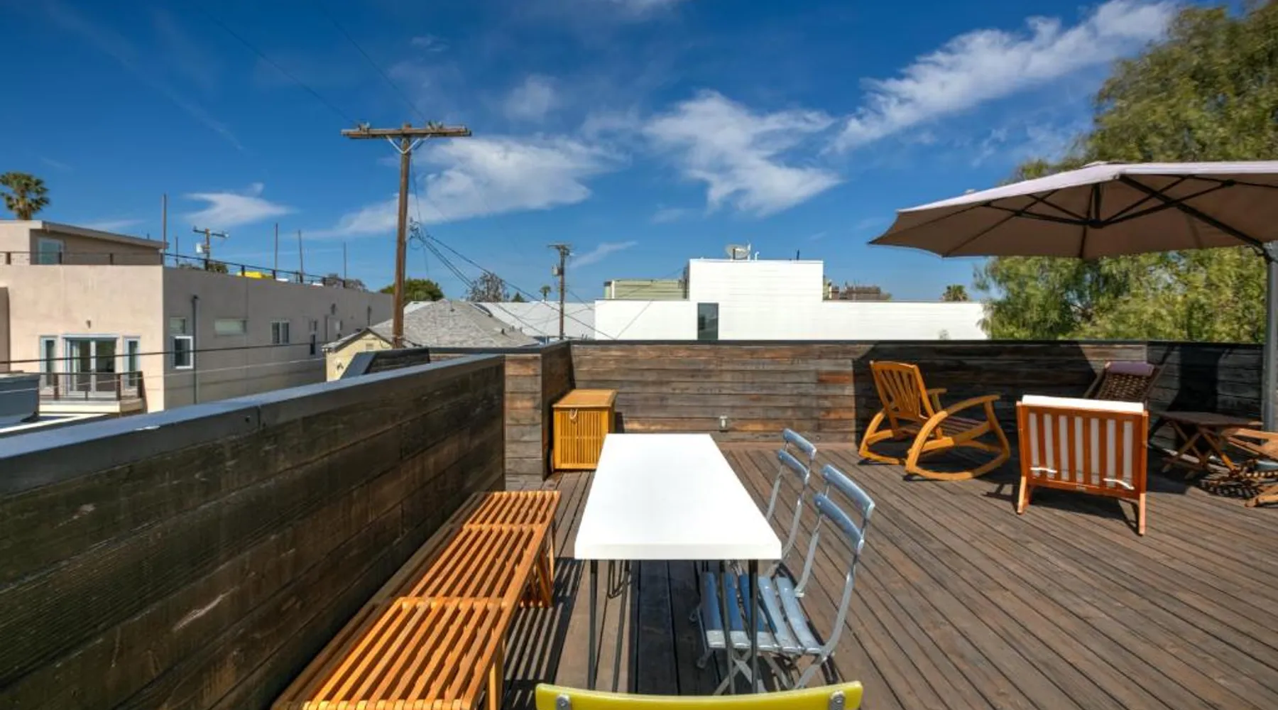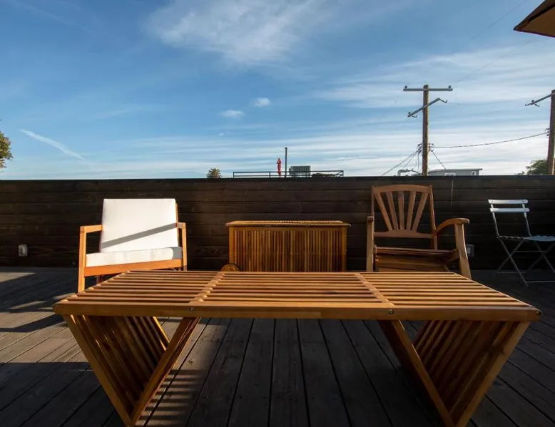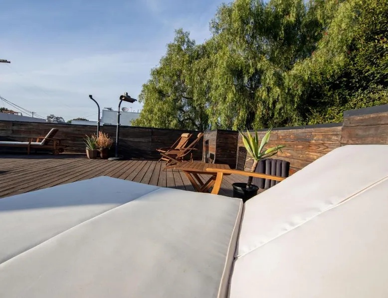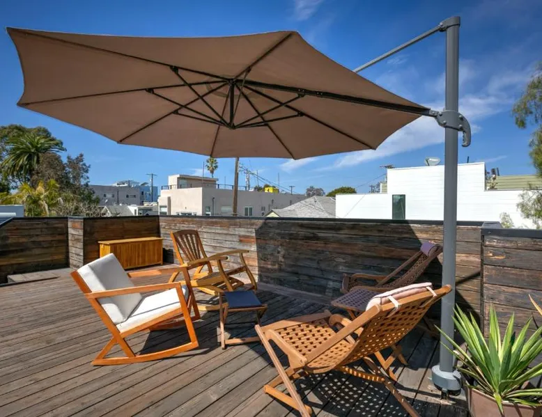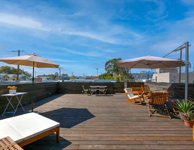Comfortable Accommodations: Venice Beach Three Bedroom Rooftop House with Parking in Venice offers a spacious apartment with two bedrooms and two bathrooms. The living room features a work desk and parquet floors, ensuring a relaxing stay. Modern Amenities: Guests enjoy a sauna, terrace, and garden. The apartment includes a kitchenette with a refrigerator, dishwasher, and stovetop. Free WiFi is available throughout the property. Convenient Location: Located 5.6 mi from Los Angeles International Airport, the apartment is a 6-minute walk from Venice Beach and less than 0.6 mi from Venice Beach Boardwalk. Nearby attractions include Pacific Park and Santa Monica Pier, each 2.1 mi away. Featuring a private entrance, this holiday home consists of 2 living rooms, 2 separate bedrooms and 2 bathrooms with a shower and a hairdryer. Guests will find a stovetop, a refrigerator, a dishwasher and kitchenware in the kitchenette. The holiday home also offers a barbecue. Boasting a terrace with garden views, this holiday home also provides a tea and coffee maker and a flat-screen TV with streaming services. The unit offers 4 beds.