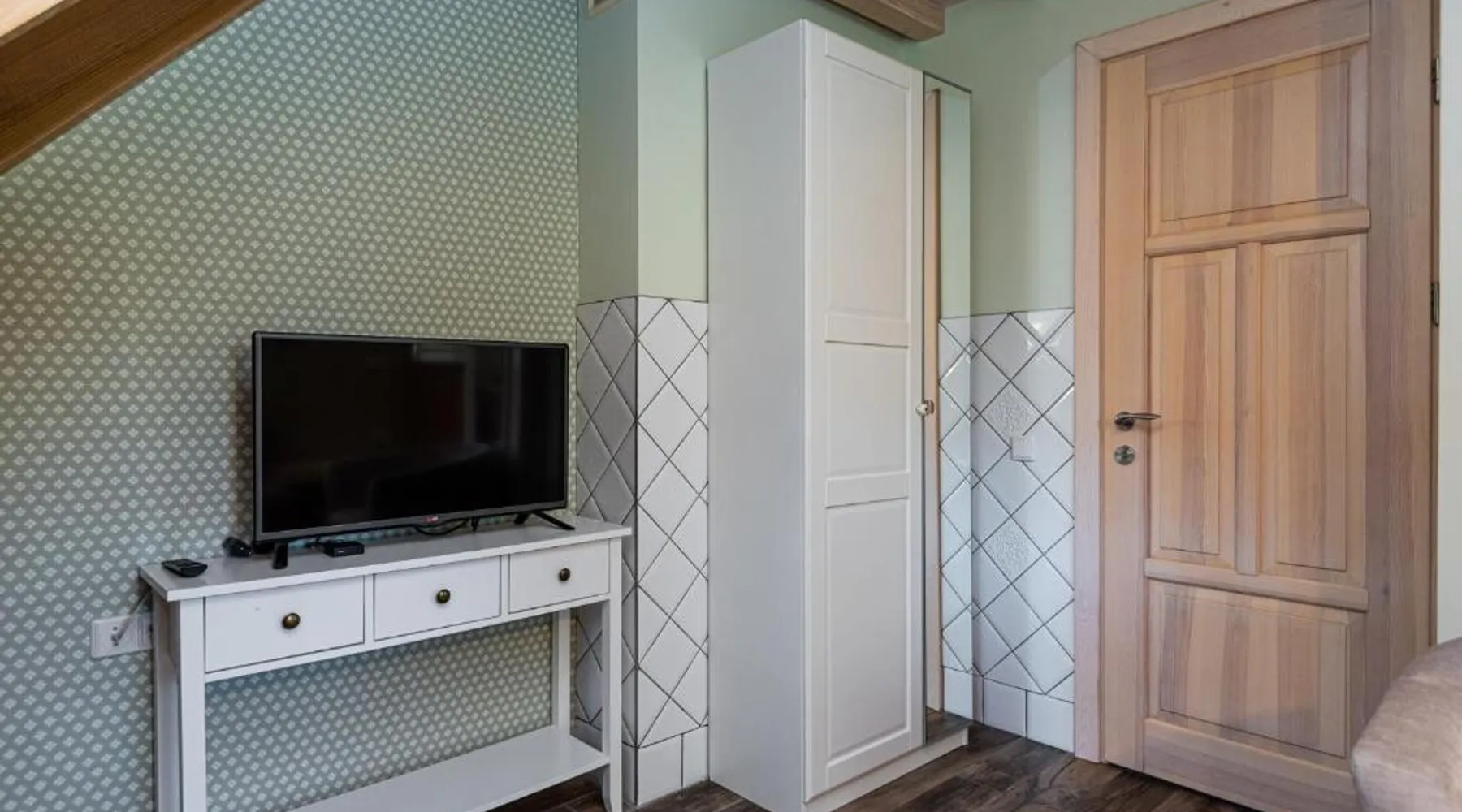 Comfortable Living: Family apartament in Pervalka offers a one-bedroom apartment with a living room and a bathroom. The kitchenette includes a fully equipped kitchen, while air-conditioning ensures a pleasant environment. Outdoor Spaces: Guests can relax in the garden or on the terrace, enjoying free WiFi throughout the property. The terrace provides a perfect spot for outdoor dining and leisure. Convenient Amenities: The apartment features a washing machine, TV, and free on-site private parking. Reception staff speak English, Lithuanian, and Russian, catering to international visitors. Local Attractions: Pervalka Beach is 1.9 mi away, while Palanga International Airport is 45 mi from the property. Nearby attractions include Amber Gallery in Nida (9.9 mi) and Thomas Mann Memorial Museum (9.9 mi). Boasting 1 bedroom and 1 bathroom, this apartment has a living room and terrace where you can relax. The apartment's kitchen is available for cooking and storing food. This apartment has air conditioning, a washing machine and a flat-screen TV. The unit offers 2 beds.
