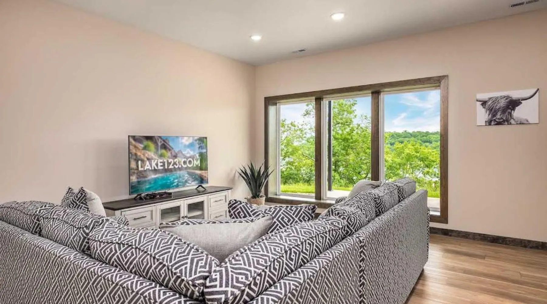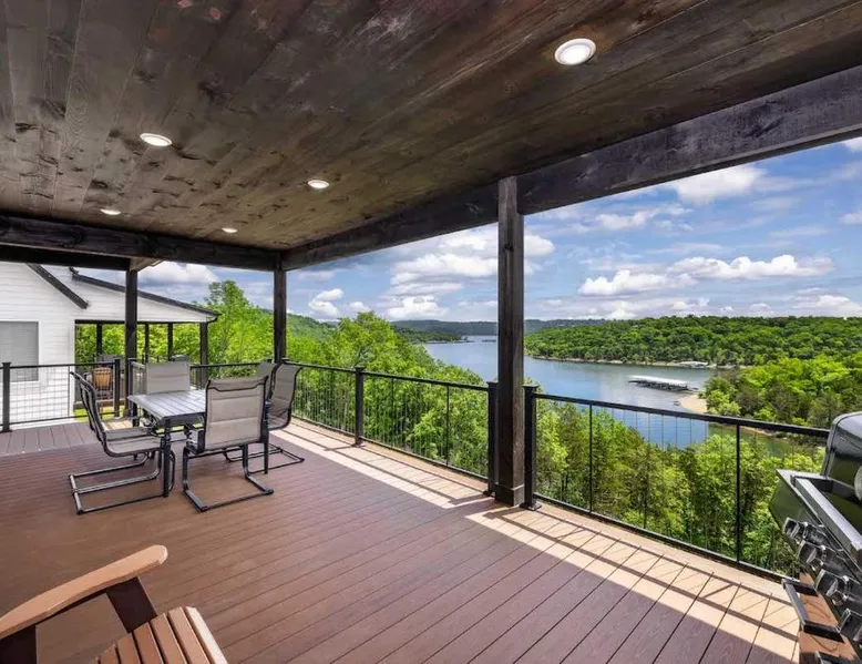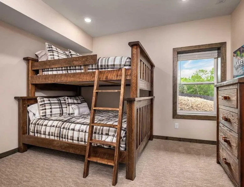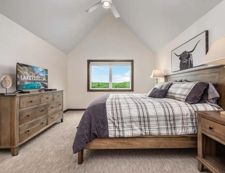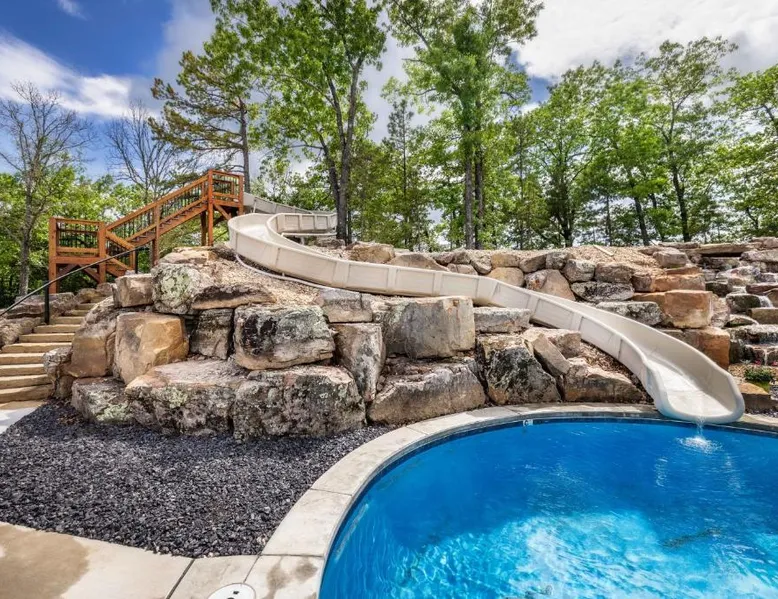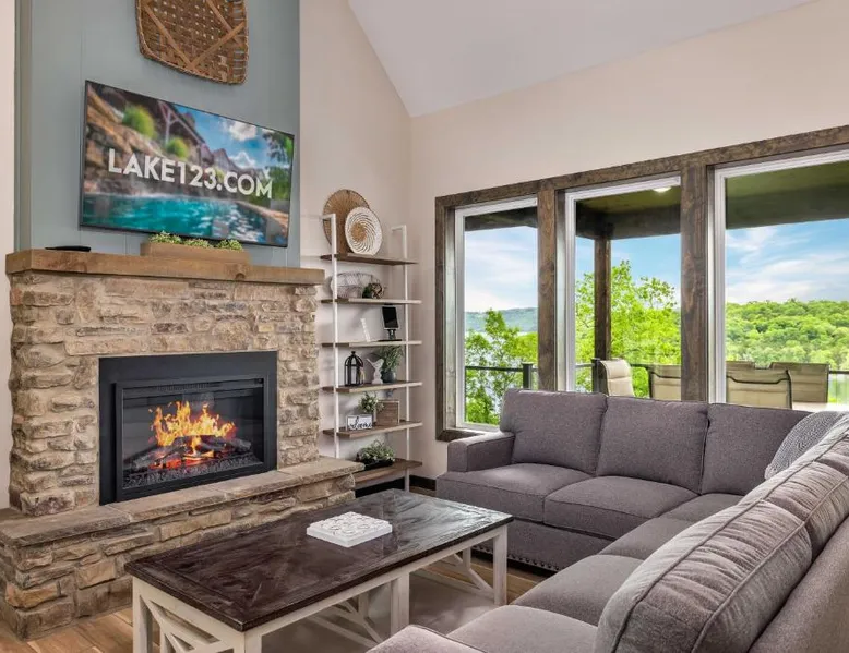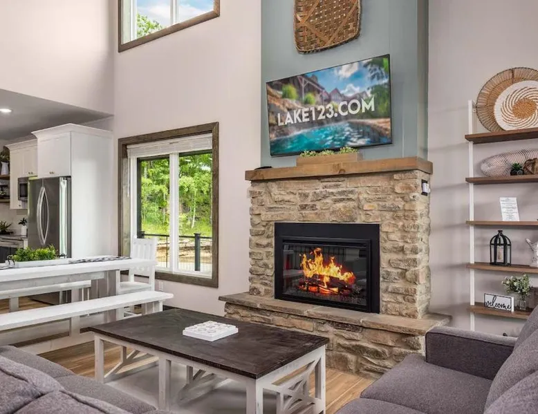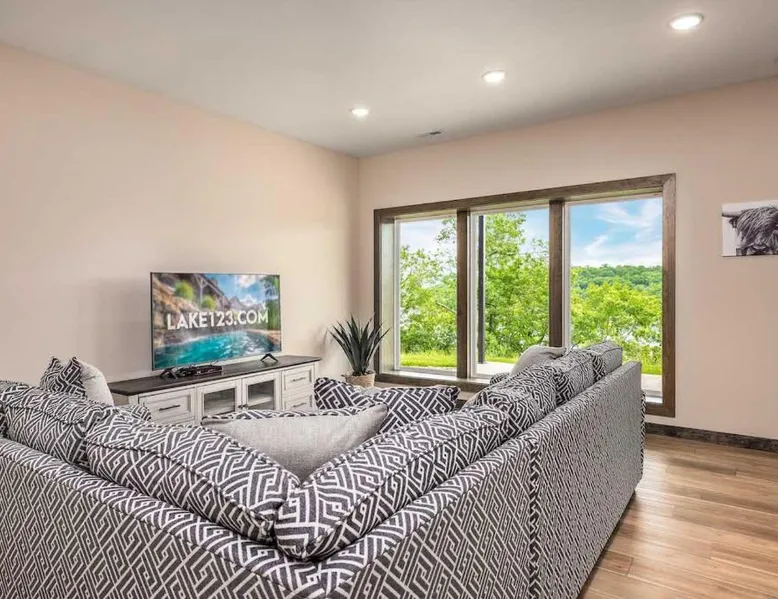 Spacious Accommodations: BRAND NEW! Lakefront Cabin in Kimberling City offers a spacious holiday home with five bedrooms and five bathrooms. The property features a living room, dining area, and a fully equipped kitchen. Outdoor Amenities: Guests can enjoy a year-round outdoor swimming pool, hot tub, waterpark, and fitness room. Additional facilities include a games room, children’s playground, and a terrace with lake views. Leisure Activities: The property provides free mini golf, pickleball, and a variety of indoor and outdoor games. Air-conditioning, a fireplace, and a barbecue area enhance the relaxing atmosphere. Local Attractions: Silver Dollar City is 12 mi away, Mickey Gilley Theater and Titanic Museum are 16 mi distant, and Table Rock State Park lies 19 mi from the property. The fireplace is the standout feature of this holiday home. Guests will find a stovetop, a refrigerator, a dishwasher and kitchenware in the well-fitted kitchen. The holiday home also comes with a barbecue. The spacious air-conditioned holiday home features a TV with cable channels, a washing machine, a tea and coffee maker, a dining area as well as lake views. The unit has 6 beds.