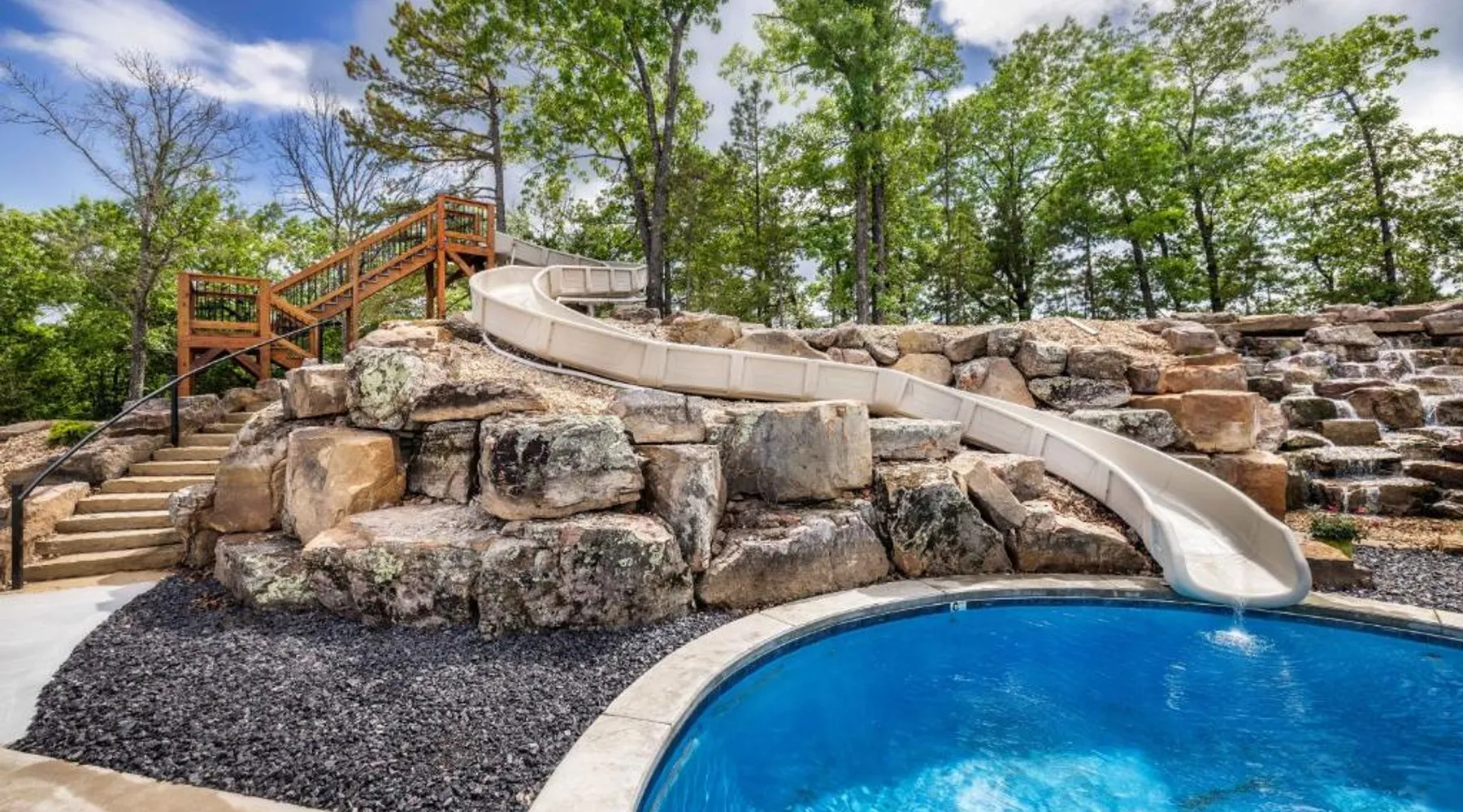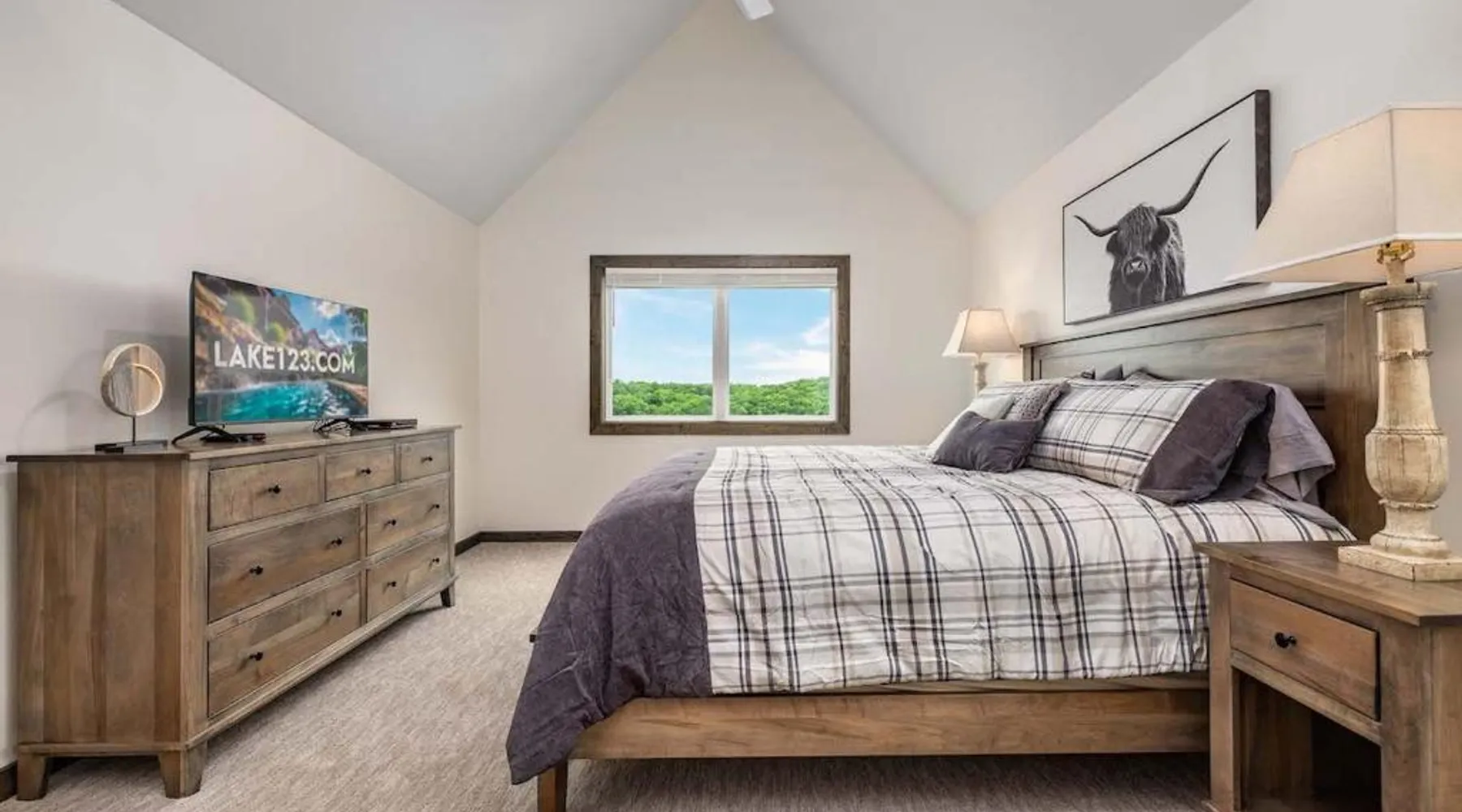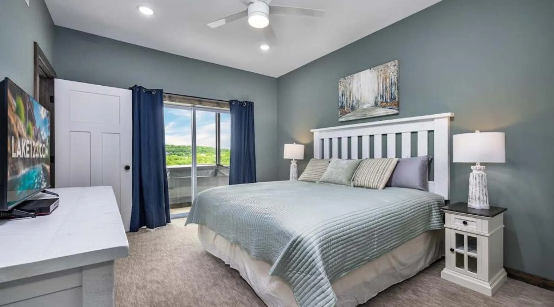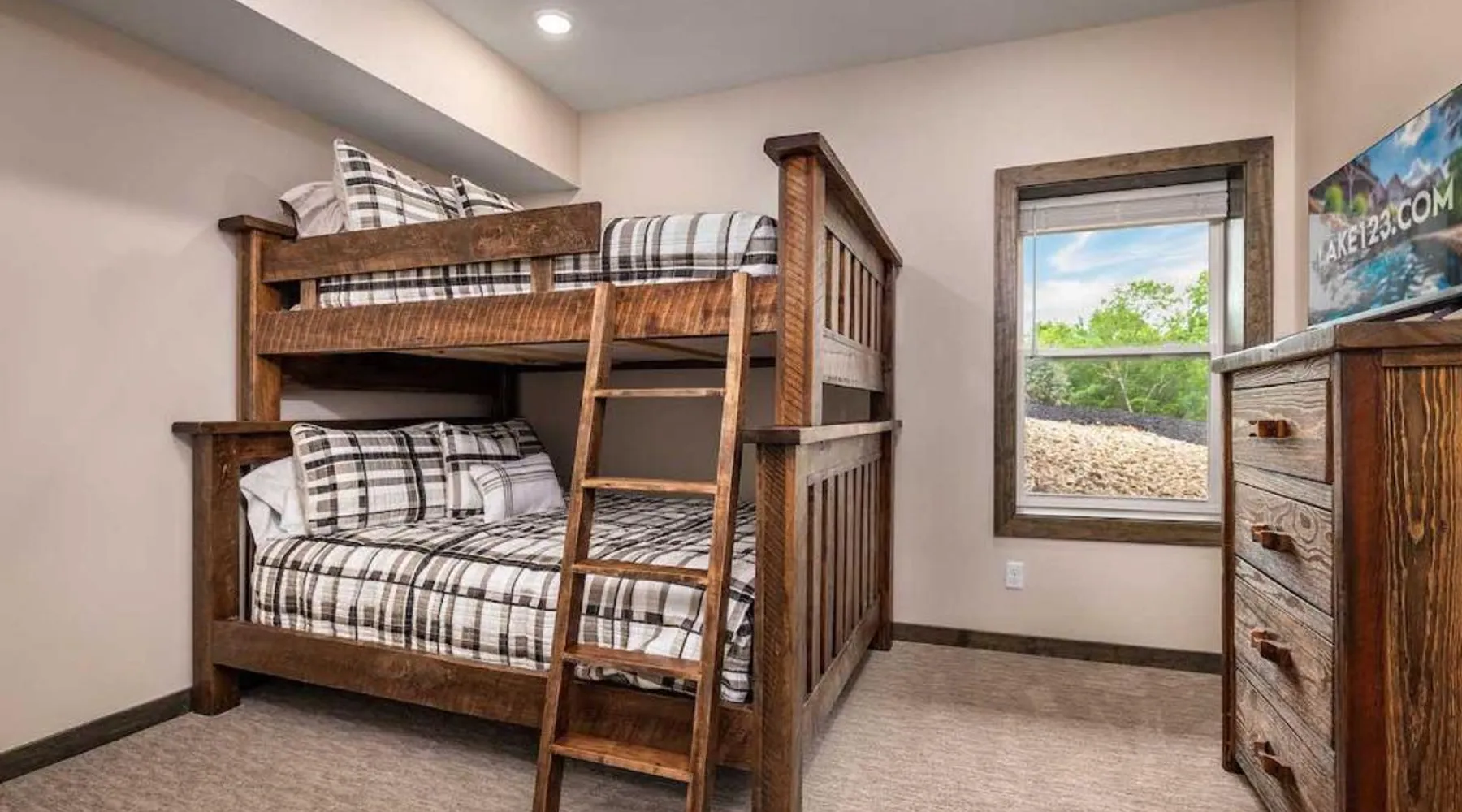 Spacious Accommodations: BRAND NEW! Lakefront Cabin in Kimberling City offers a spacious holiday home with five bedrooms and five bathrooms. The property features a living room, dining area, and a fully equipped kitchen. Outdoor Amenities: Guests can enjoy a year-round outdoor swimming pool, hot tub, waterpark, and fitness room. Additional facilities include a games room, children’s playground, and a terrace with lake views. Leisure Activities: The property provides free mini golf, pickleball, and a variety of indoor and outdoor games. Air-conditioning, a fireplace, and a barbecue area enhance the relaxing atmosphere. Local Attractions: Silver Dollar City is 12 mi away, Mickey Gilley Theater and Titanic Museum are 16 mi distant, and Table Rock State Park lies 19 mi from the property. The fireplace is the standout feature of this holiday home. Guests will find a stovetop, a refrigerator, a dishwasher and kitchenware in the well-fitted kitchen. The holiday home also comes with a barbecue. The spacious air-conditioned holiday home features a TV with cable channels, a washing machine, a tea and coffee maker, a dining area as well as lake views. The unit has 6 beds.