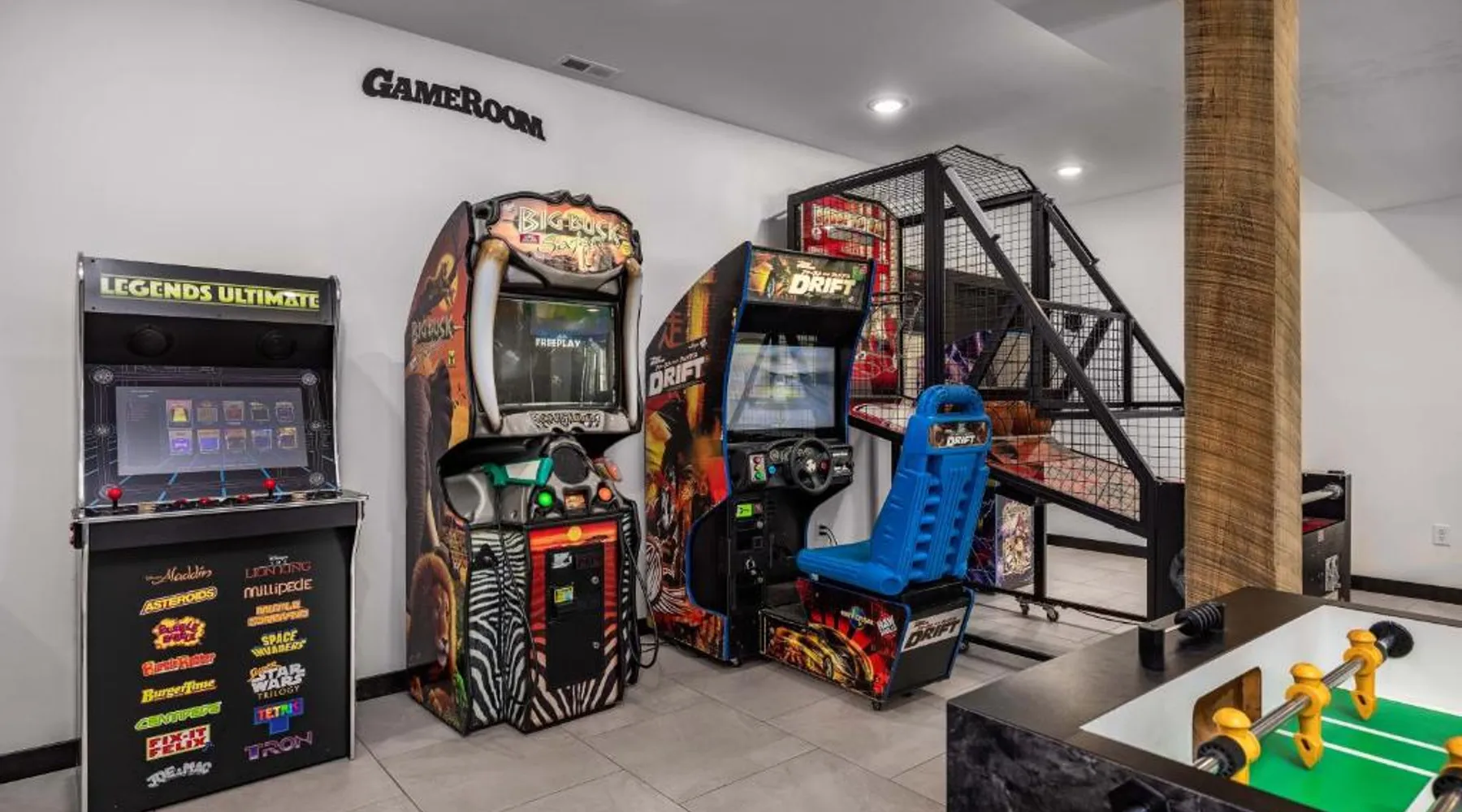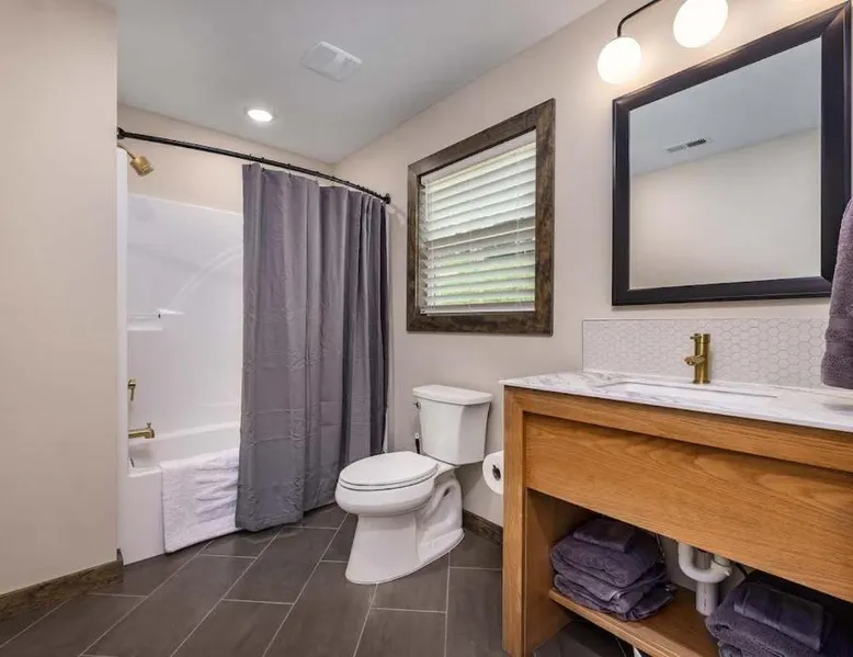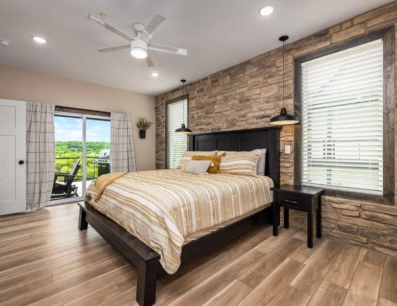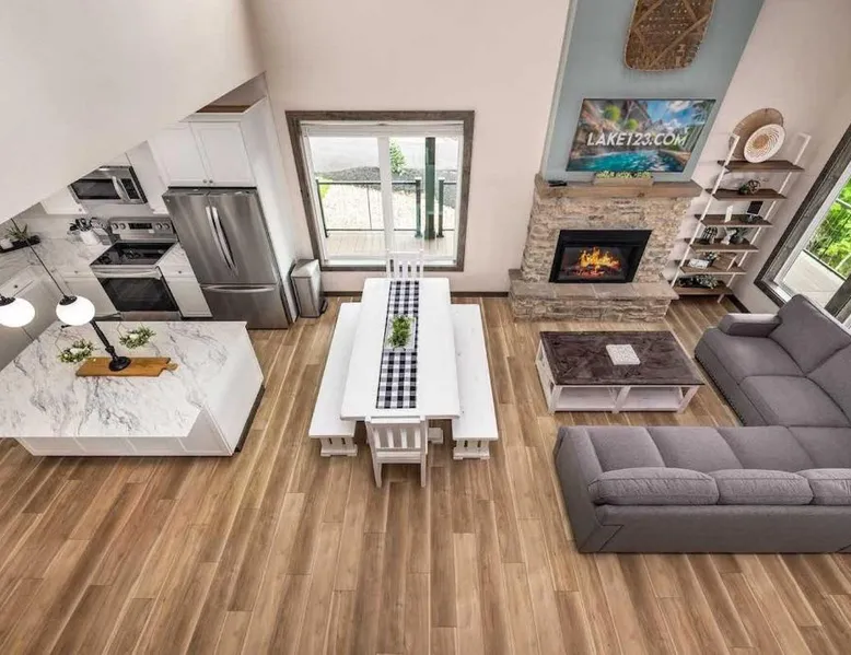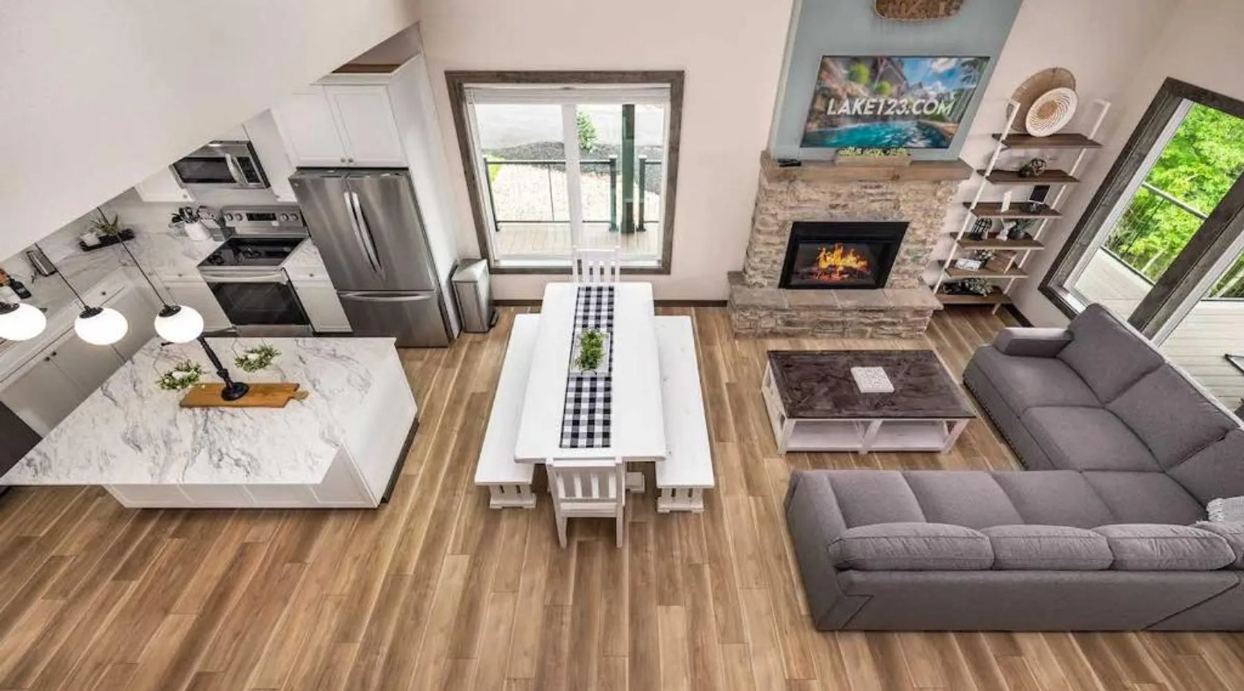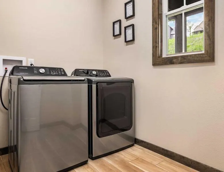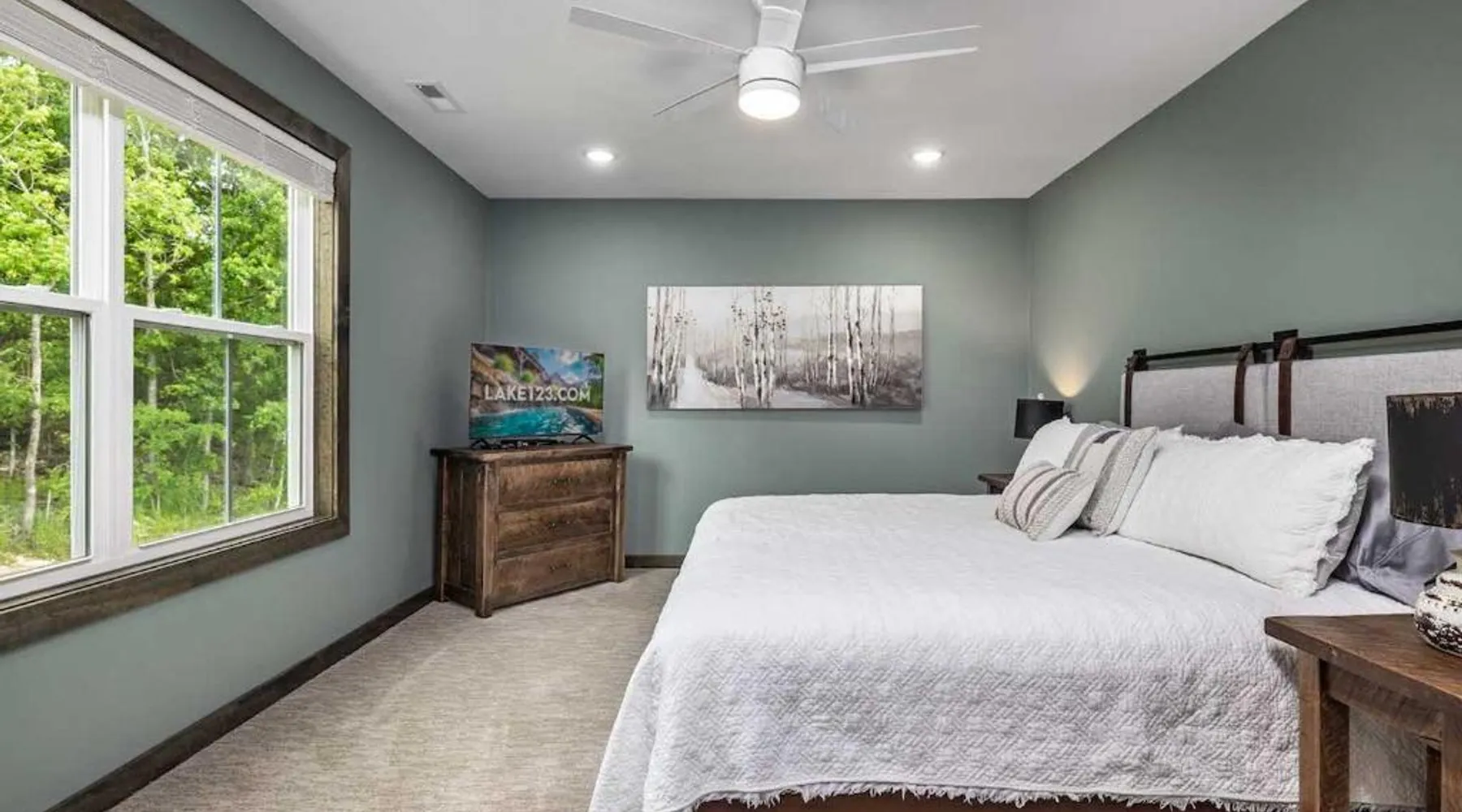 Spacious Accommodations: BRAND NEW! Lakefront Cabin in Kimberling City offers a spacious holiday home with five bedrooms and five bathrooms. The property features a living room, dining area, and a fully equipped kitchen. Outdoor Amenities: Guests can enjoy a year-round outdoor swimming pool, hot tub, waterpark, and fitness room. Additional facilities include a games room, children’s playground, and a terrace with lake views. Leisure Activities: The property provides free mini golf, pickleball, and a variety of indoor and outdoor games. Air-conditioning, a fireplace, and a barbecue area enhance the relaxing atmosphere. Local Attractions: Silver Dollar City is 12 mi away, Mickey Gilley Theater and Titanic Museum are 16 mi distant, and Table Rock State Park lies 19 mi from the property. The fireplace is the standout feature of this holiday home. Guests will find a stovetop, a refrigerator, a dishwasher and kitchenware in the well-fitted kitchen. The holiday home also comes with a barbecue. The spacious air-conditioned holiday home features a TV with cable channels, a washing machine, a tea and coffee maker, a dining area as well as lake views. The unit has 6 beds.