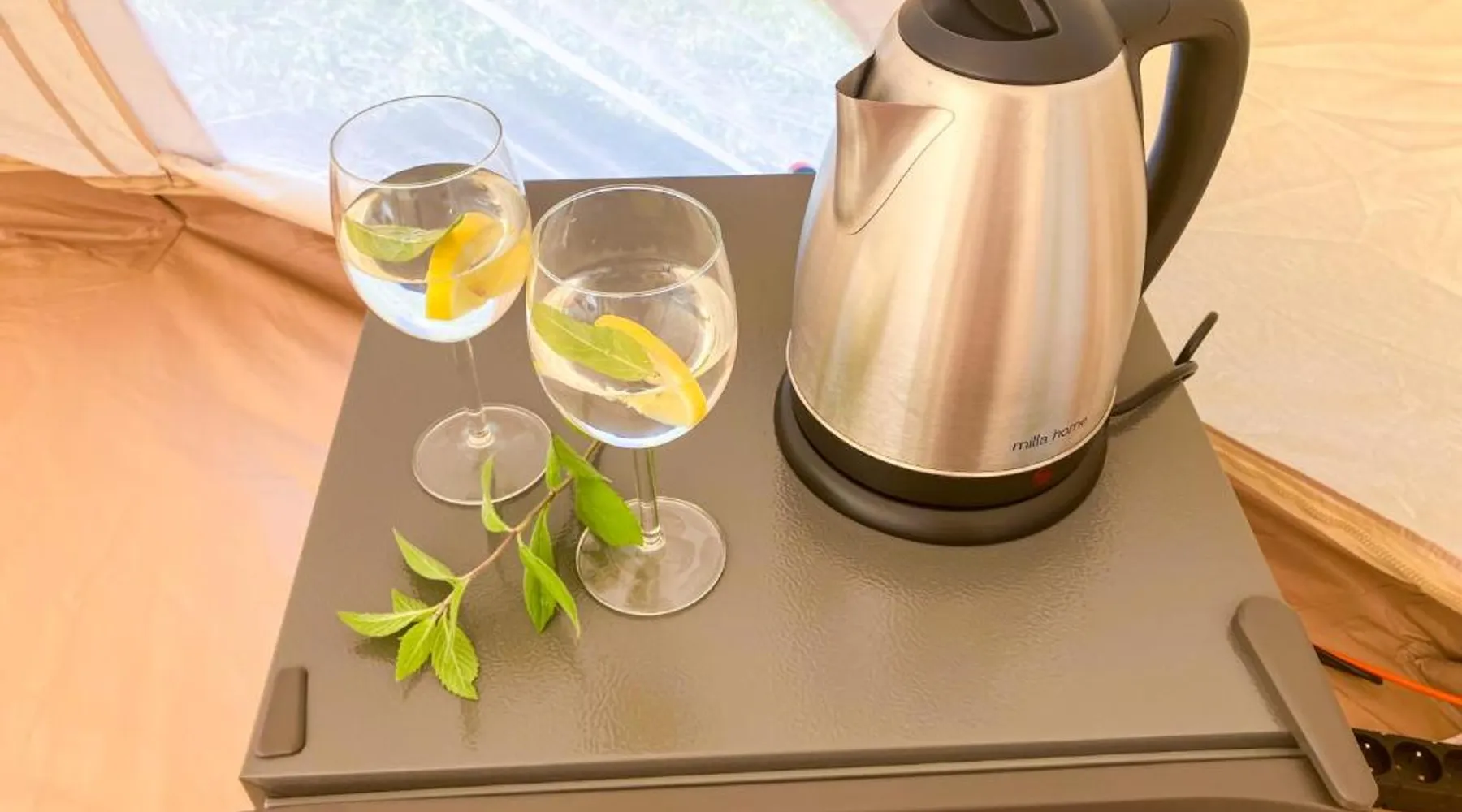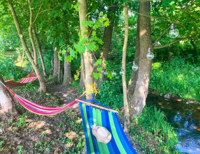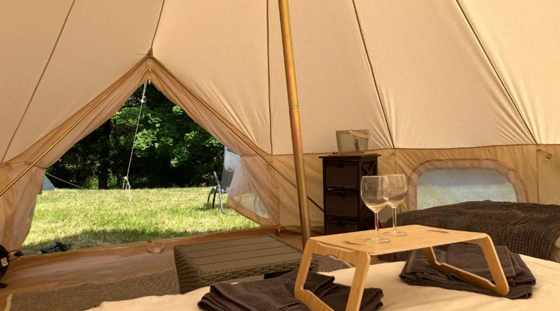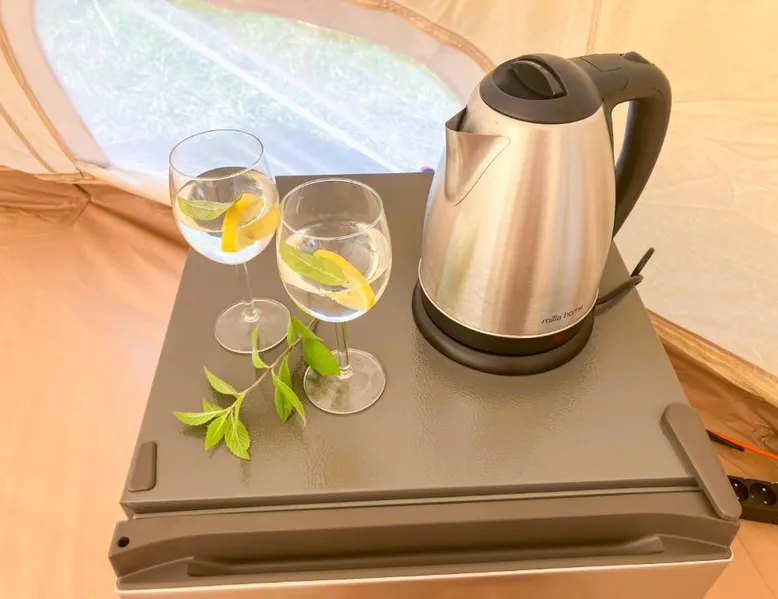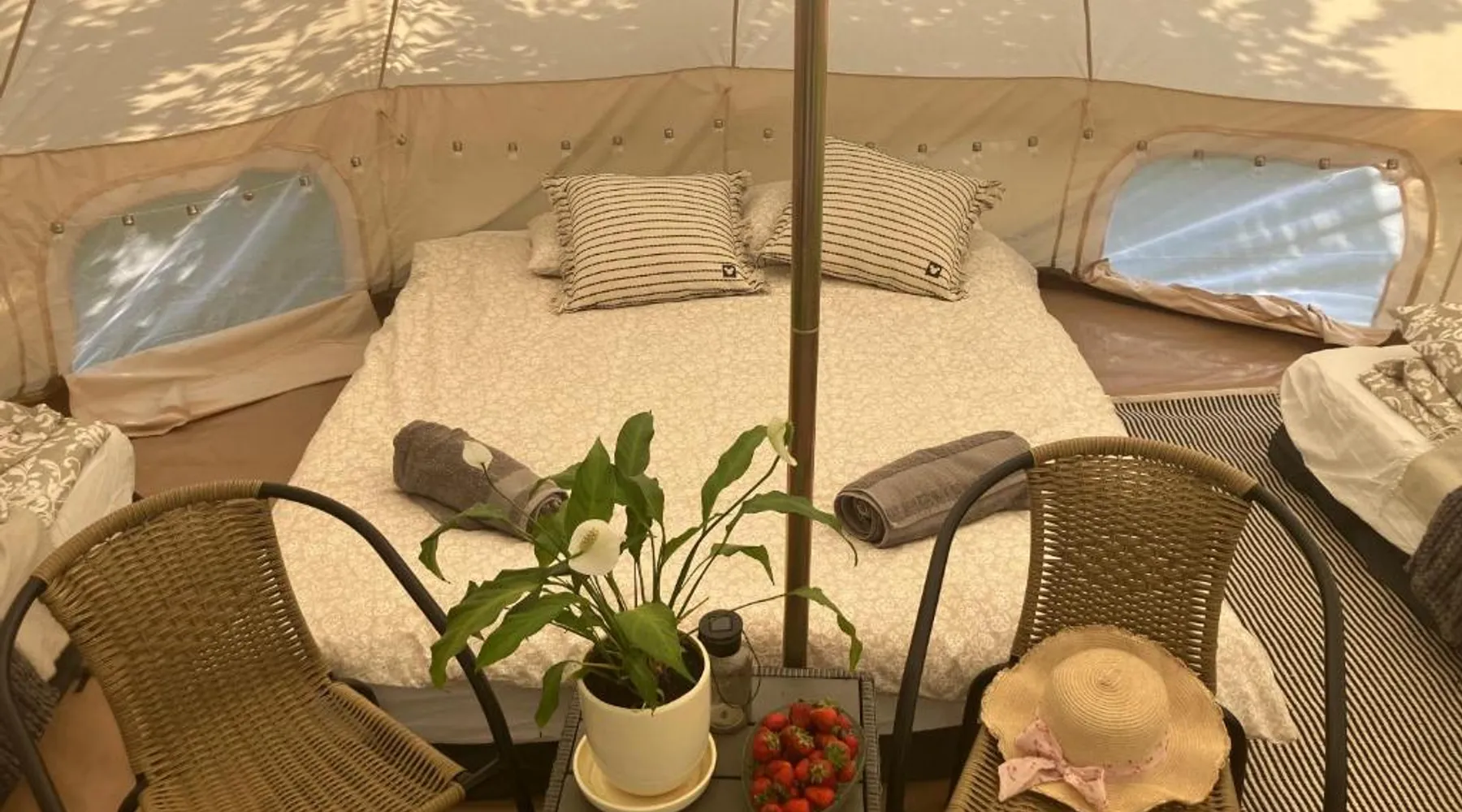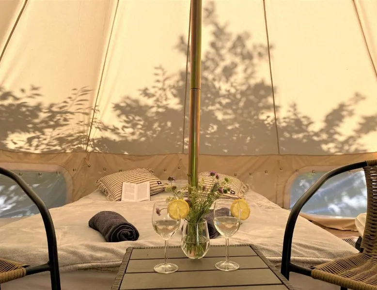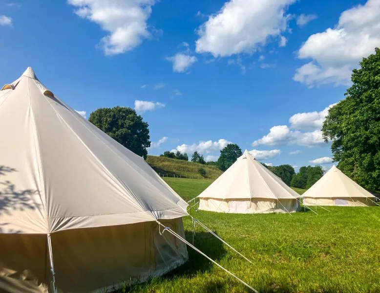 Elegant Accommodations: Mazury Glamping Kruklanki Polana Życzeń in Kruklanki offers luxury tents with garden and tennis court views. Each tent features a private entrance, family rooms, and modern amenities. Comfortable Facilities: Guests enjoy a private check-in and check-out service, outdoor fireplace, outdoor play area, and barbecue facilities. Additional amenities include free on-site parking, bicycle parking, and a children's playground. Delicious Breakfast: A continental breakfast with cheese is served daily, providing a perfect start to the day. Local Attractions: Located 73 mi from Olsztyn-Mazury Airport, the property is near Indian Village (5.6 mi), Boyen Fortress (9.9 mi), Talki Golf Course (18 mi), and Wolf's Lair (27 mi). The tent offers a seating area, a dining area, as well as a shared bathroom featuring a shower. Among the room amenities are a washing machine, a private entrance, a tea and coffee maker as well as an outdoor dining area and garden views. The unit offers 3 beds.