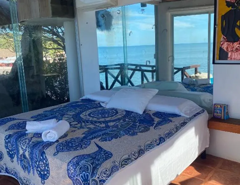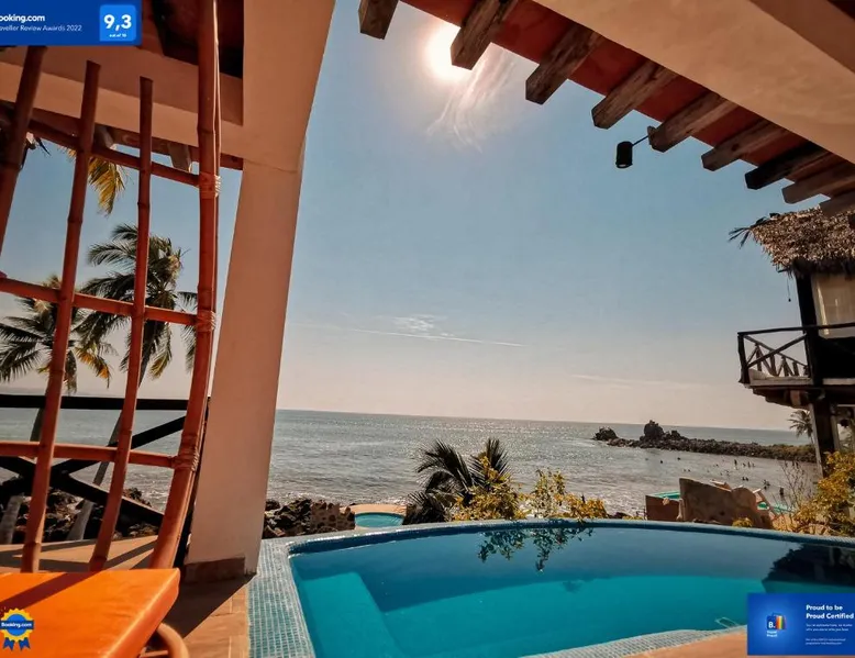 Beachfront Location: Isla Qimera San Blas Only Adults in San Blas offers a private beach area and direct beachfront access. Guests enjoy sea views and a serene setting with Las Islitas Beach just a few steps away. Exceptional Facilities: The lodge features an infinity swimming pool, sauna, sun terrace, and lush garden. Additional amenities include a restaurant serving traditional brunch and lunch, free WiFi, and a hot tub. Comfortable Accommodations: Rooms offer air-conditioning, private bathrooms, balconies, and sea views. Guests can relax on the terrace or rooftop pool and enjoy amenities such as a mini-bar and free toiletries. Activities and Nearby Attractions: Activities include fishing, walking tours, and canoeing. Tepic Airport is 39 mi away, and nearby attractions include Las Islitas Beach and Playa El Remate. The pool with a view is the standout feature of this suite. This suite includes 1 living room, 1 separate bedroom and 1 bathroom with a shower and free toiletries. Boasting a terrace with sea views, this suite also offers air conditioning and a TV with satellite channels. The unit has 1 bed.