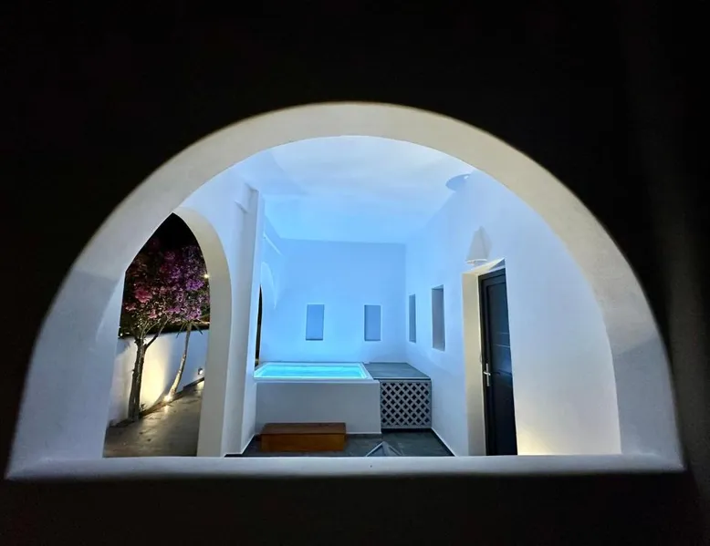 Prime Location: Santorini Miracles Suites, Adults Only in Perissa offers a private beach area, spa facilities, and a lush garden. Perissa Beach is a 3-minute walk away, while Santorini International Airport lies 8.1 mi from the property. Comfortable Accommodations: Recently renovated aparthotel features air-conditioning, private bathrooms, and modern amenities. Guests enjoy free WiFi, private check-in and check-out services, and free parking. Leisure Facilities: The property includes a fitness room, hot tub, and outdoor seating area. Wellness packages and scuba diving opportunities enhance the stay. Dining Experience: A continental buffet breakfast with champagne, local specialties, and fresh pastries is served daily. Additional amenities include a terrace, balcony, and dining area. The hot tub is a top feature of this suite. Boasting a private entrance, this air-conditioned suite comes with 1 living room, 1 separate bedroom and 1 bathroom with a shower and a hairdryer. Featuring a terrace with garden views, this suite also features a tea and coffee maker and a flat-screen TV. The unit has 1 bed.