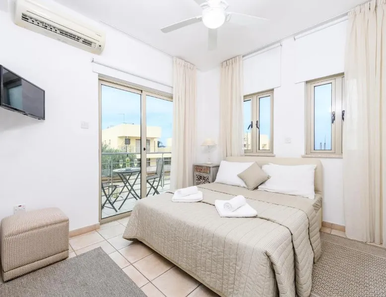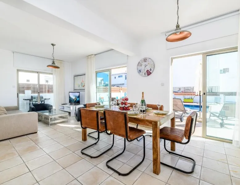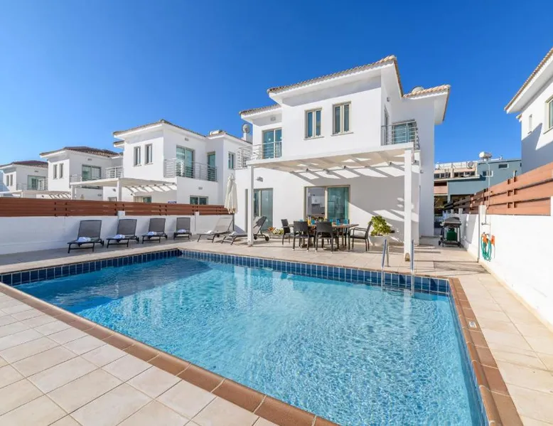 Elegant Accommodations: Sunrise Bay Villa #3 in Protaras offers a spacious villa with four bedrooms and three bathrooms. Guests enjoy a private pool, terrace, and garden, complemented by free WiFi throughout the property. Modern Amenities: The villa features air-conditioning, a fully equipped kitchen, washing machine, and a private entrance. Additional amenities include a balcony, barbecue, and a range of kitchen appliances, ensuring a comfortable and convenient stay. Prime Location: Located 37 mi from Larnaca International Airport, the property is a short 4-minute walk from Vryssi Beach. Nearby attractions include National Forest Park Cavo Greco (3.7 mi) and Cyprus Casinos - Ayia Napa (6.8 mi). Scuba diving opportunities enhance the surrounding area. Guests will have a special experience as the villa offers a private pool. Featuring a private entrance, this air-conditioned villa consists of a kitchen, 4 bedrooms and 3 bathrooms with a bath and a shower. Guests will find a refrigerator, a dishwasher, kitchenware and an oven in the kitchen. The villa also offers a barbecue. Boasting a terrace, this villa also provides a washing machine, a tea and coffee maker and a TV with satellite channels. The unit offers 5 beds.