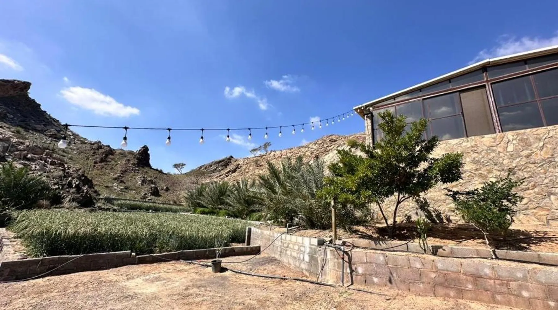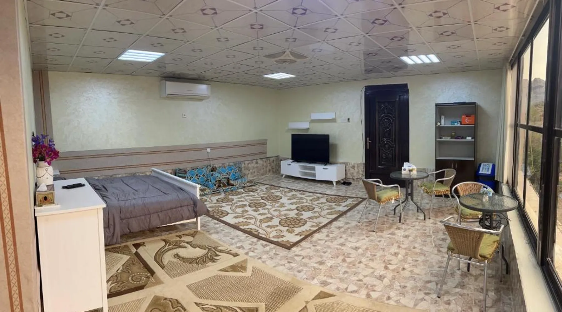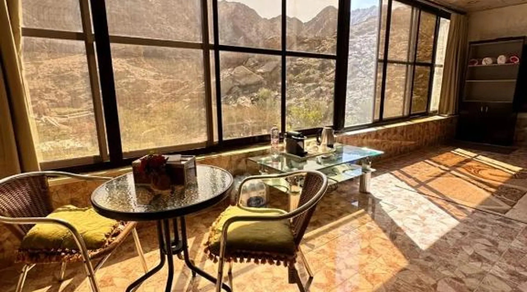 Elegant Accommodations: Hiking break in Ras Al Khaimah offers a luxury tent experience with free WiFi, air-conditioning, and mountain views. The property features a terrace, balcony, and outdoor seating area, ideal for relaxation. Comfortable Amenities: Each tent includes a private bathroom with a walk-in shower, tea and coffee maker, and free toiletries. Additional amenities include a fireplace, barbecue, and outdoor furniture, ensuring a comfortable stay. Convenient Location: Located 21 mi from Ras Al Khaimah International Airport, the property is highly rated for its scenic location and proximity to nature. Guests appreciate the terrace and scenic views, making it ideal for a relaxing retreat. The fireplace is the standout feature of this tent. This air-conditioned tent is consisted of of a flat-screen TV with satellite channels, a private bathroom as well as a balcony with mountain views. The unit has 1 bed.