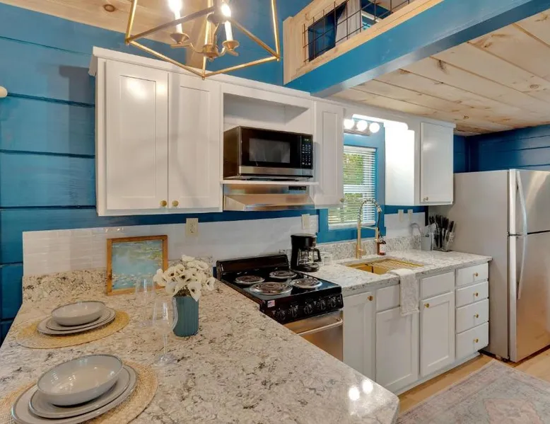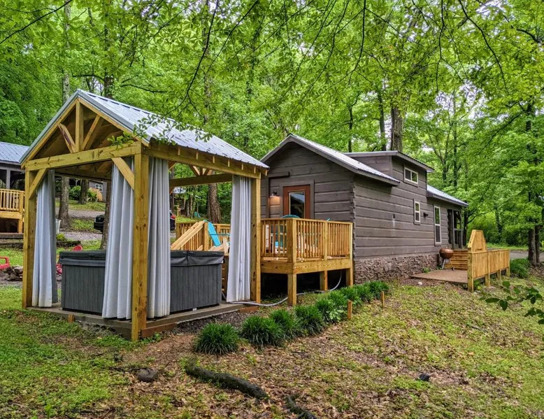 Comfortable Living: Pops Cabin Lookout Mountain Luxury Tiny Home in Chattanooga offers a two-bedroom, one-bathroom layout with a spacious living room. The property includes air-conditioning, a washing machine, and a fully equipped kitchen with a barbecue. Modern Amenities: Guests can enjoy a hot tub, tea and coffee maker, hairdryer, refrigerator, microwave, dishwasher, kitchenware, wardrobe, oven, and toaster. The holiday home also features a TV for entertainment. Convenient Location: Located 11 mi from Chattanooga Metropolitan Airport, the property is 1.9 mi from Lookout Mountain and Ruby Falls, 5.6 mi from Tennessee Aquarium, and 6.2 mi from Chattanooga Zoo. Nearby attractions include Raccoon Mountains Caverns and Hunter Museum of American Art. Highly Rated: Guests appreciate the convenient location and excellent facilities, making it a highly rated choice for a memorable holiday. Guests will find a refrigerator, a dishwasher, kitchenware and an oven in the fully equipped kitchen. The apartment also comes with a barbecue. The air-conditioned apartment features a TV, a washing machine, a tea and coffee maker and a wardrobe. The unit has 3 beds.