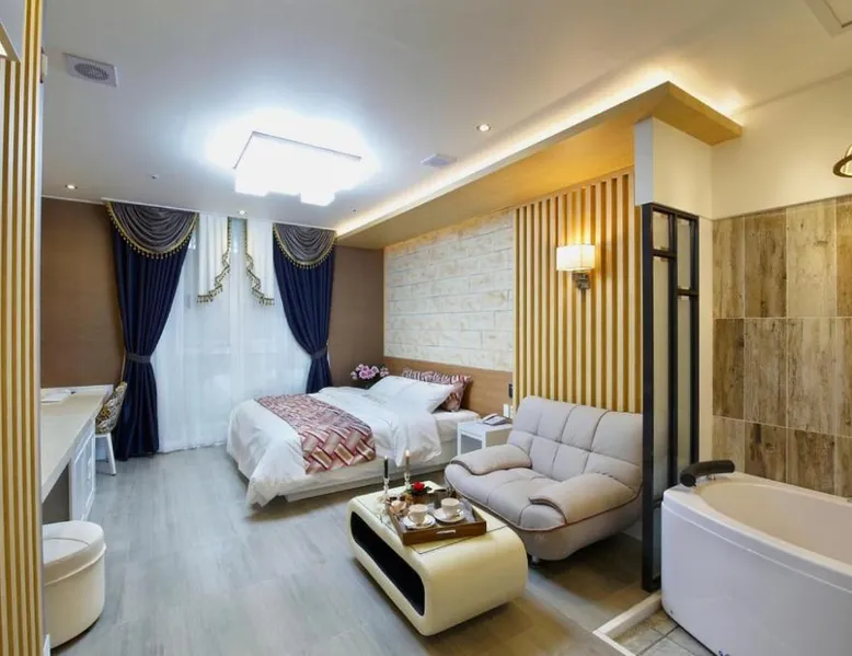 Comfortable Accommodations: Gentleman Hotel in Suncheon offers family rooms equipped with air-conditioning, private bathrooms, and free WiFi. Each room includes bathrobes, a spa bath, and streaming services. Convenient Facilities: Guests can enjoy free on-site private parking, a spa bath, and a refrigerator. Additional amenities include a TV, electric kettle, and free toiletries. Prime Location: Located 12 mi from Yeosu Airport, the hotel is a 7-minute walk from Suncheon Station. Nearby attractions include Suncheonman Bay National Garden (2.7 mi) and Booyoung Country Club (3.7 mi). This double room offers a spa bath. Providing free toiletries and bathrobes, this double room includes a private bathroom with a shower, a bidet and a hairdryer. The spacious air-conditioned double room provides a flat-screen TV with streaming services, an electric kettle, tumble dryer and heating. The unit offers 1 bed.