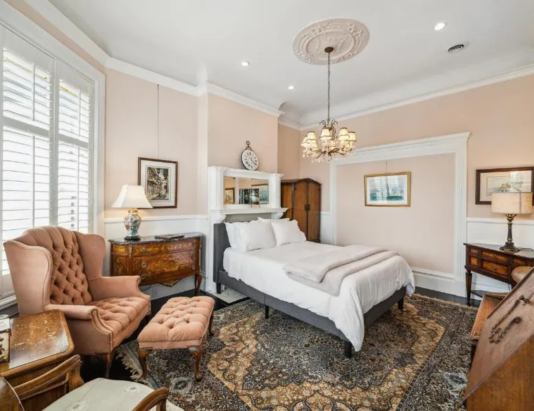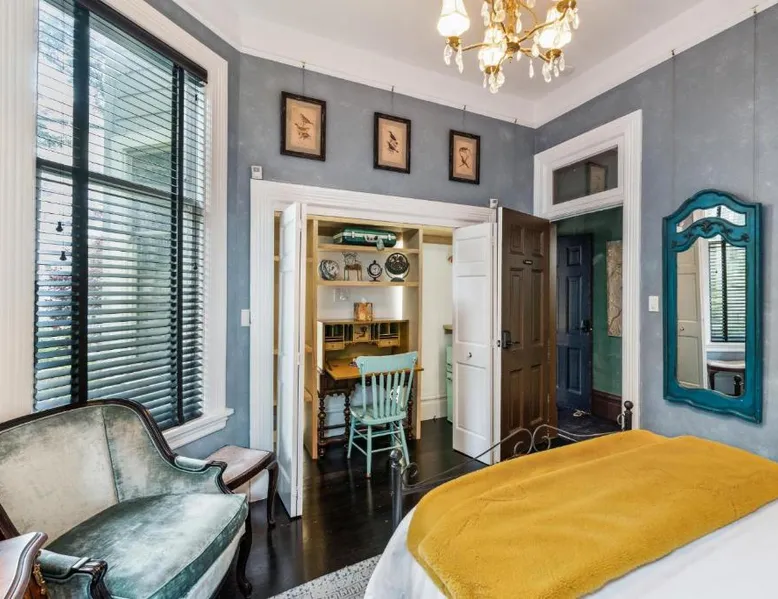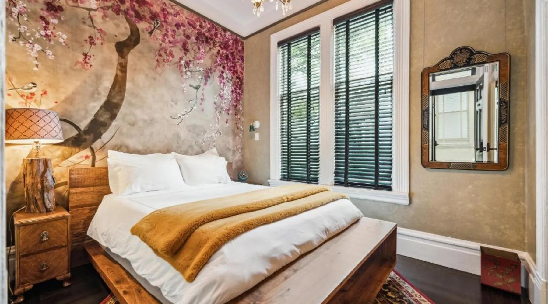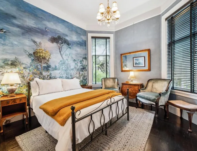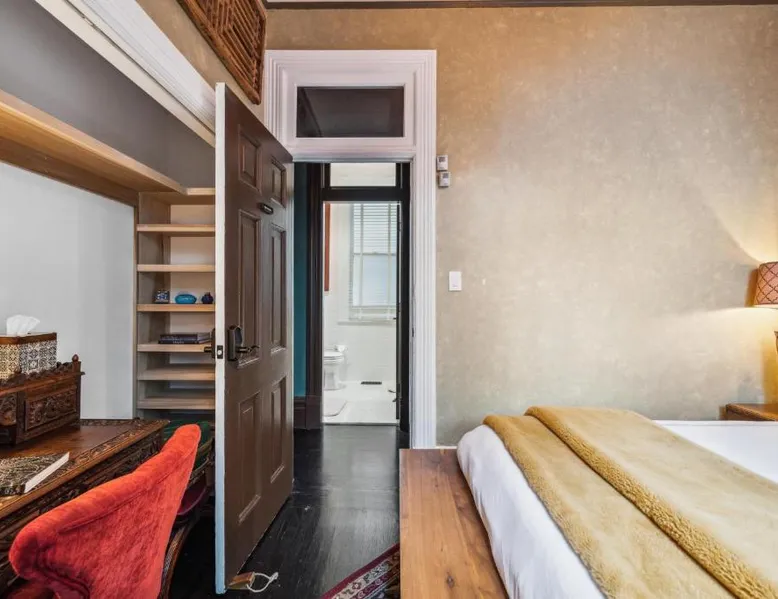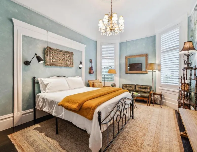 Historic Charm: The Historic & Charming Victorian Home Sleeps 11 in San Francisco offers a unique holiday home experience. Guests enjoy a historic setting with a private entrance and a spacious patio. Modern Amenities: The property features free WiFi, air-conditioning, and a fully equipped kitchen. Additional amenities include a spa bath, bathrobes, and a work desk. Prime Location: Located 13 mi from San Francisco International Airport, the home is a 15-minute walk from the University of San Francisco. Nearby attractions include San Francisco City Hall (1.7 mi) and Union Square (3.1 mi). Guest Favorites: Guests appreciate the convenient location and the property's high ratings. This double room features a spa bath. Guests can make meals in the kitchen that has a stovetop, a refrigerator, a dishwasher and kitchenware. The spacious double room features a tea and coffee maker, a seating area, as well as a shared bathroom boasting a shower and a hairdryer. The unit has 1 bed.